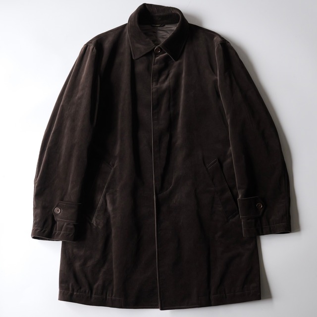 ブラウンのベロアコート 裏地はキルティング クラシカルで真っ当なセットインの仕立てですが 生地の柔らかさや芯の無い作りから、キザになりすぎず少しまろやかな印象を与えています 新品の状態では、ヌートリア製の恐らく襟元にファーが付属していた個体ですが、こちらは欠品した個体です ---------------------- 【サイズ】 表記M, 体感M-L 肩幅50 袖丈62 身幅54 着丈86.5 (cm) model:172cm, 61kg 【素材】 表地:コットン95%, ポリウレタン5% 中わた:ポリエステル 裏地:ポリエステル ------------------- 東京都目黒区祐天寺1-15-5 〈祐天寺駅徒歩9分, 中目黒駅徒歩12分〉 14:00 - 20:00