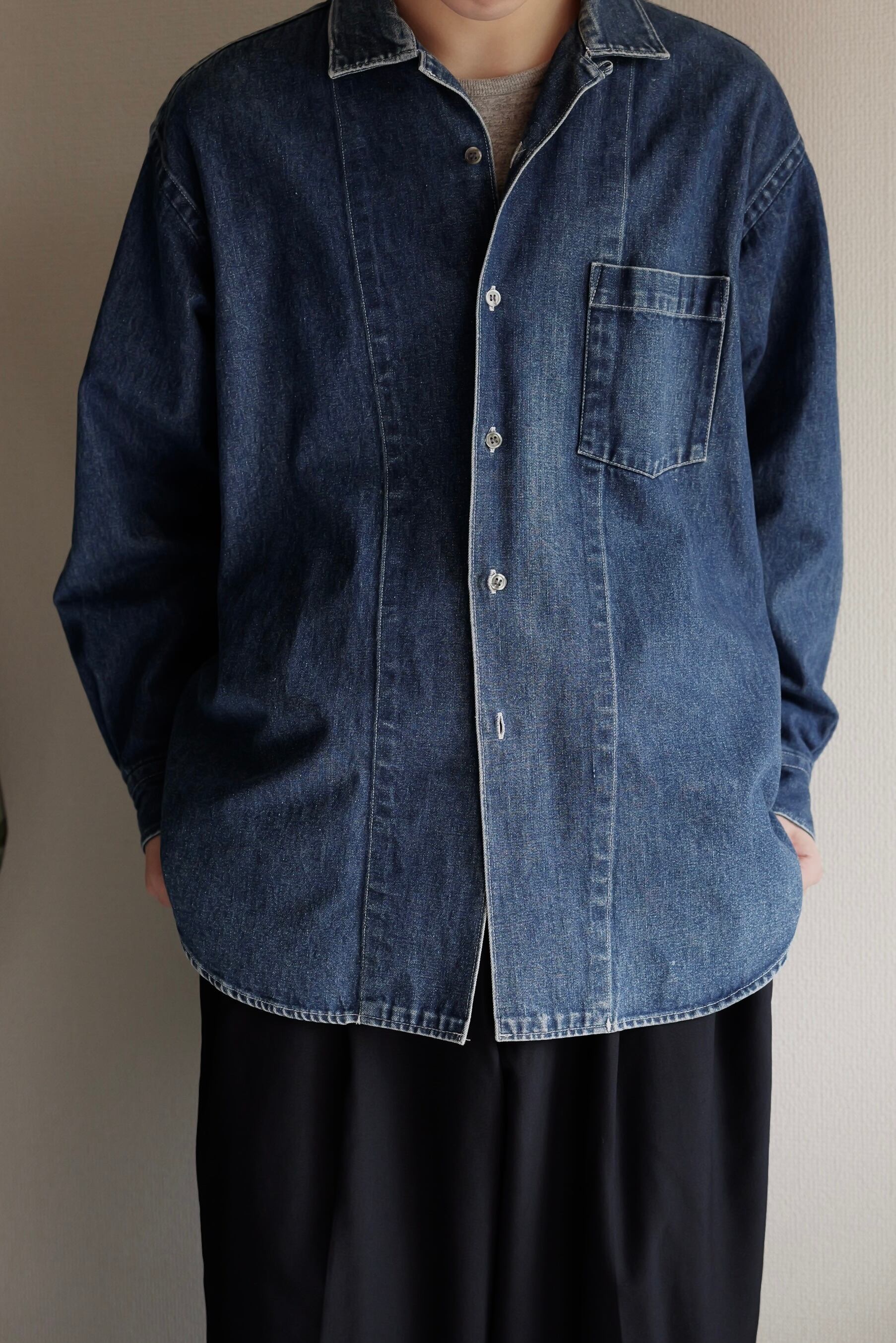 オープンカラーのデニムシャツ