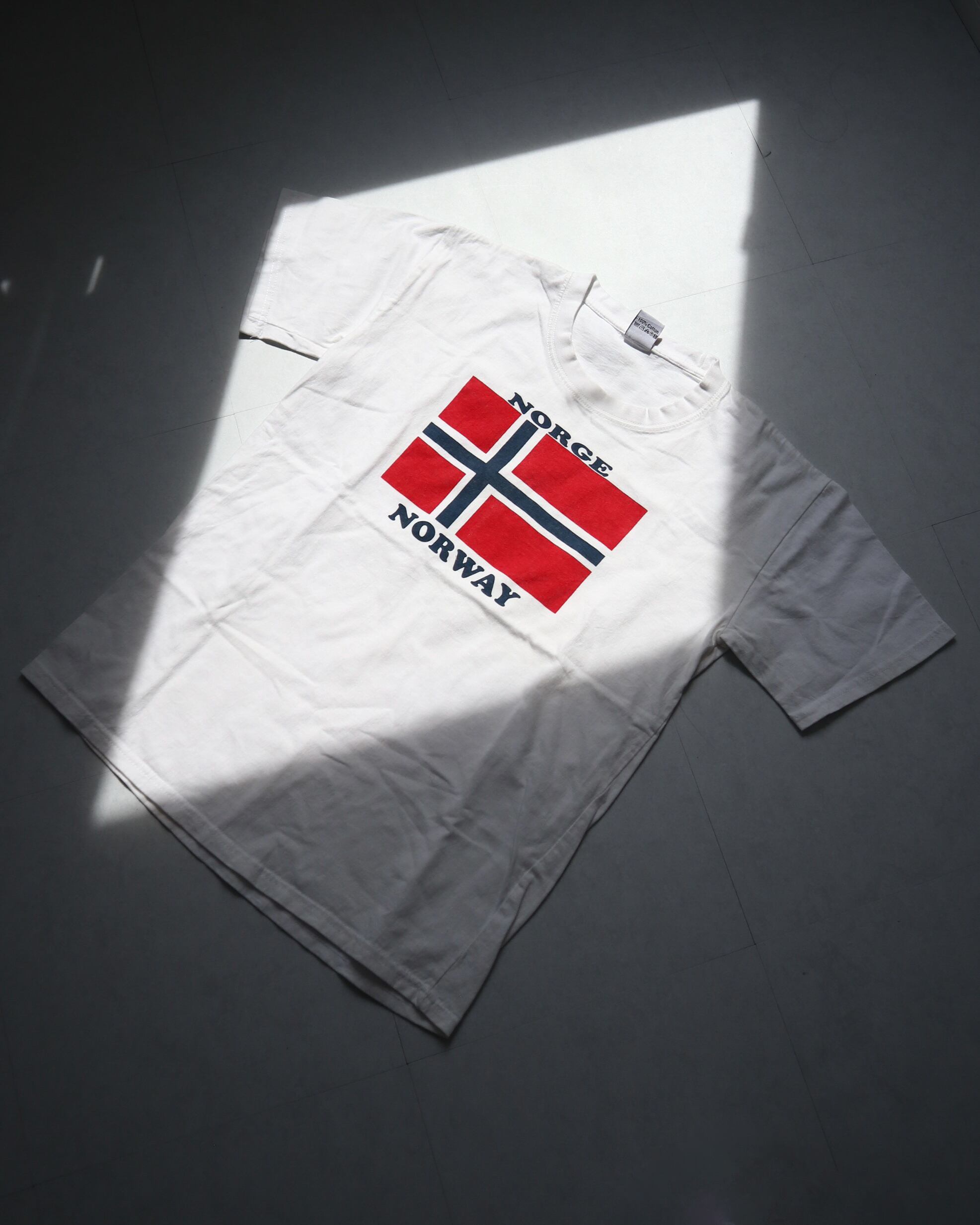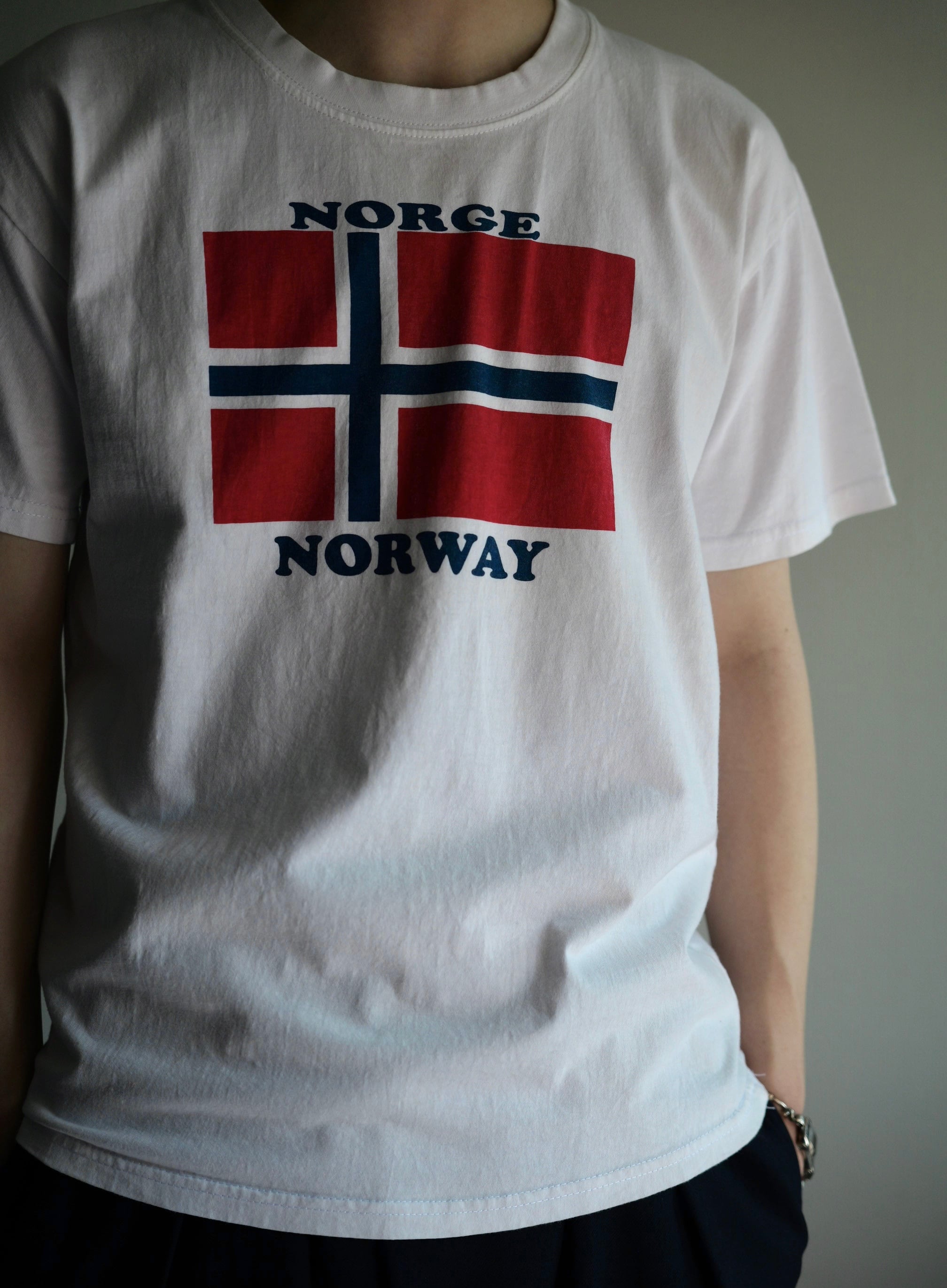 程よく洗いのかかったプリントで、古着らしい風合いの、霞んだ赤と霞んだネイビー