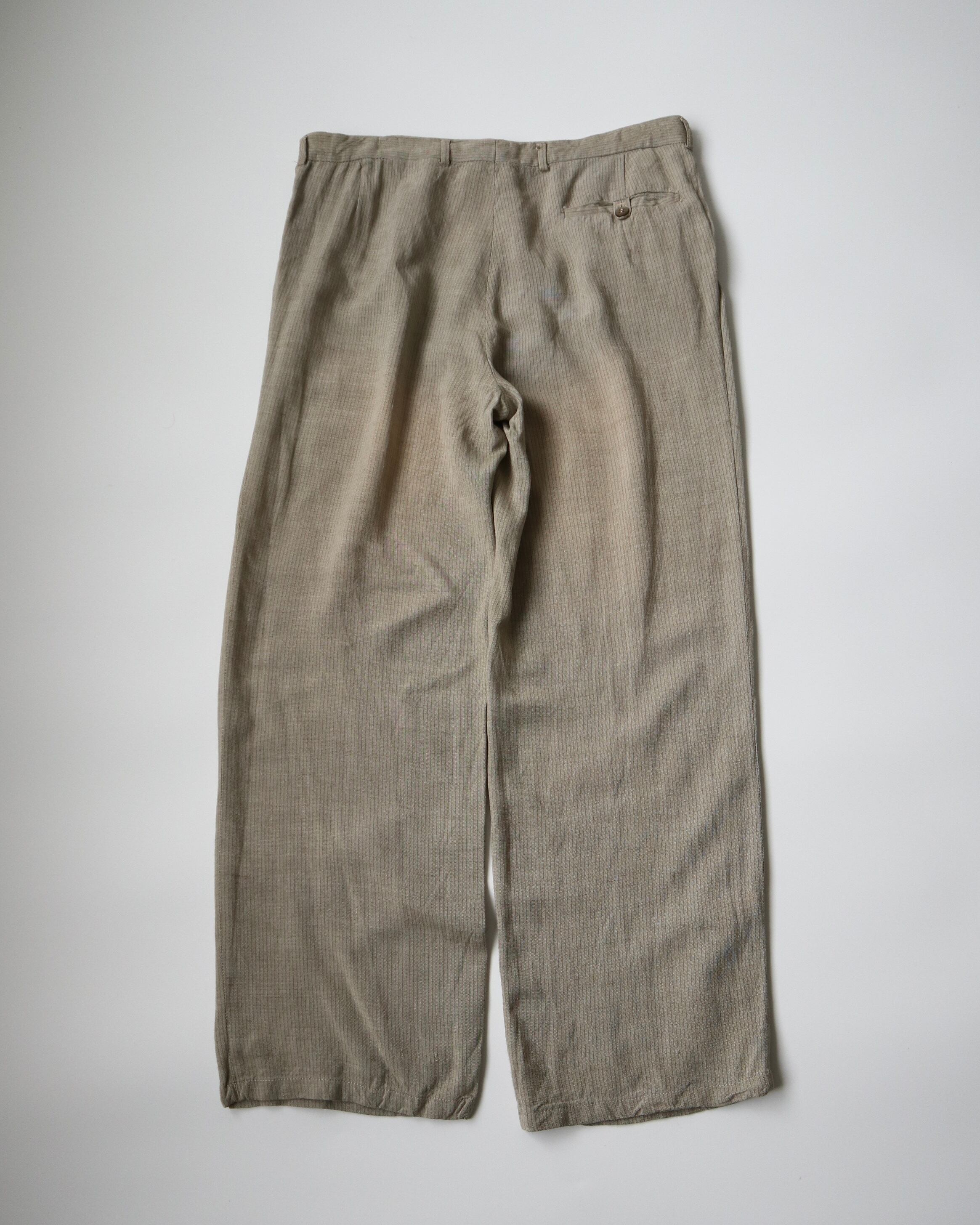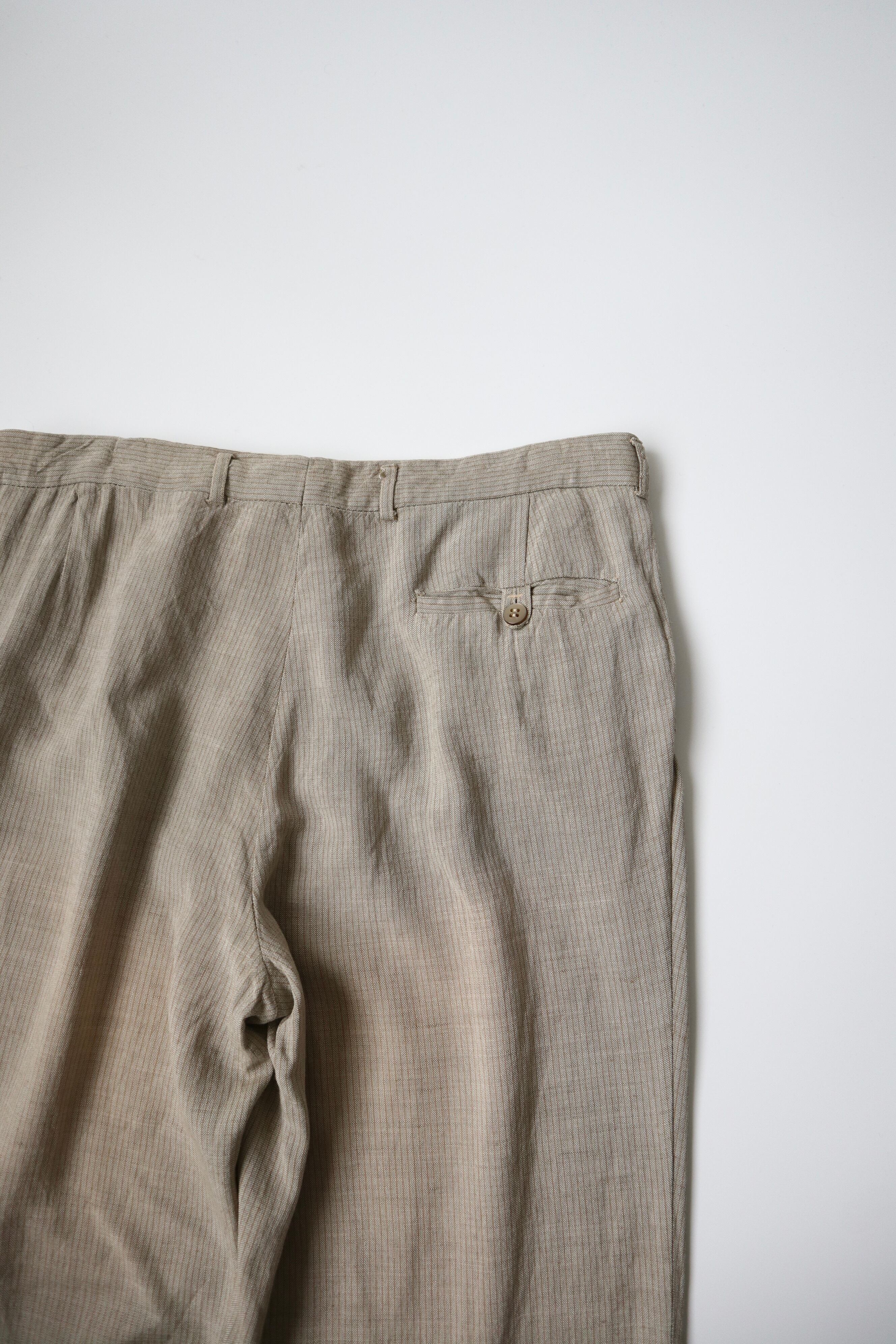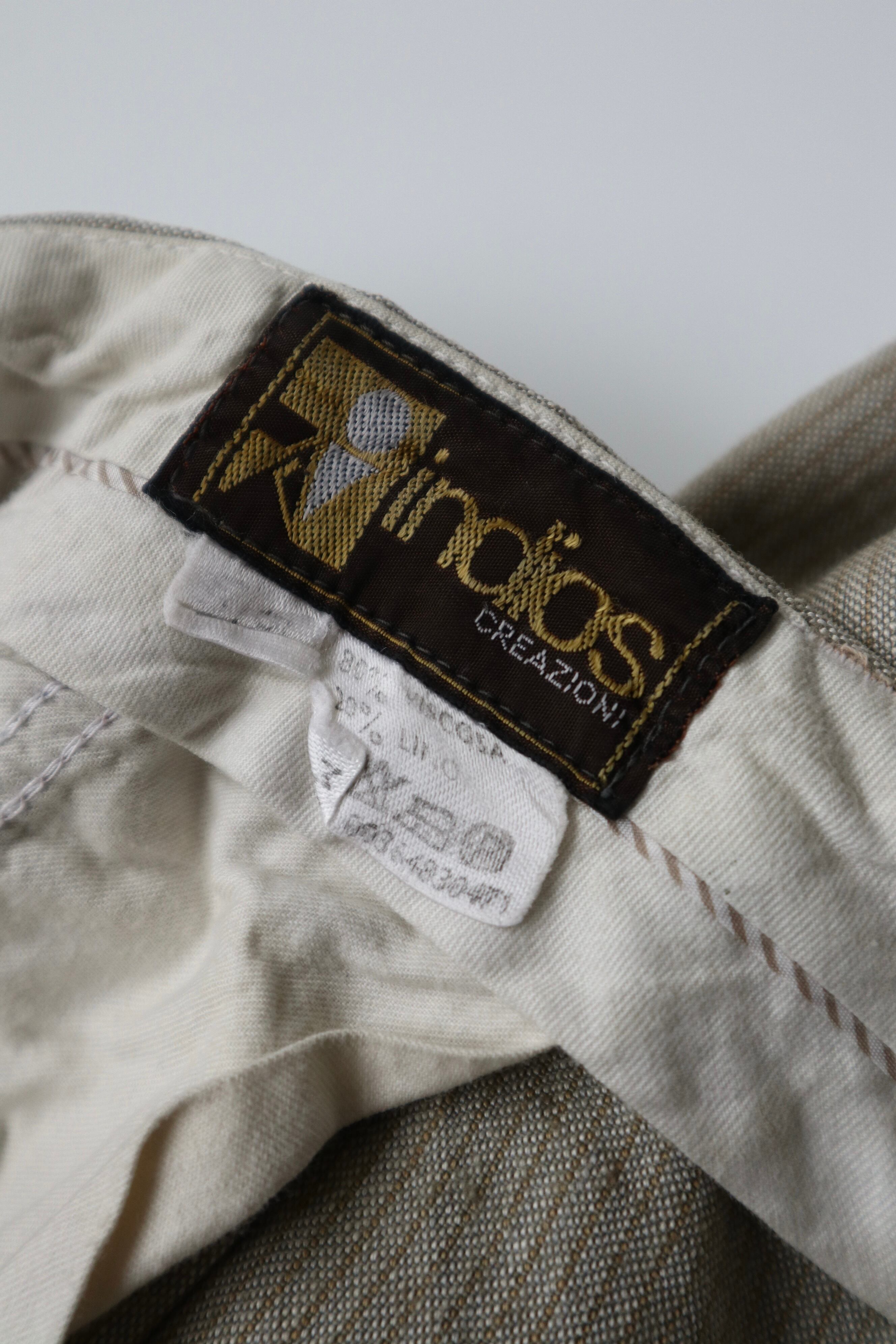 薄っすらとしたオリーブ色ベースのピンストライプ