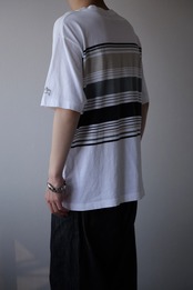 浅いベージュ、ライトグレー、ブラックのマルチボーダー