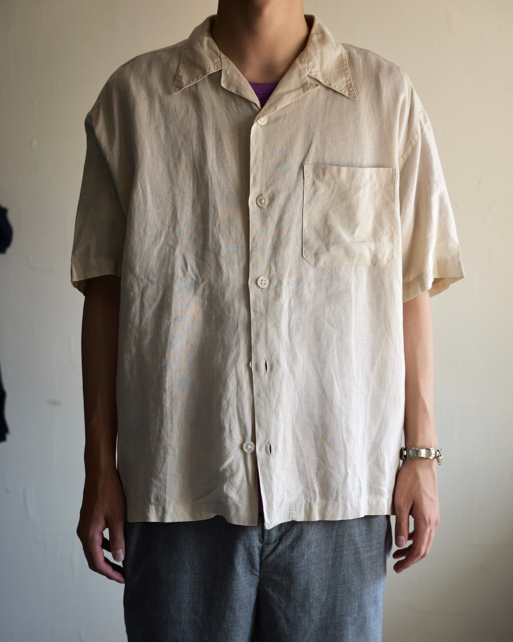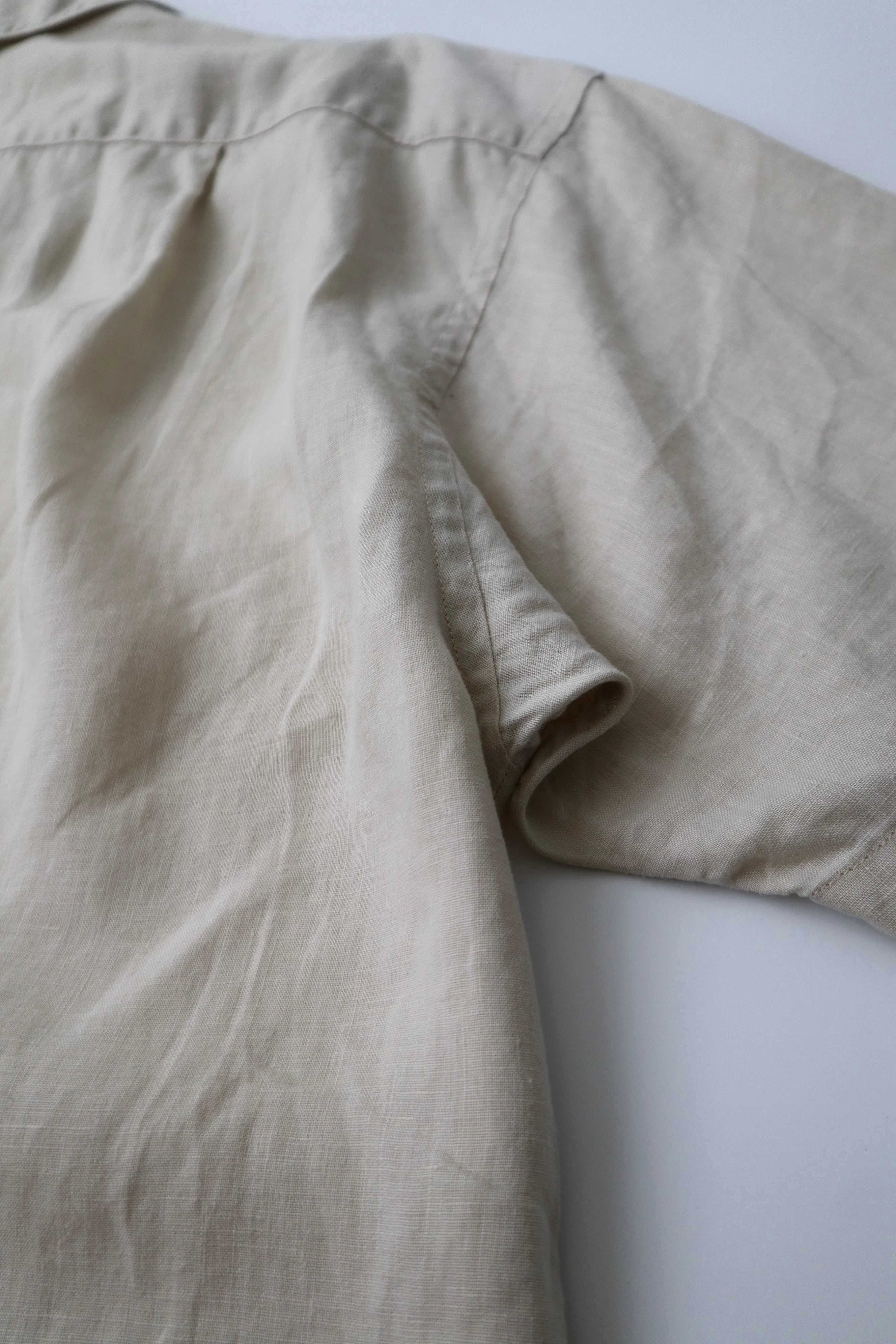 質の高い、ピュアリネンのオープンカラーシャツ