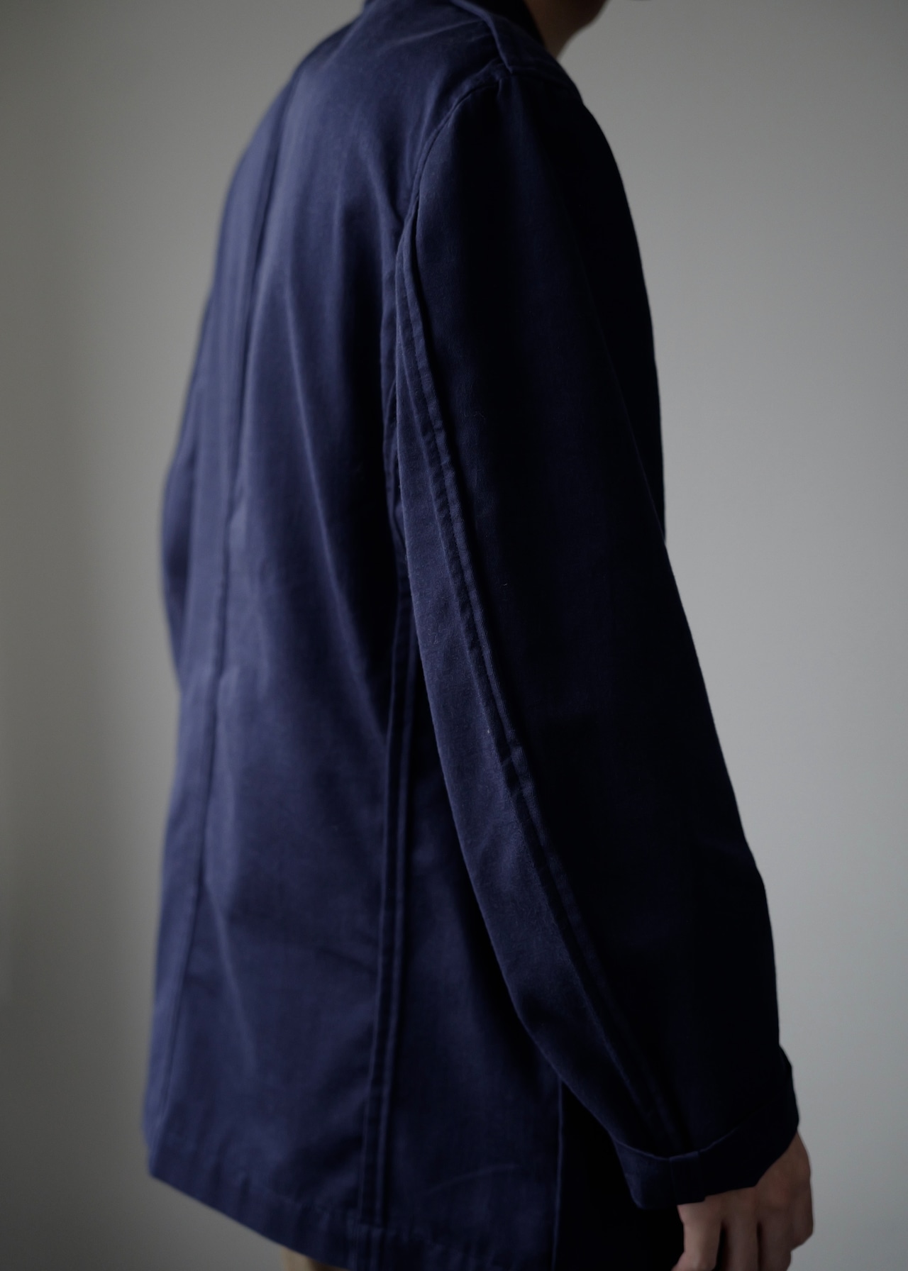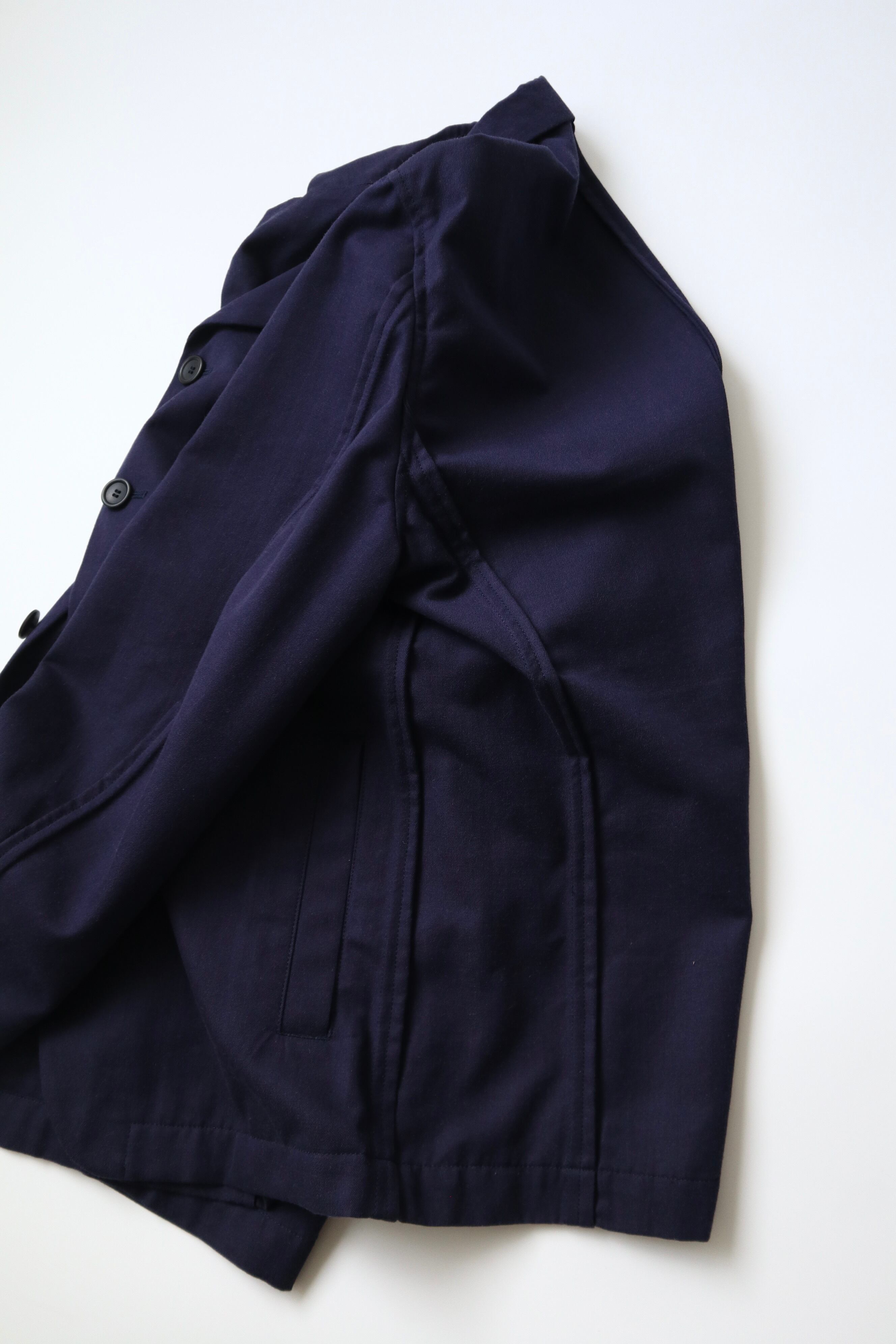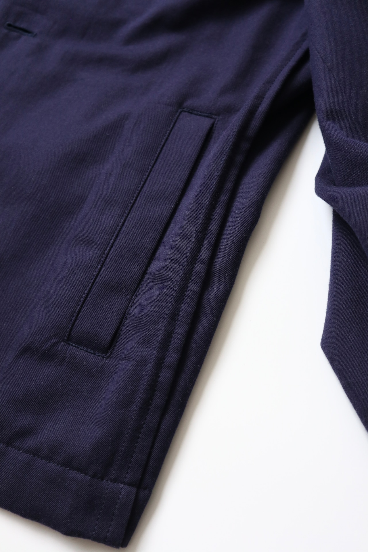 コットン/ウールのギャバジン織で、ヴィンテージのワークウェアで出てきそうな生地から、古臭さをなくして洗練させた様な生地感です