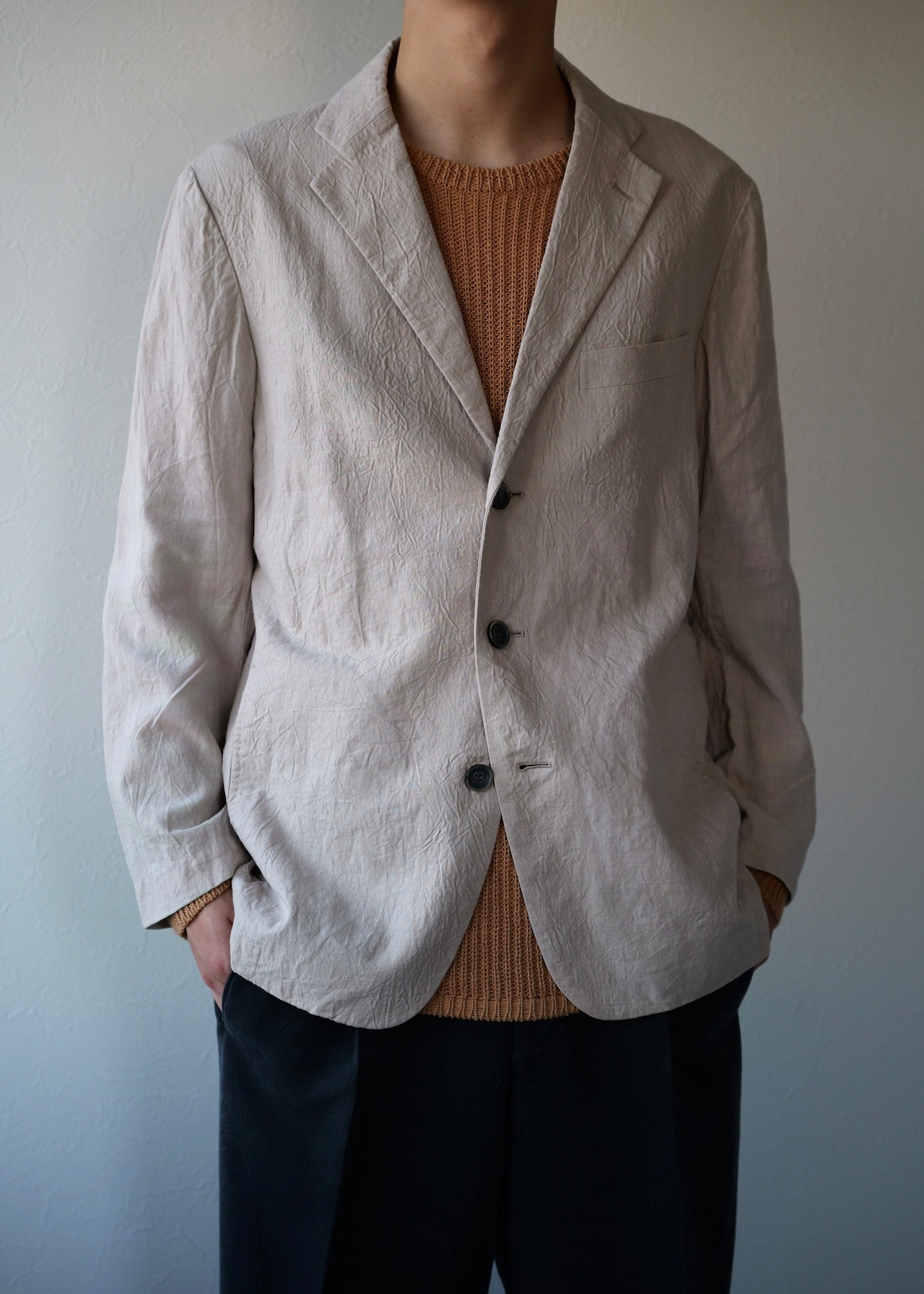 よく見ると表面が白みがかる見え方をしますが、全体的に均等な風合いですので、アタリの様にも見え、逆に良い雰囲気できれいなムードで着用いただけると思います