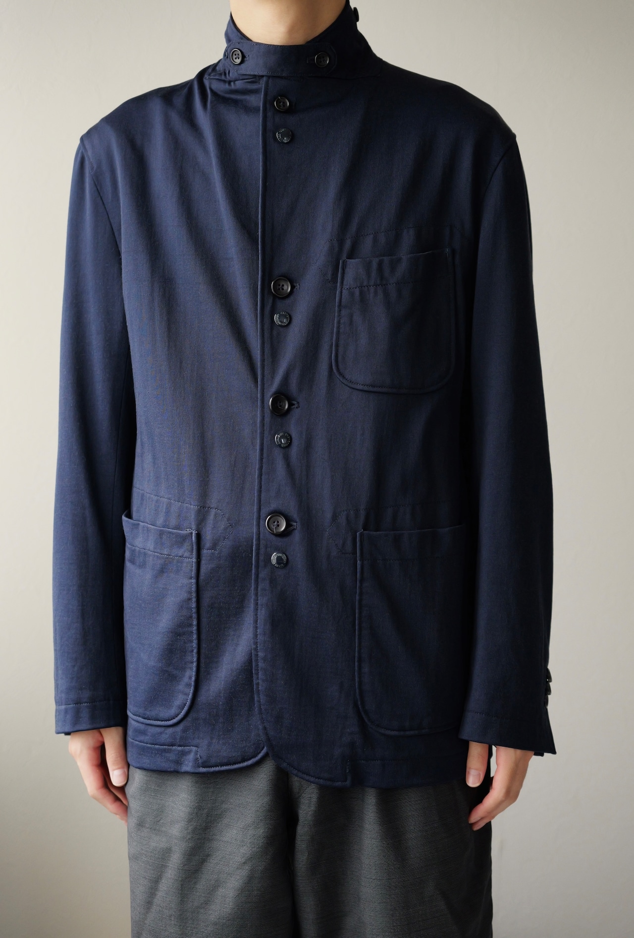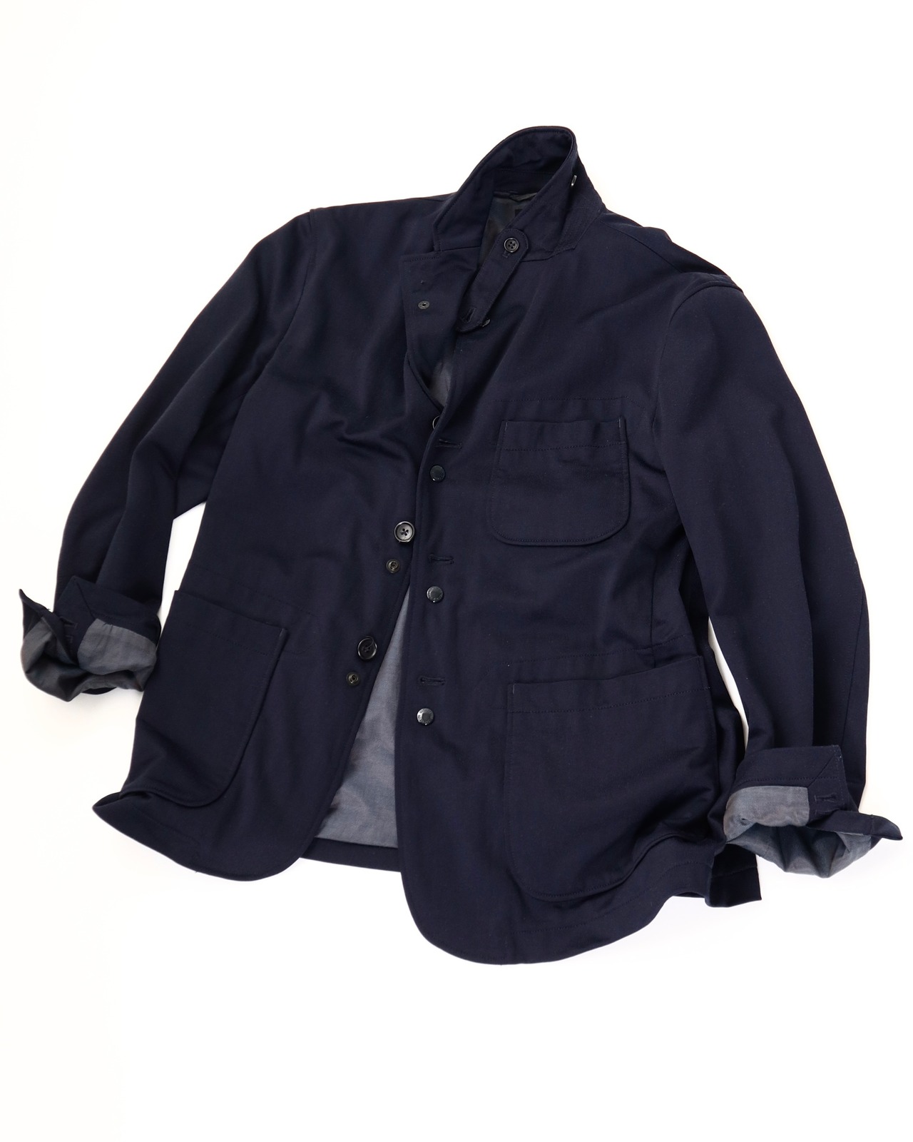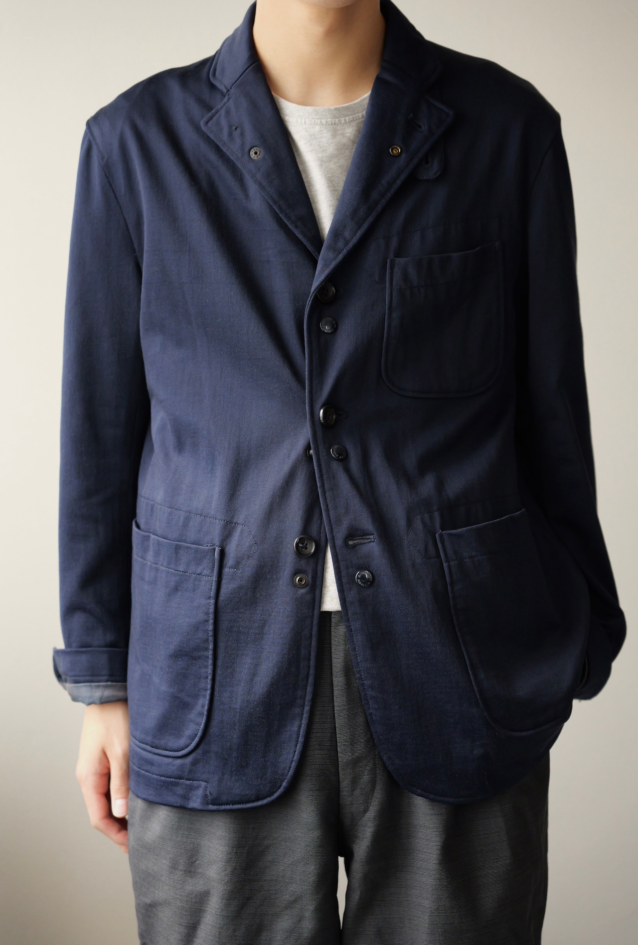 ミリタリーモチーフが各所に見られますが、着ると自然で収まりの良いテーラードジャケットです