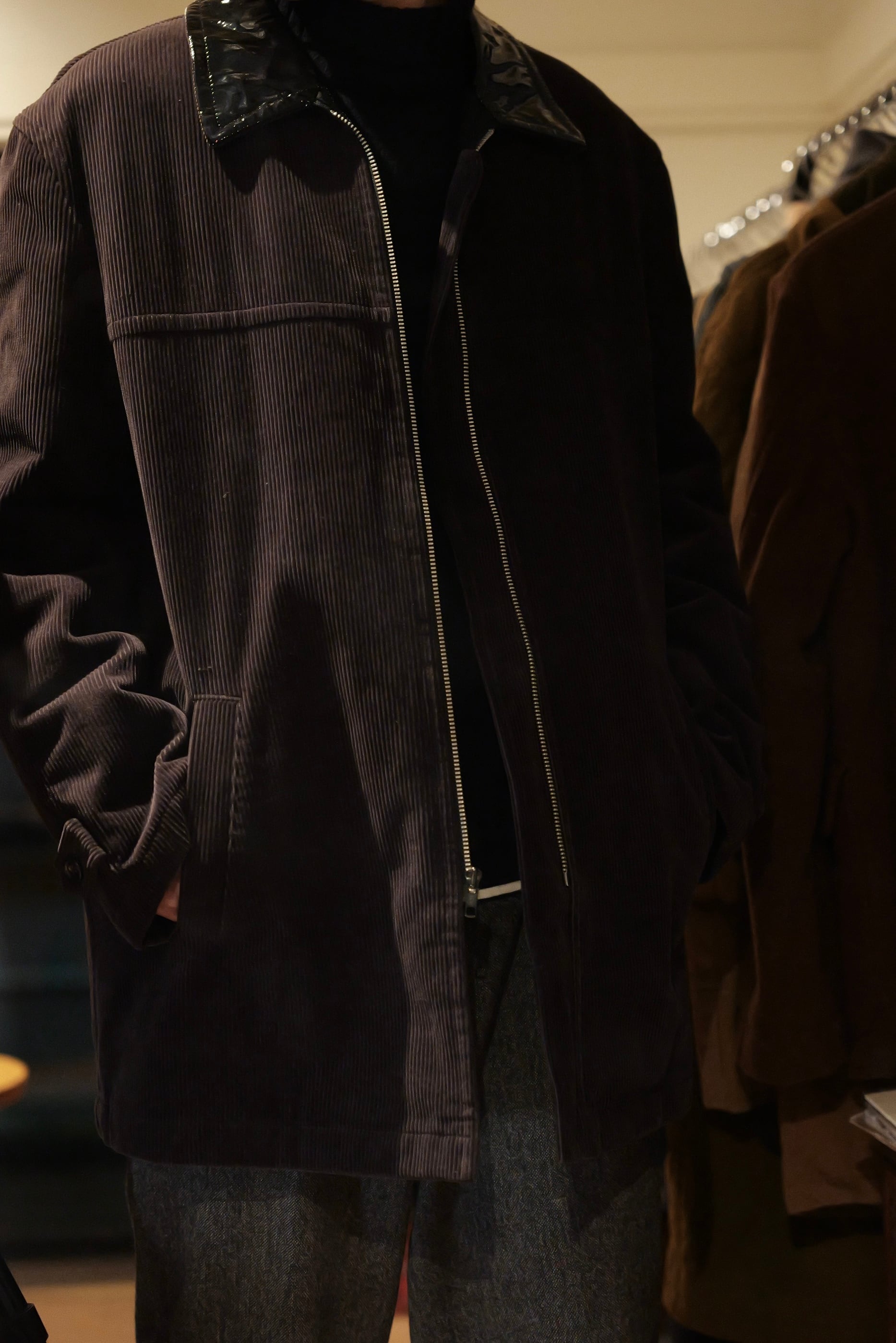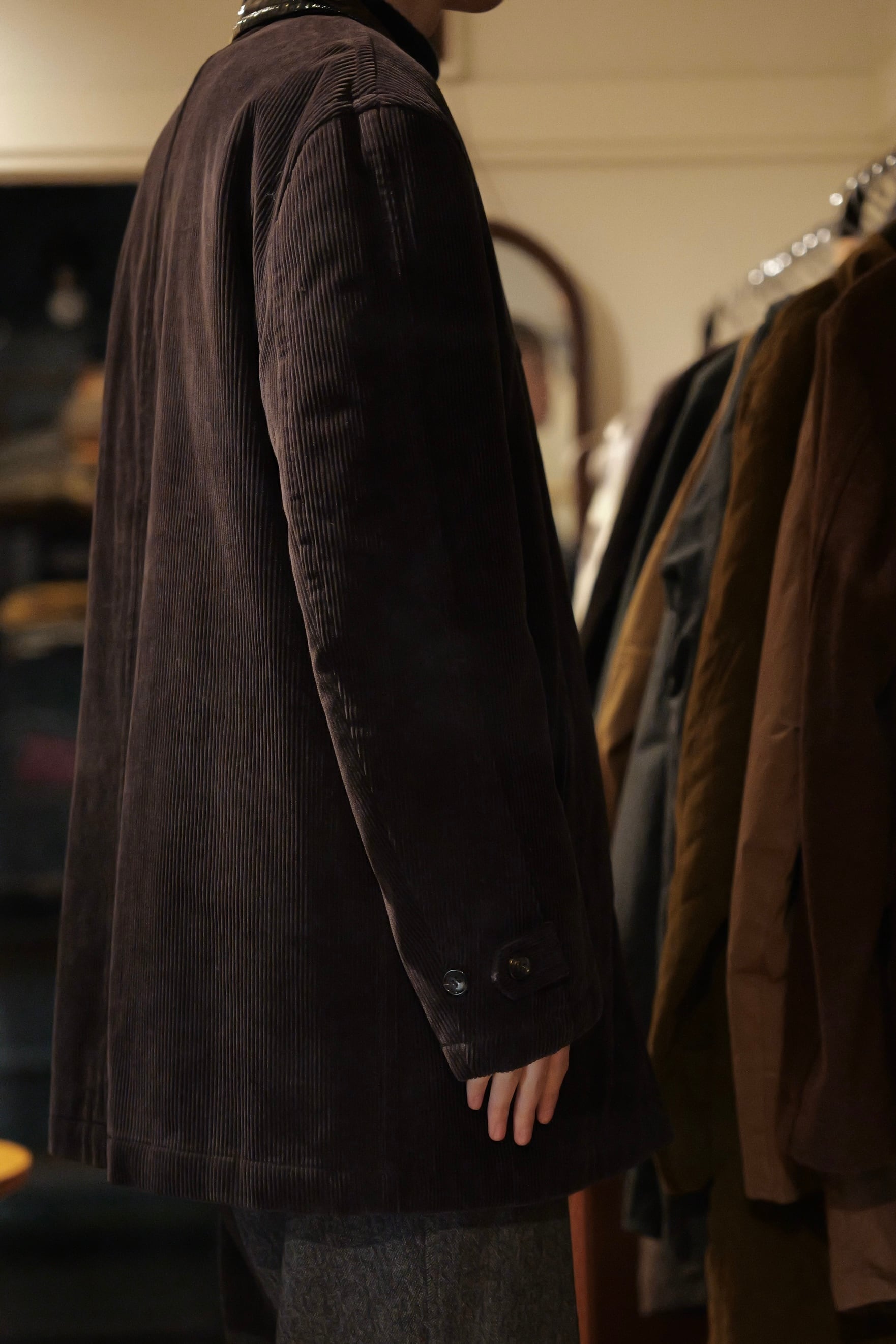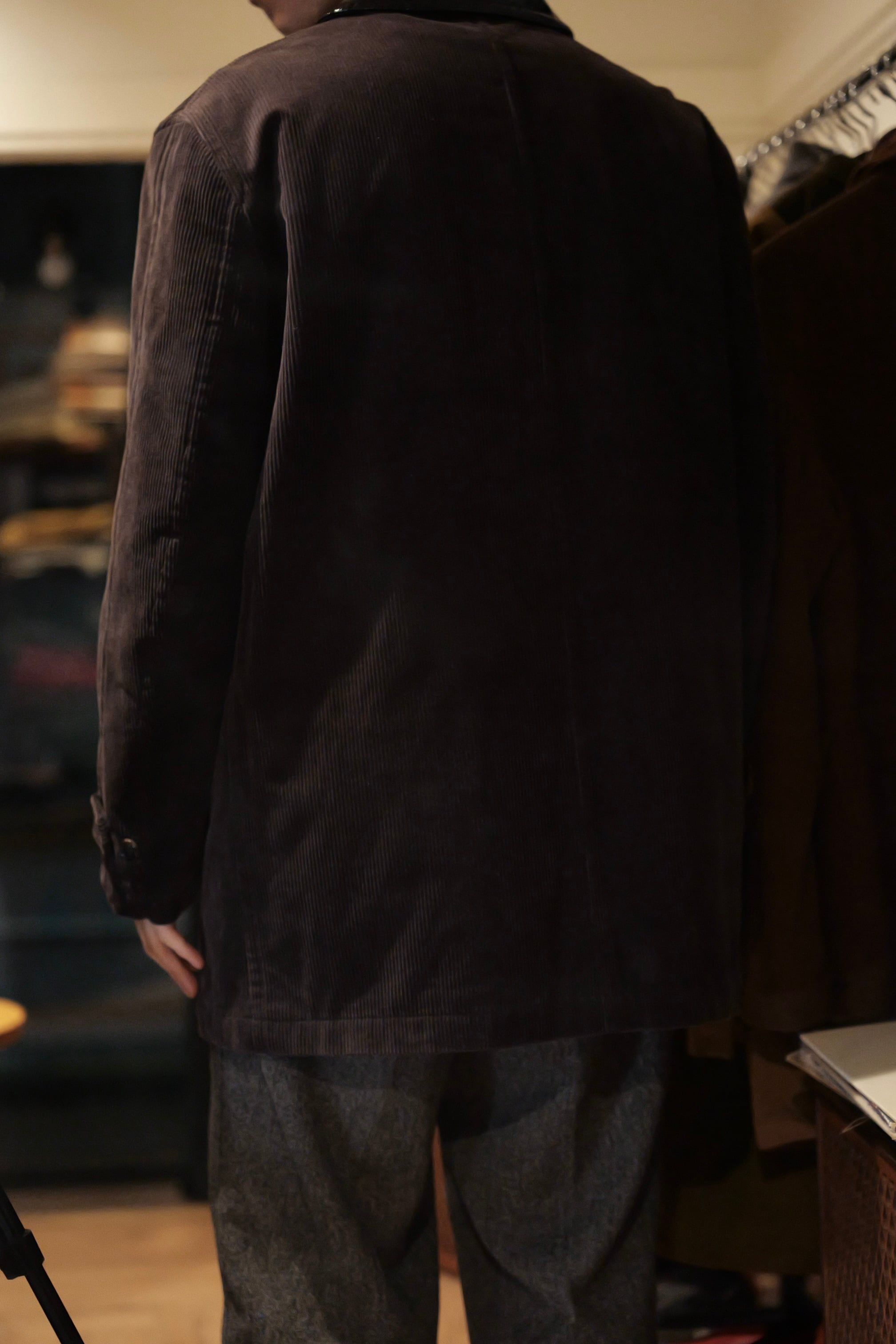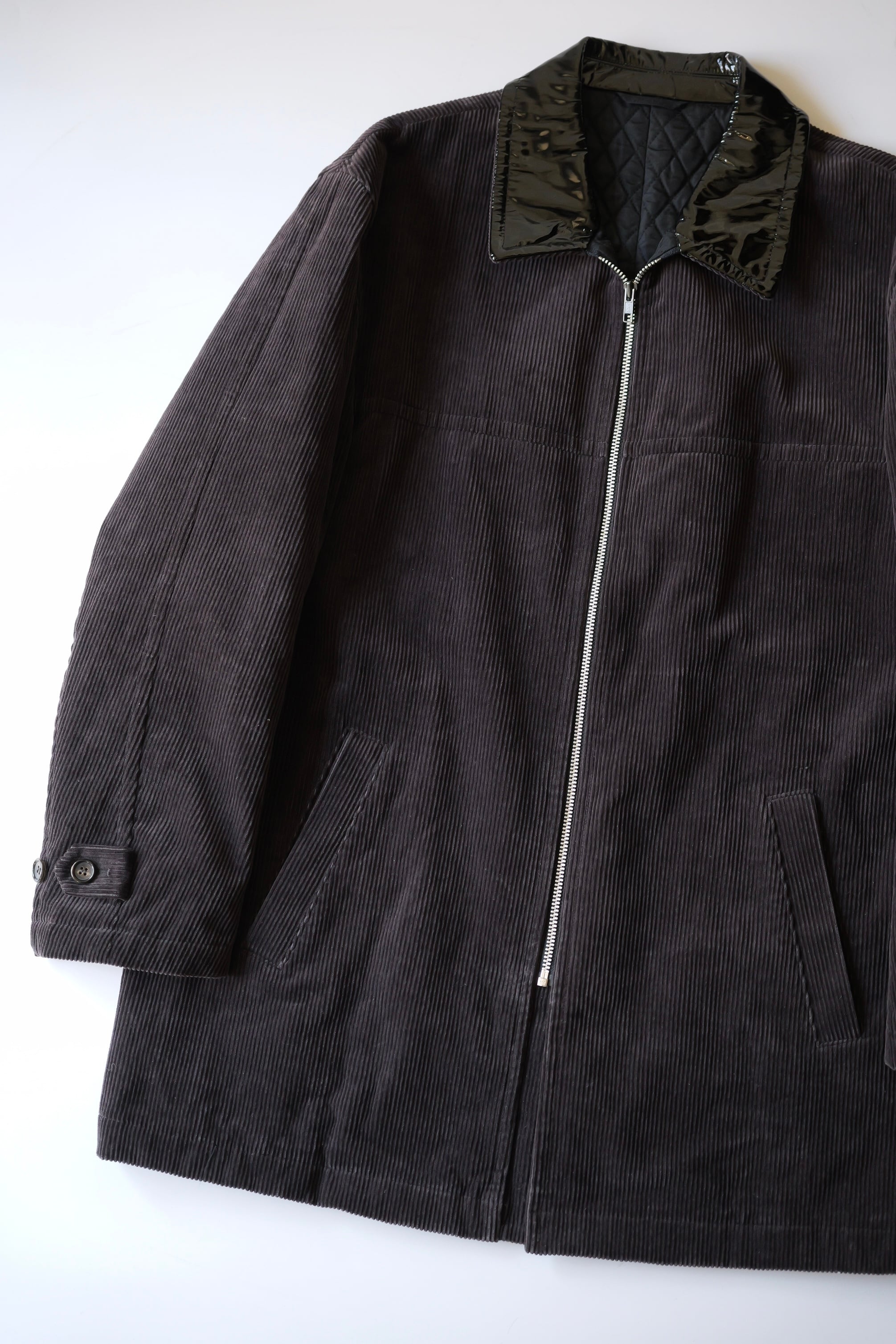 焼けたような風合いのブラックコーデュロイに対して