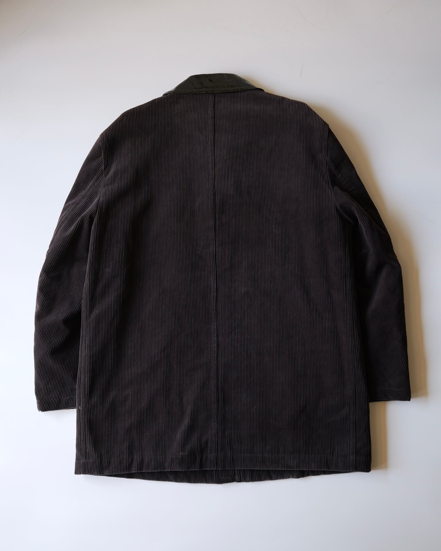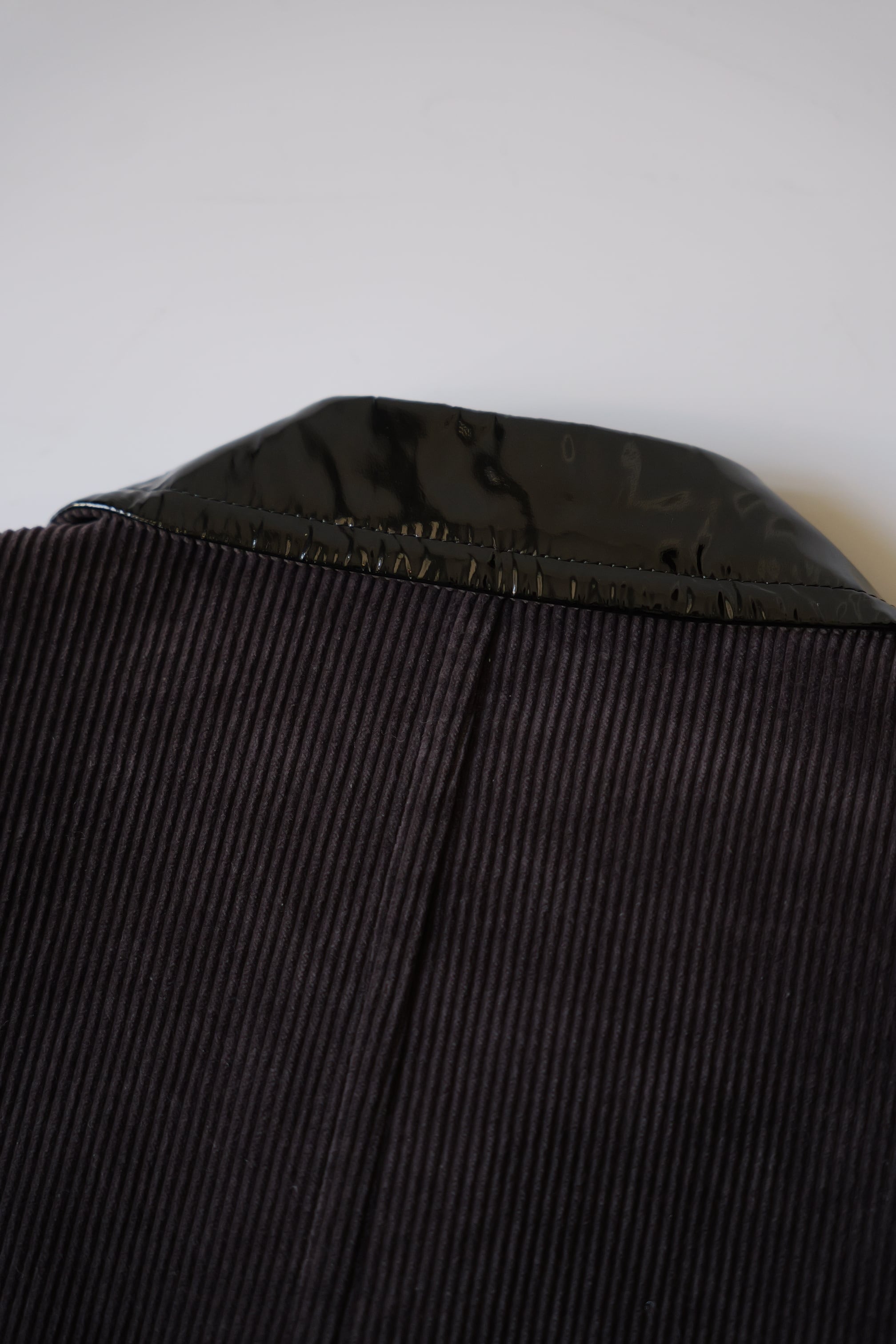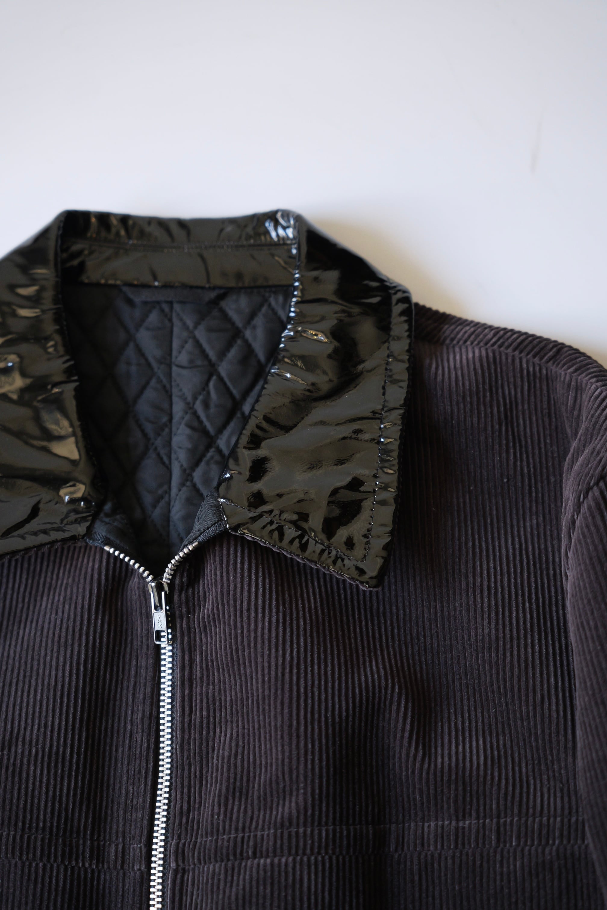 わざとらしい光沢のエナメルレザーの襟