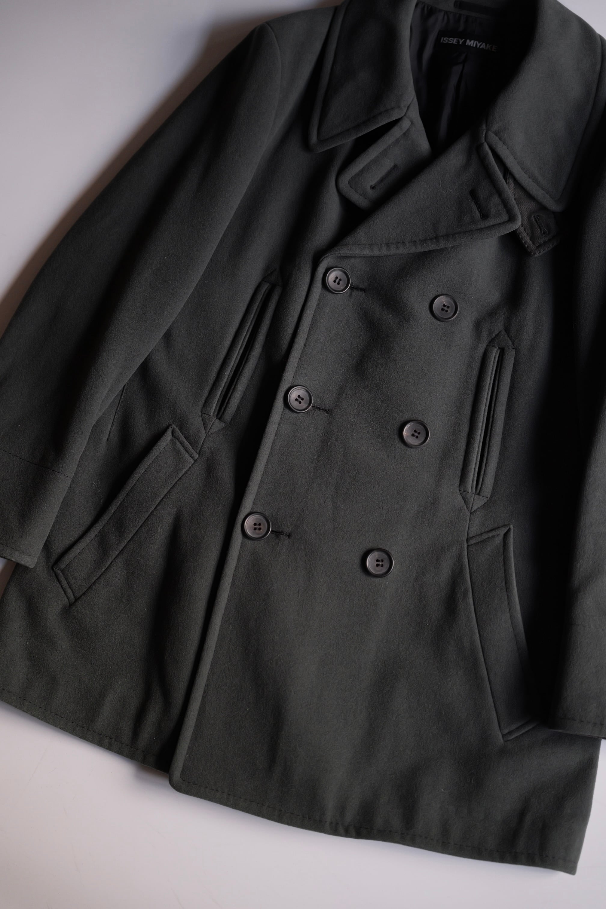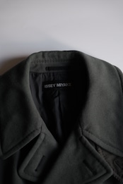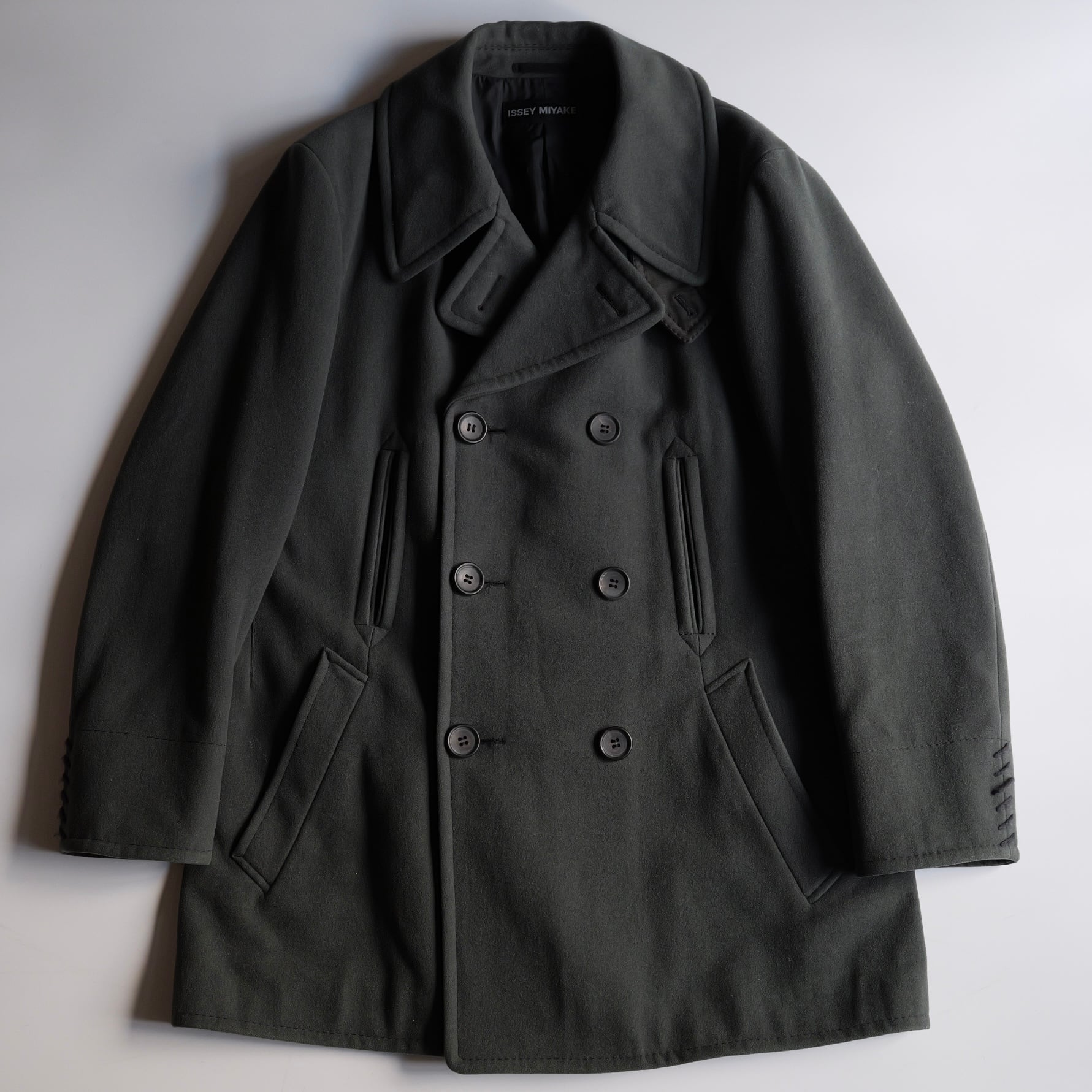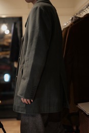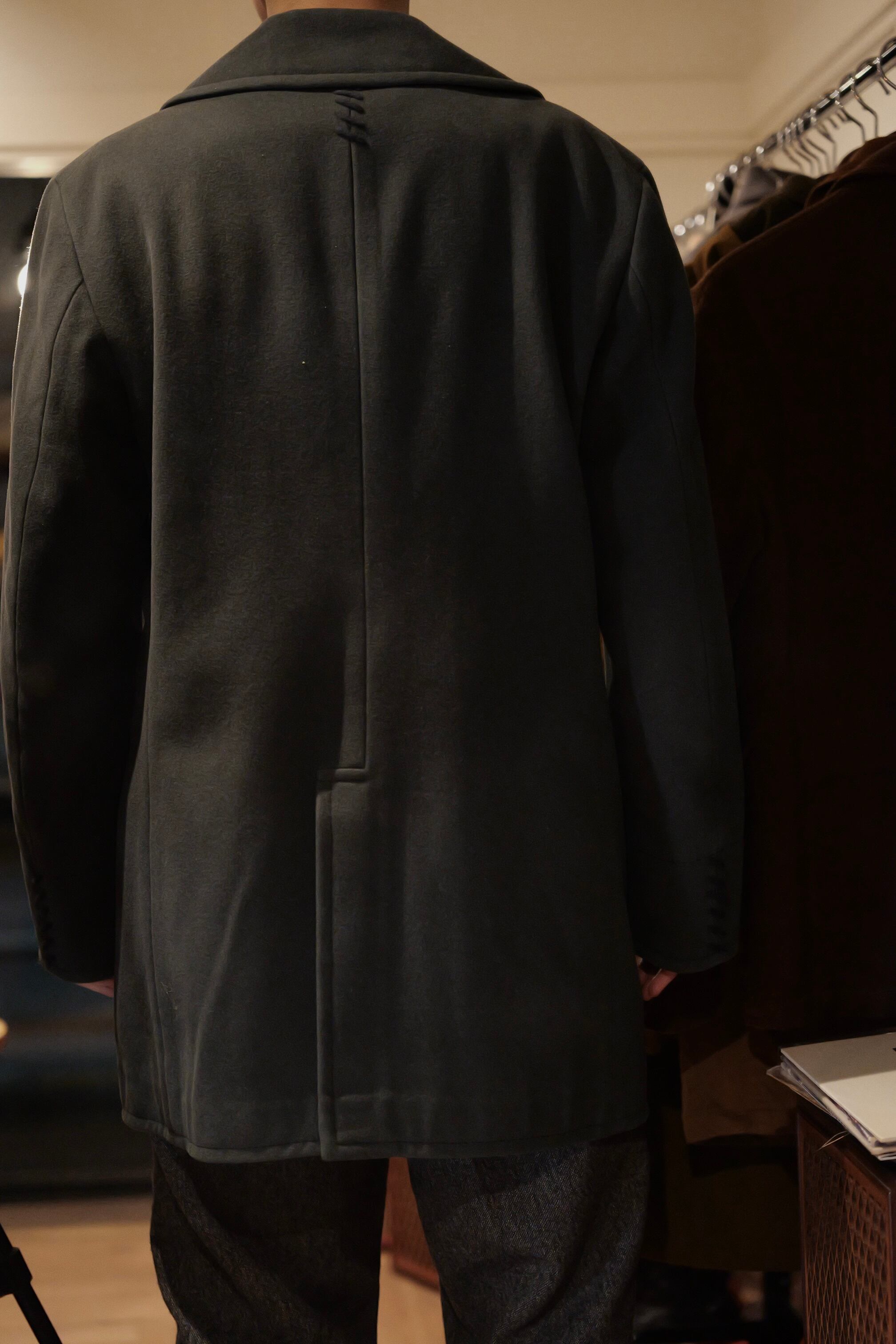 暗いオリーブグリーンのピーコート