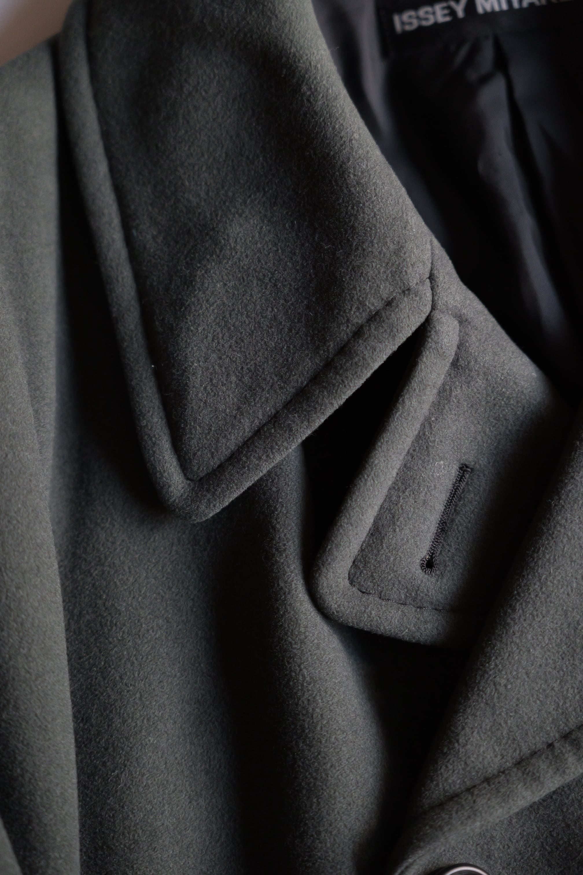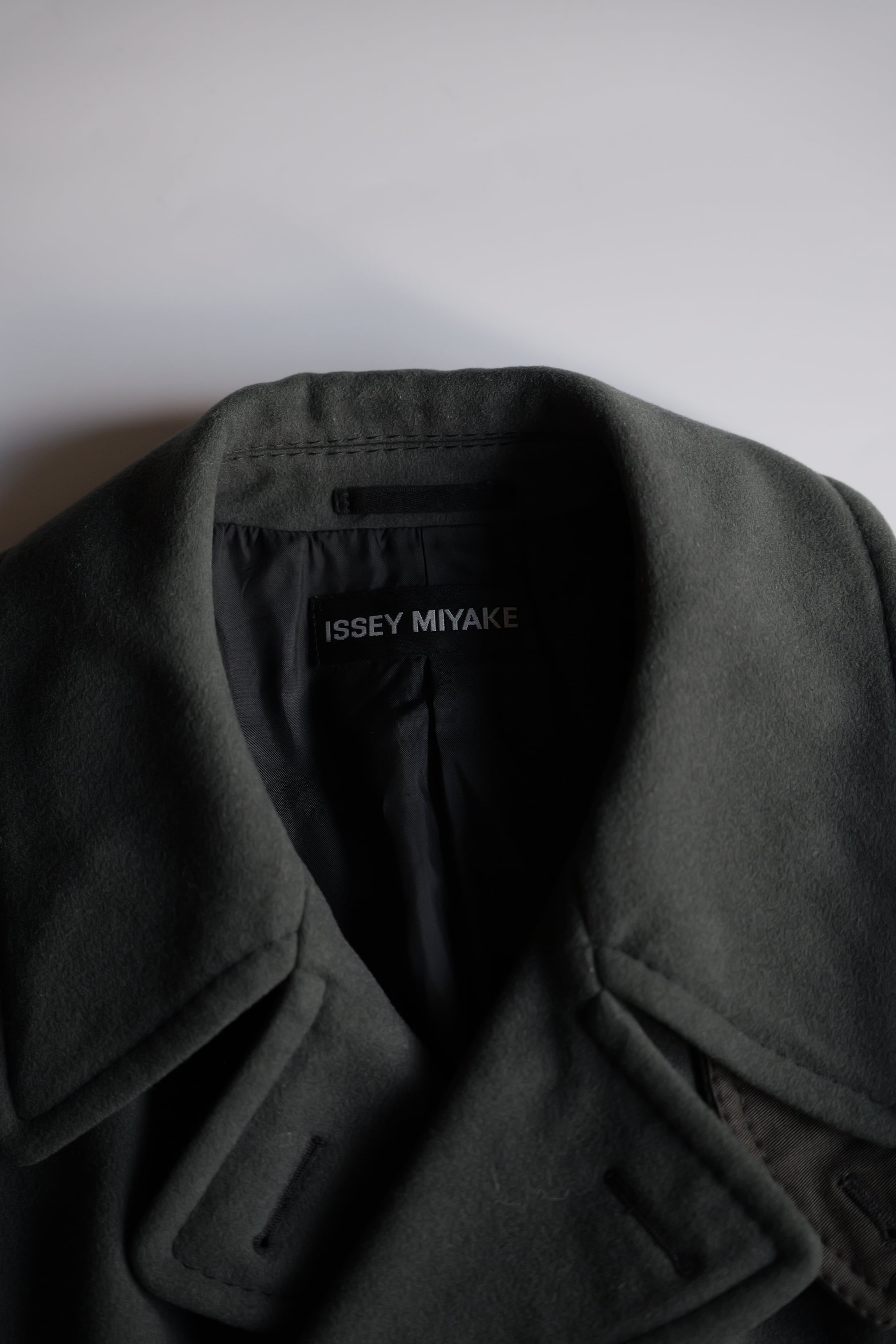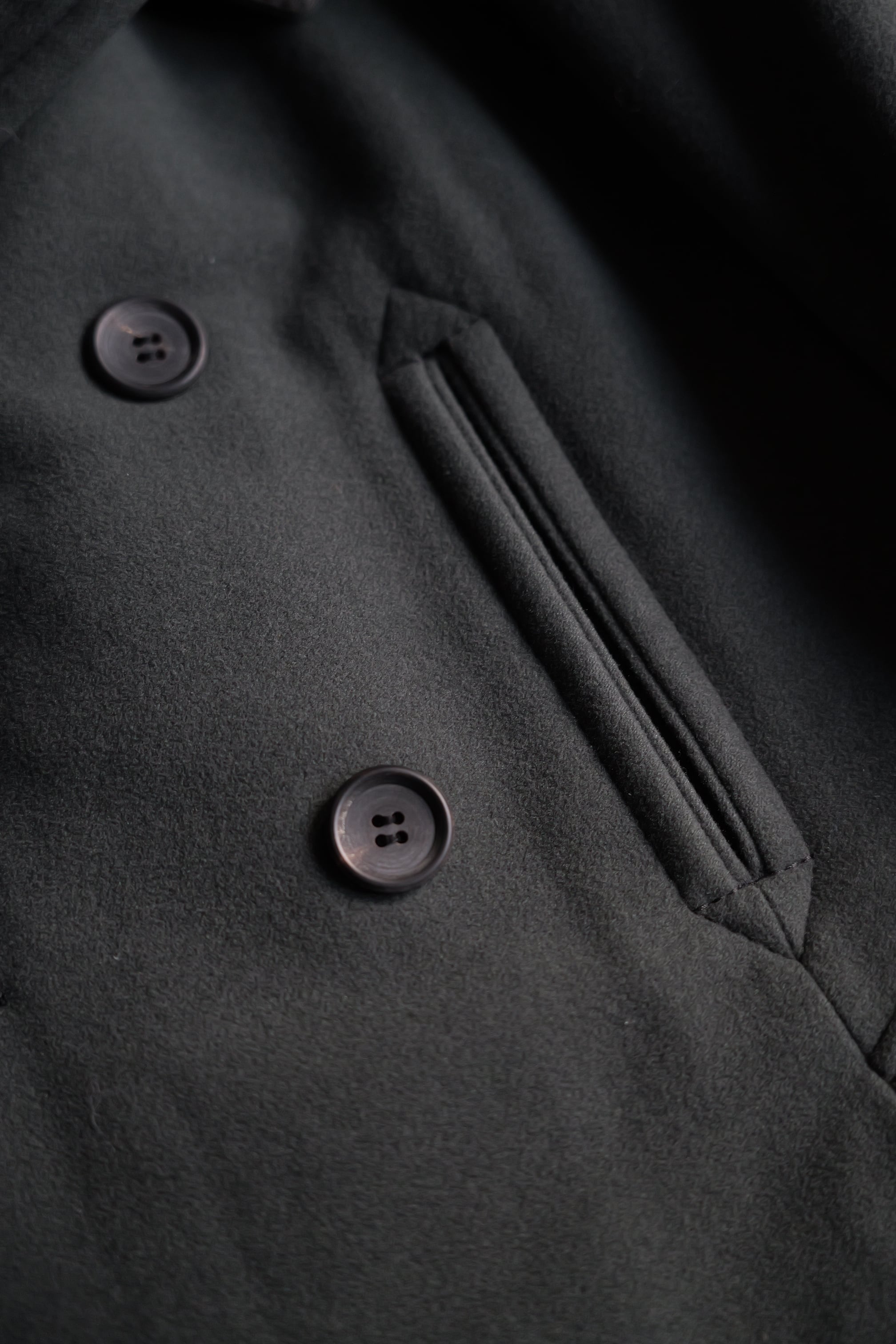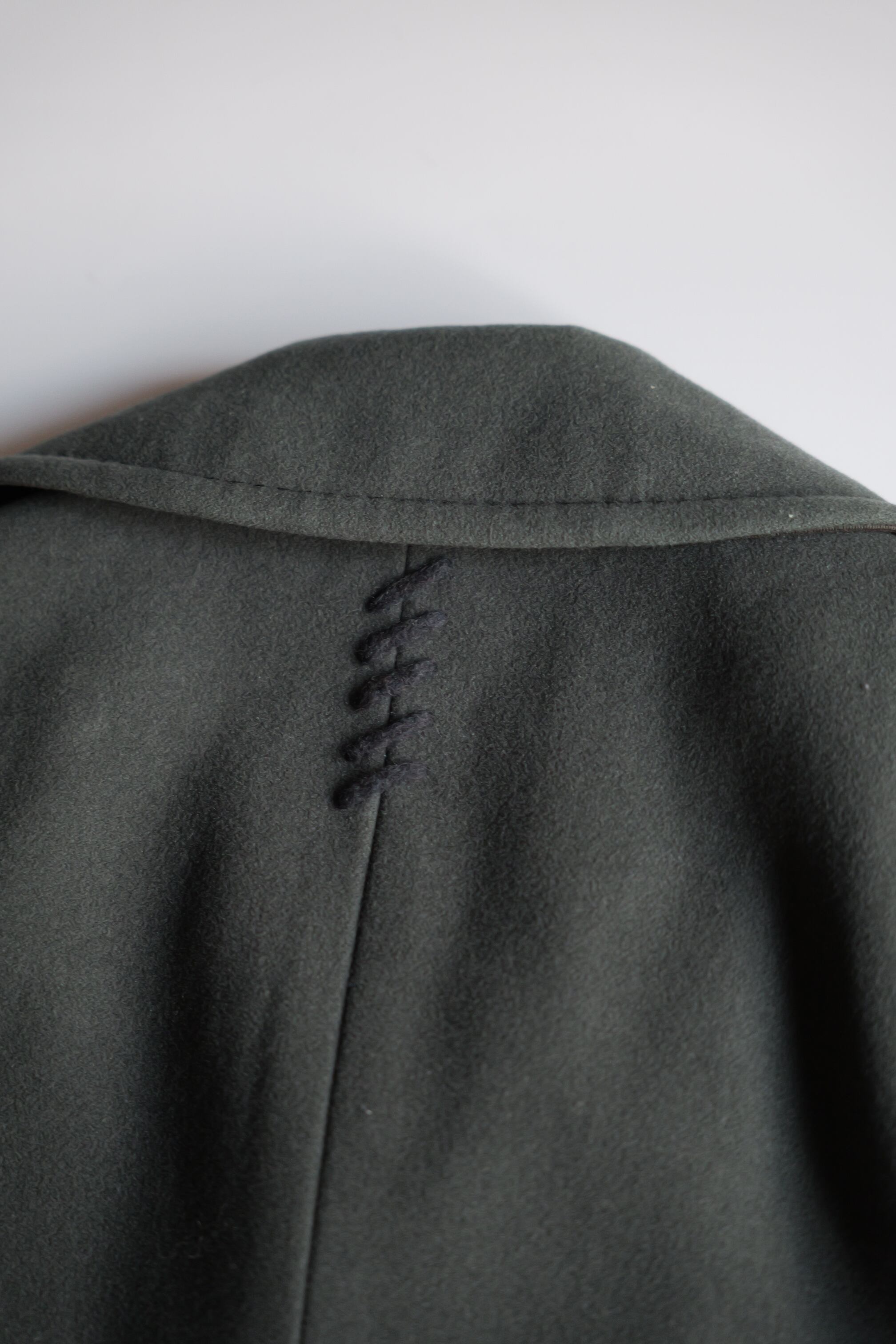 暗いオリーブグリーンのピーコート