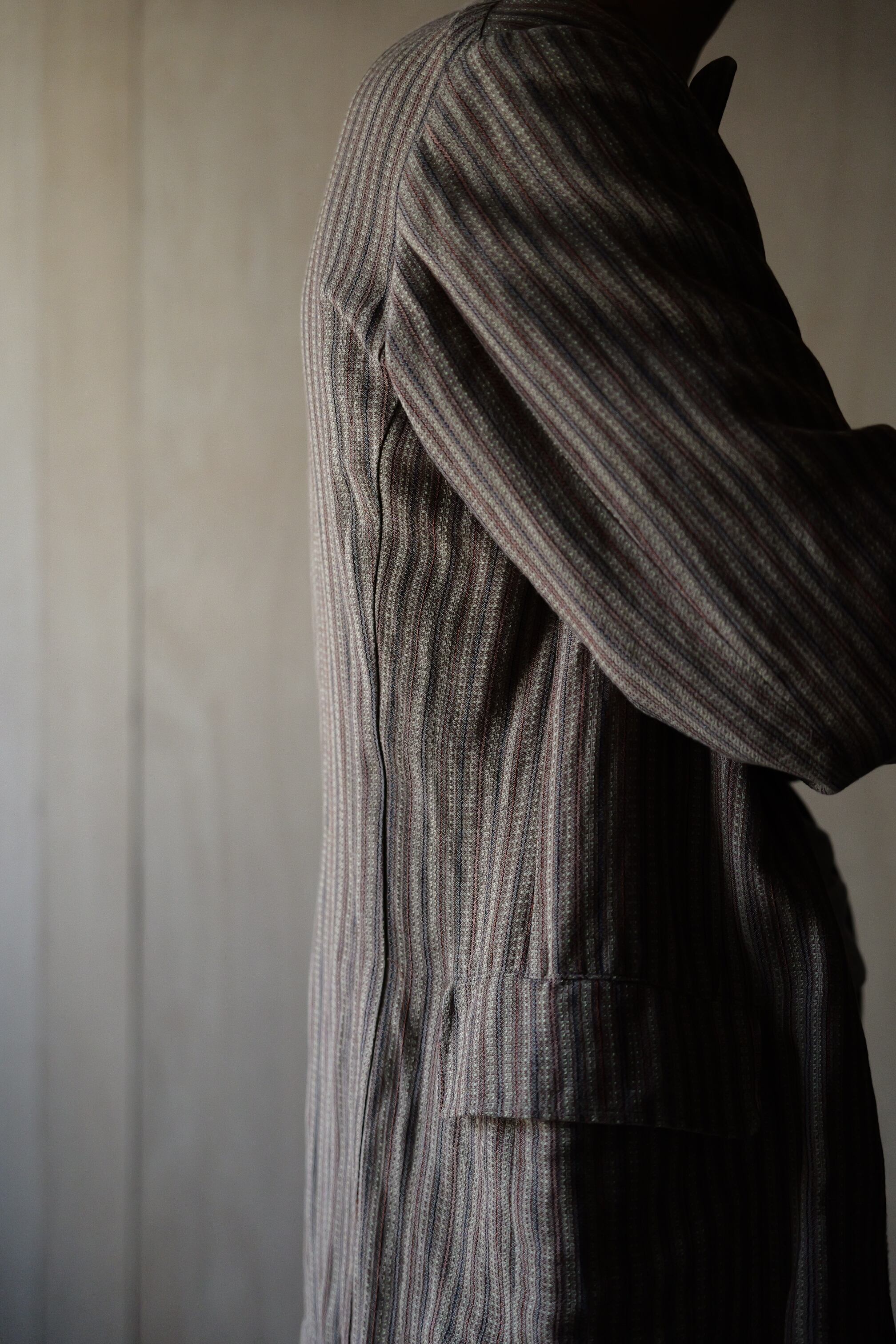 ピークドラペルを採用したドレッシーな型ですが、リラックス感のあるパターンや芯地を無くしたテーラリングのおかげで、
