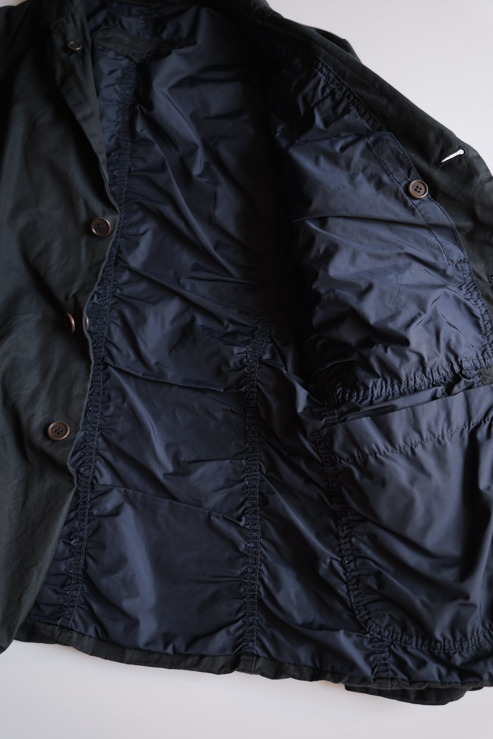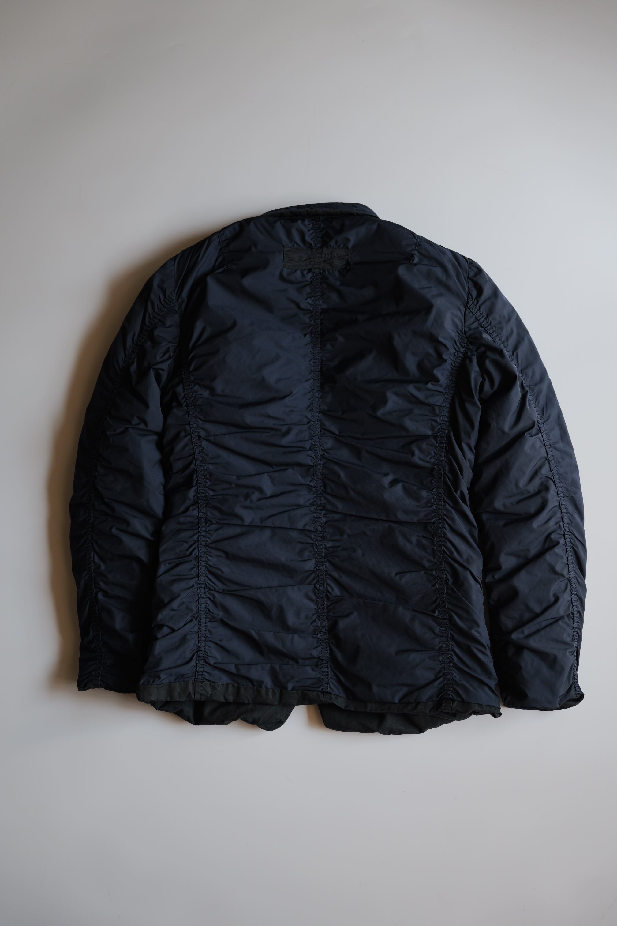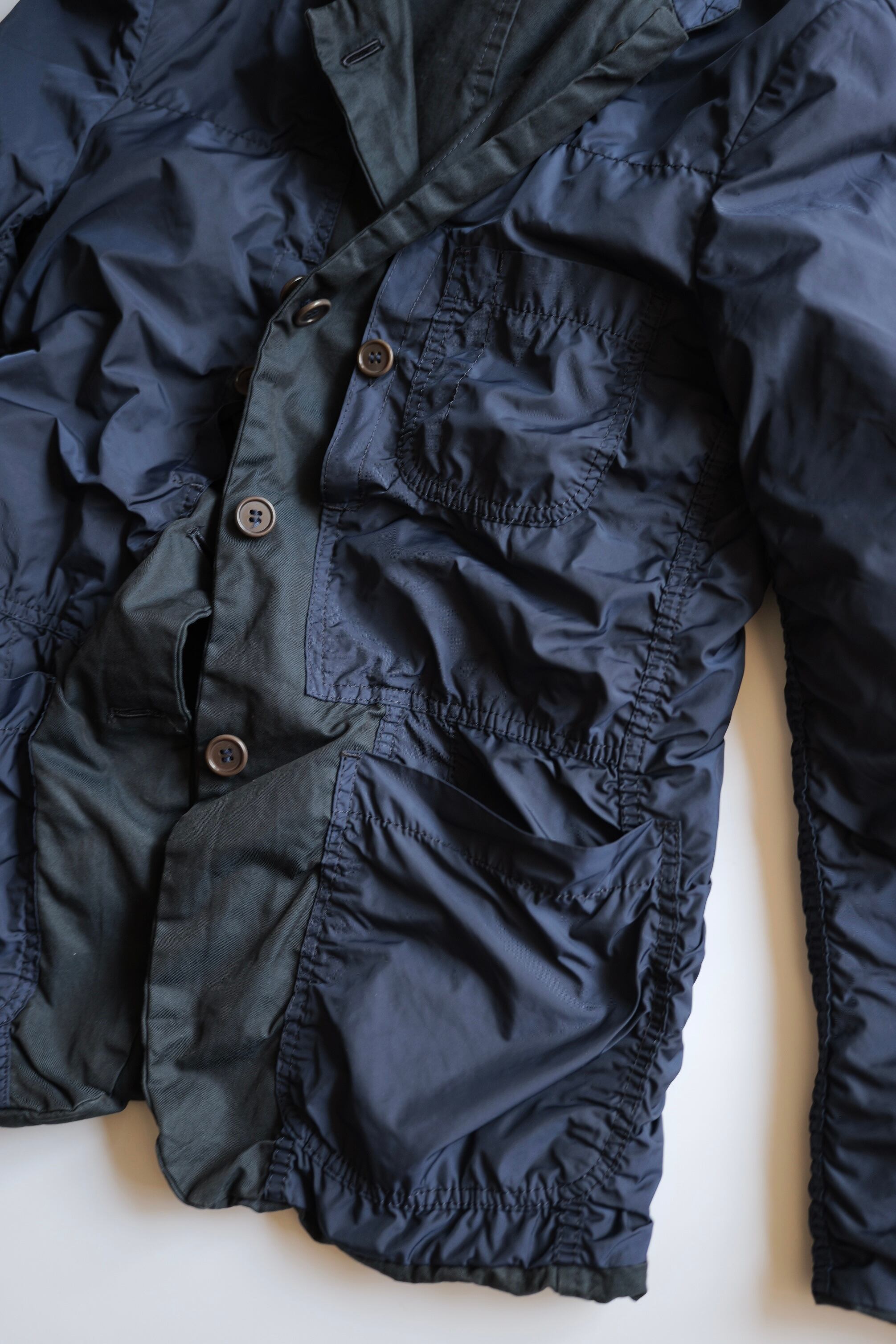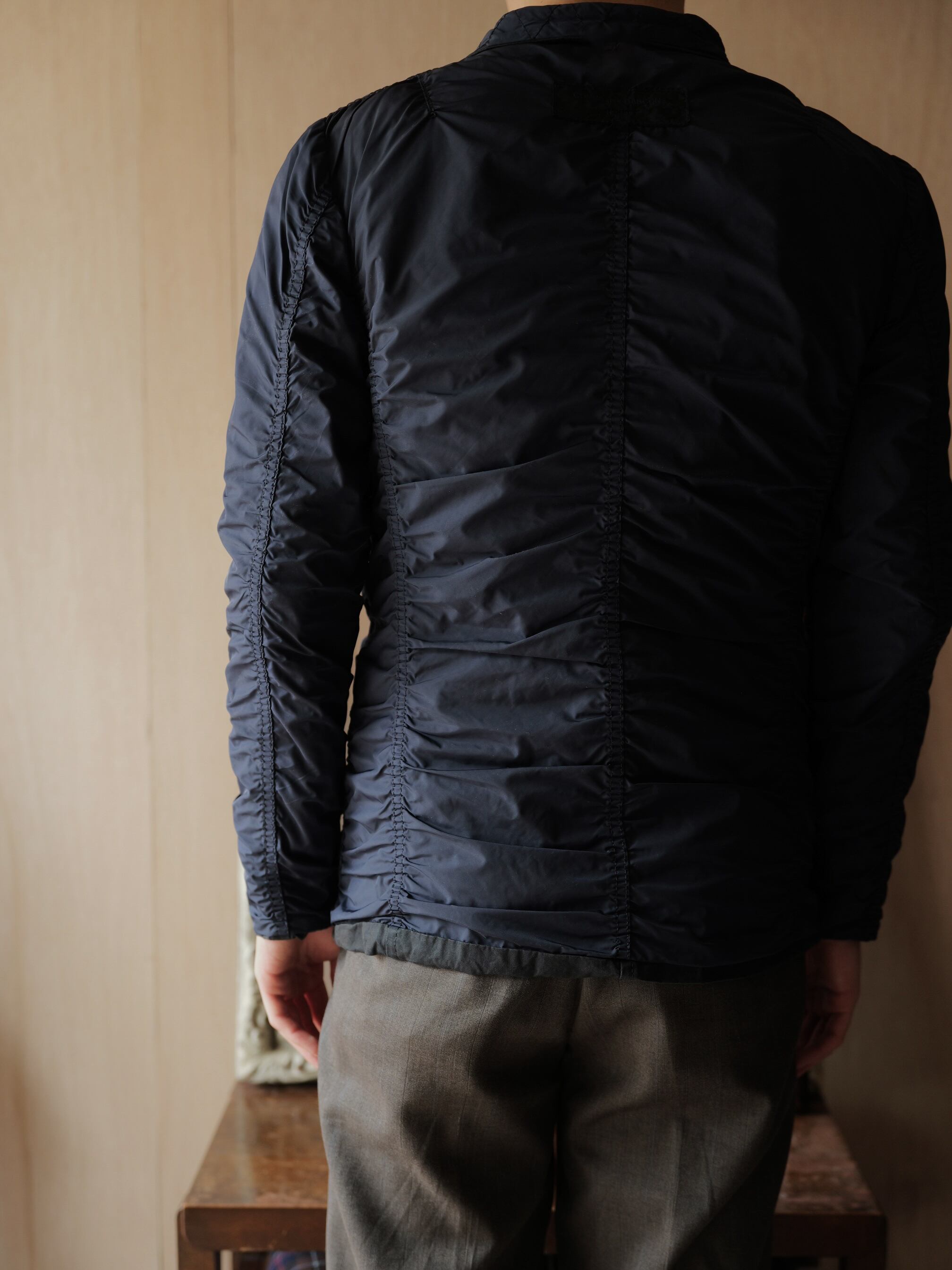 裏側はハードなパッカリングが効いた、ポリエステル製のテキスタイルでの