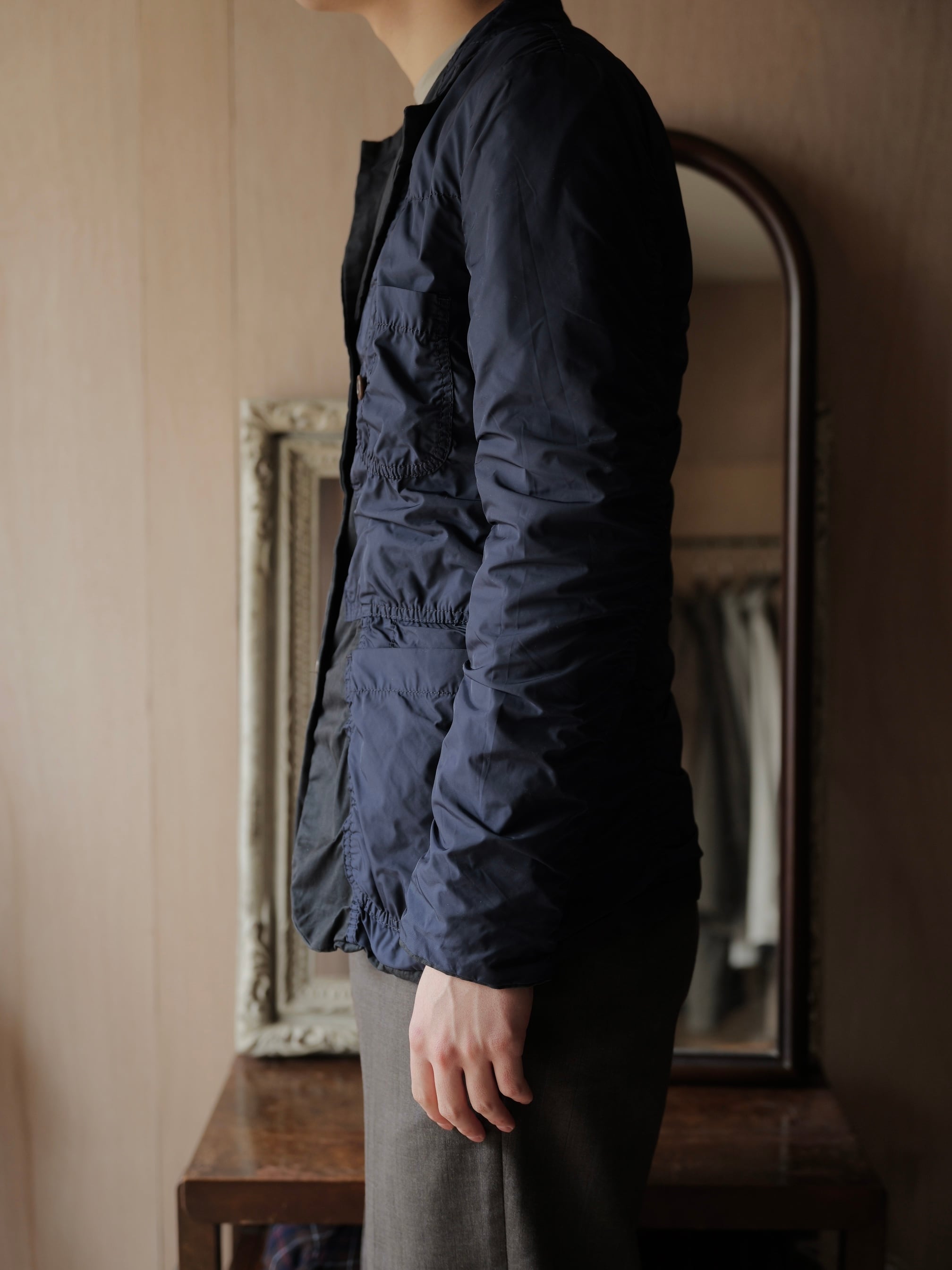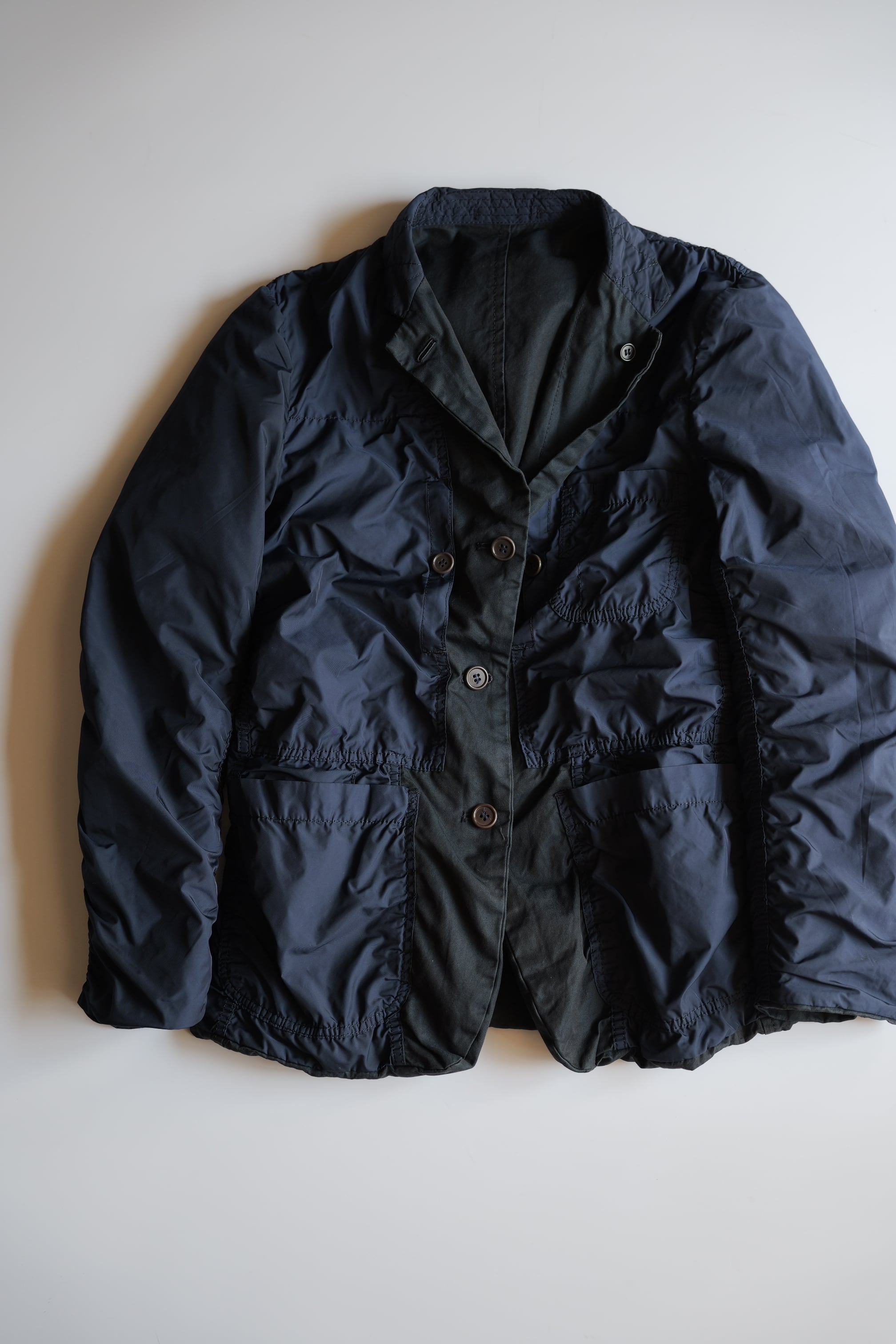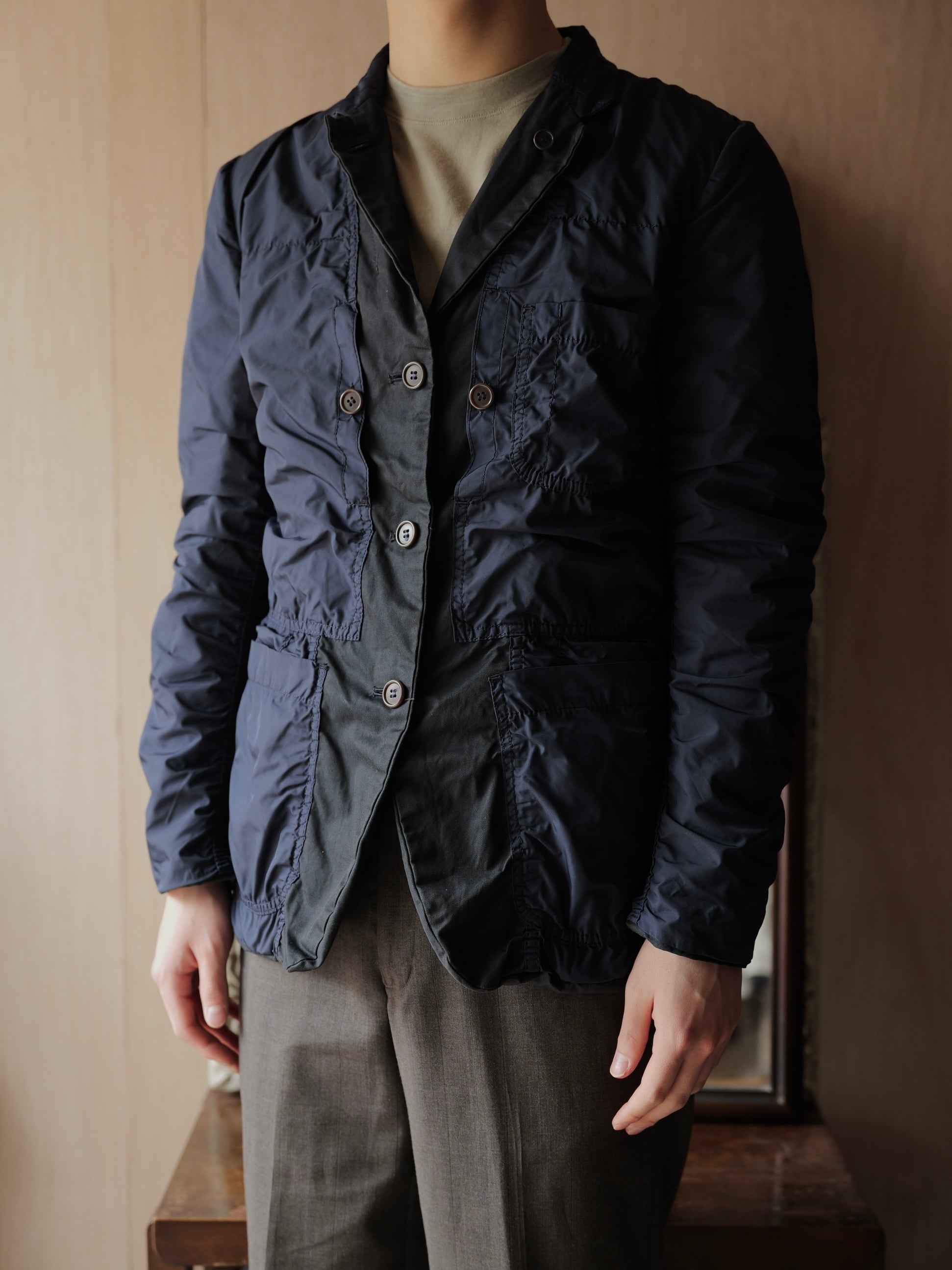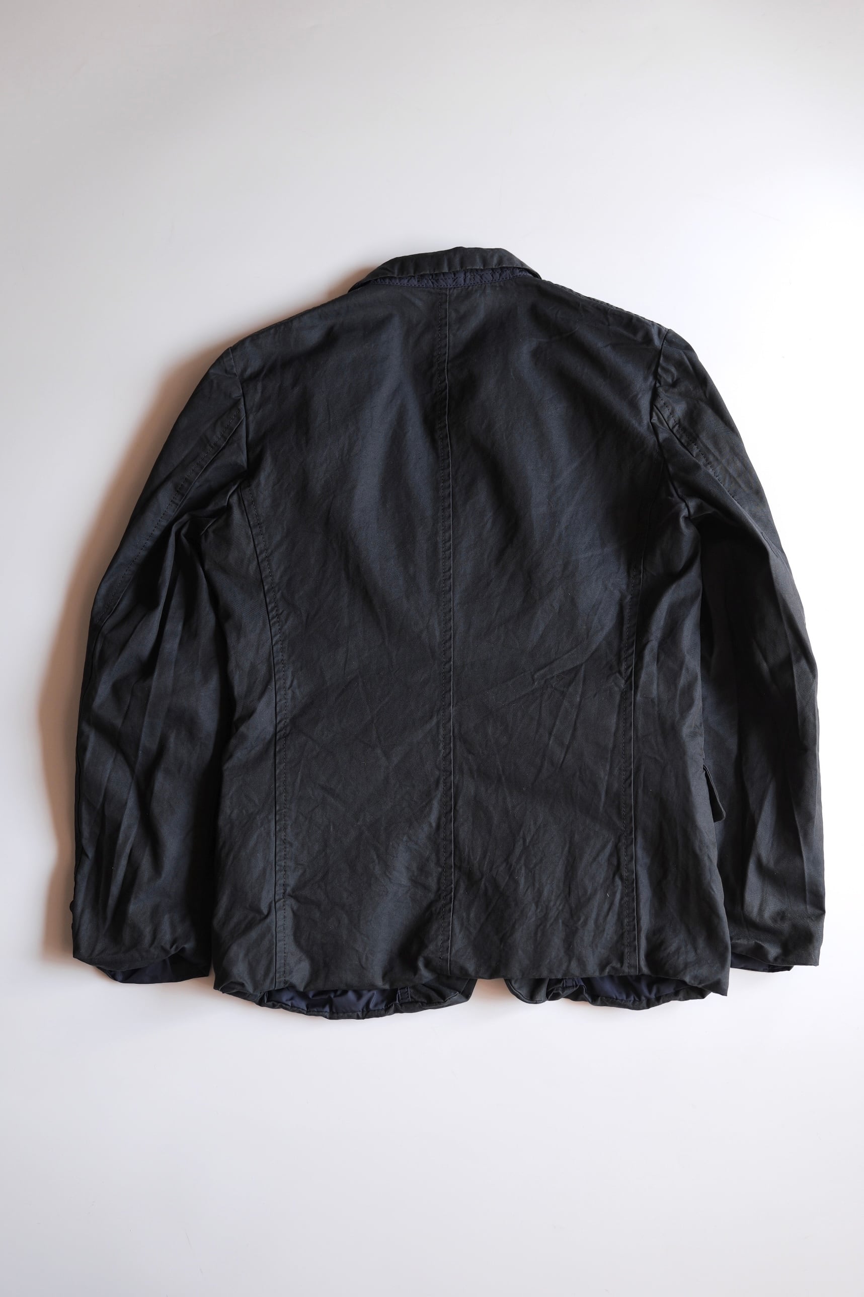 裏側はハードなパッカリングが効いた、ポリエステル製のテキスタイルでの