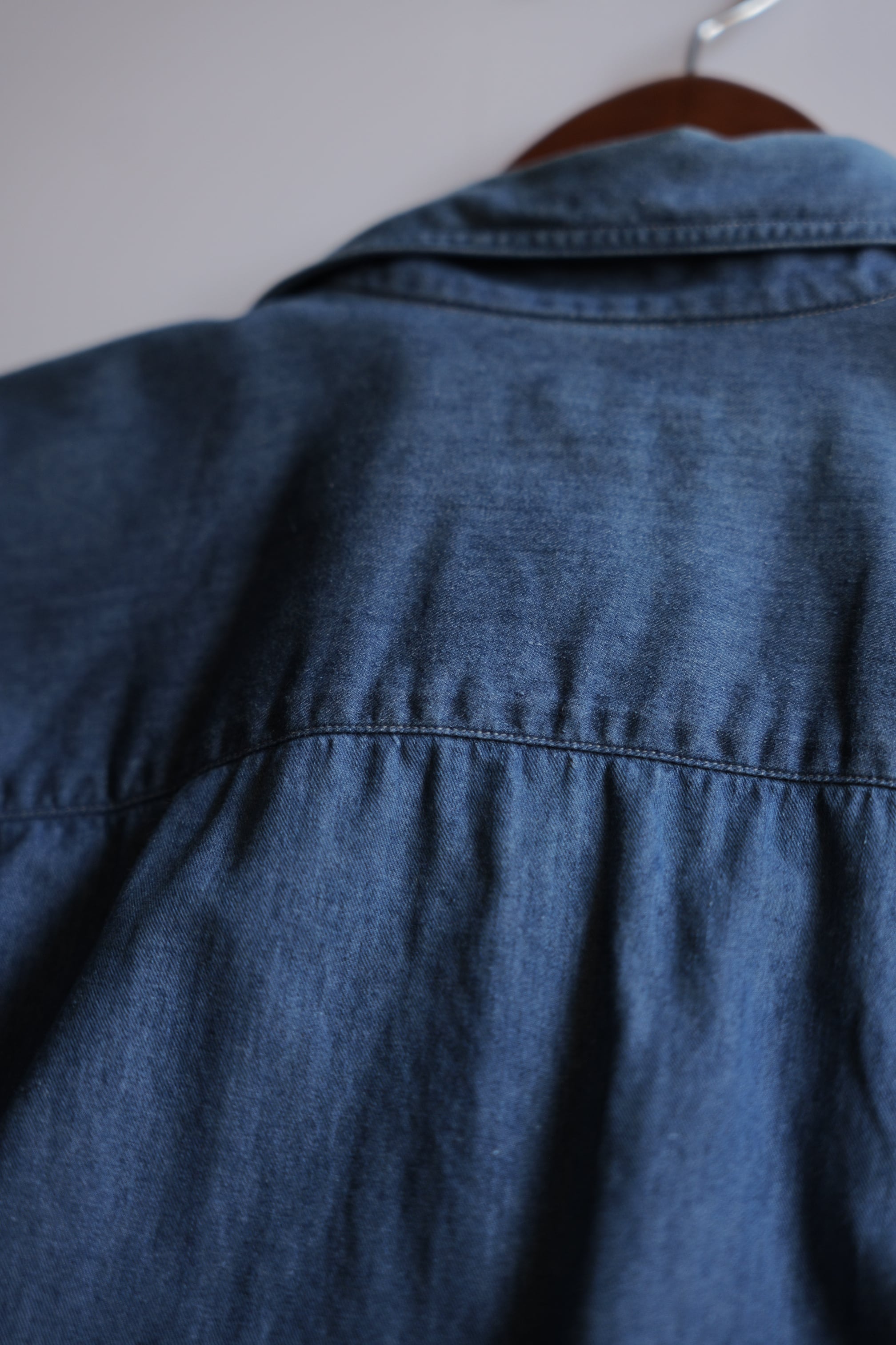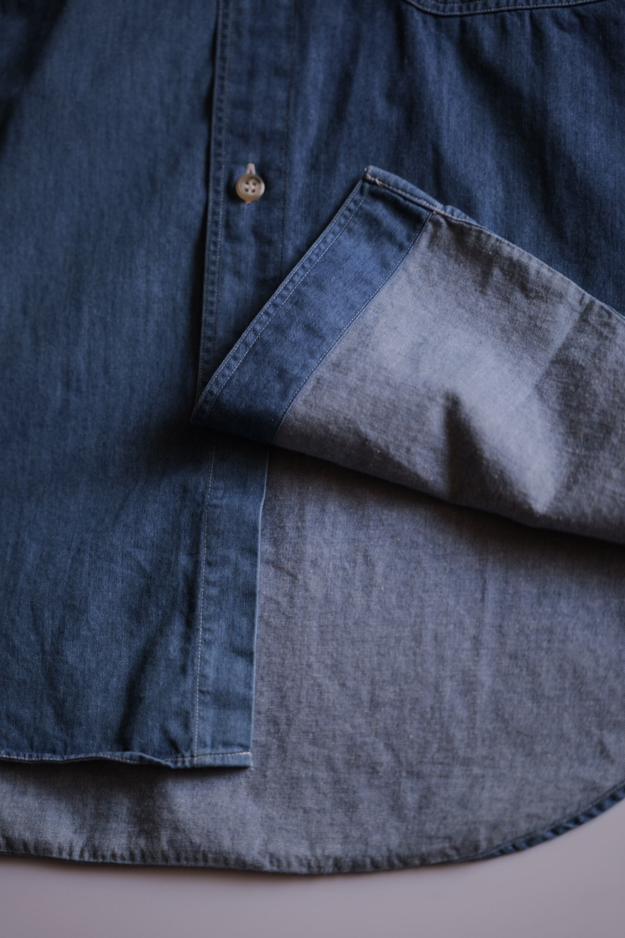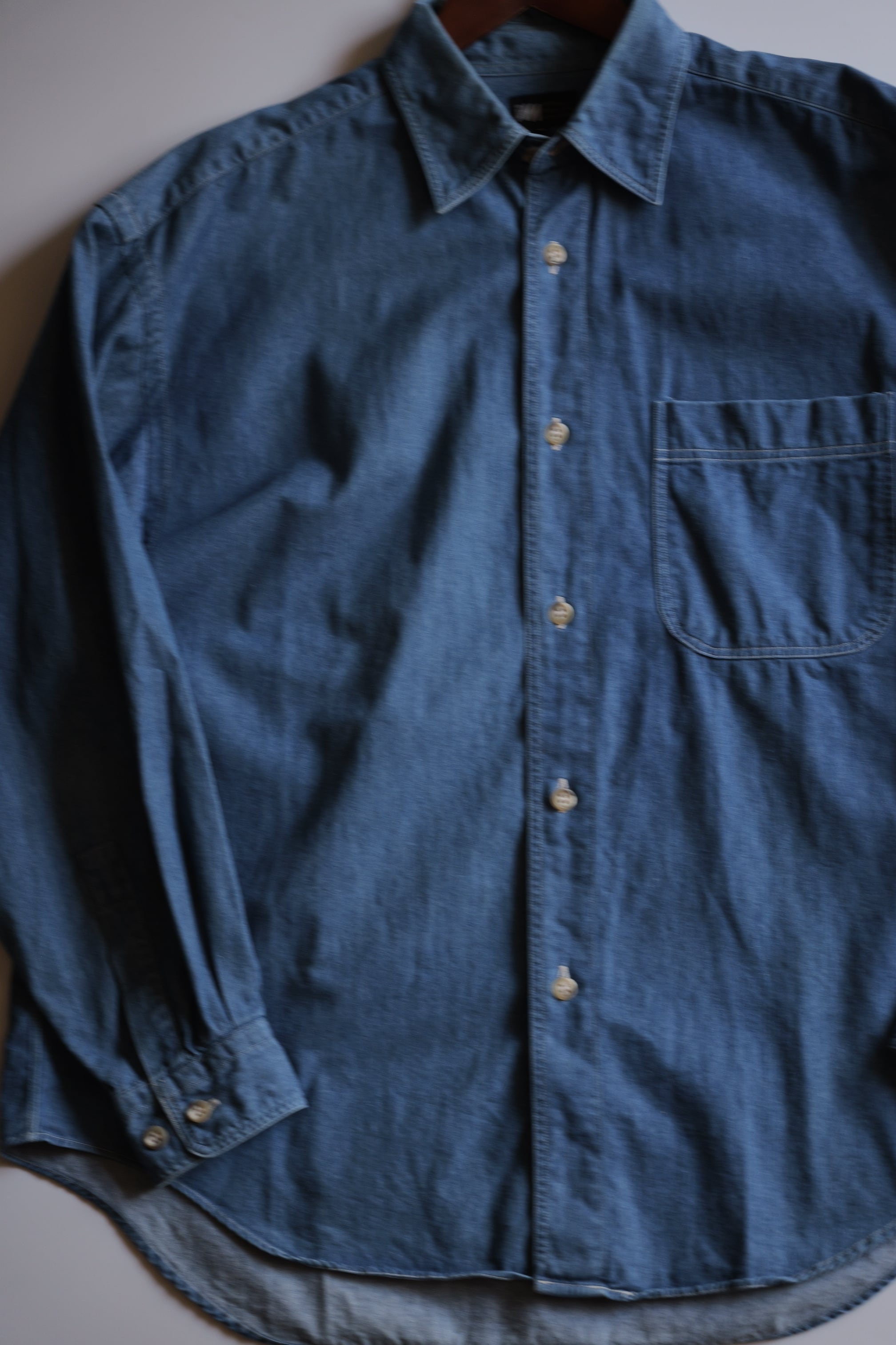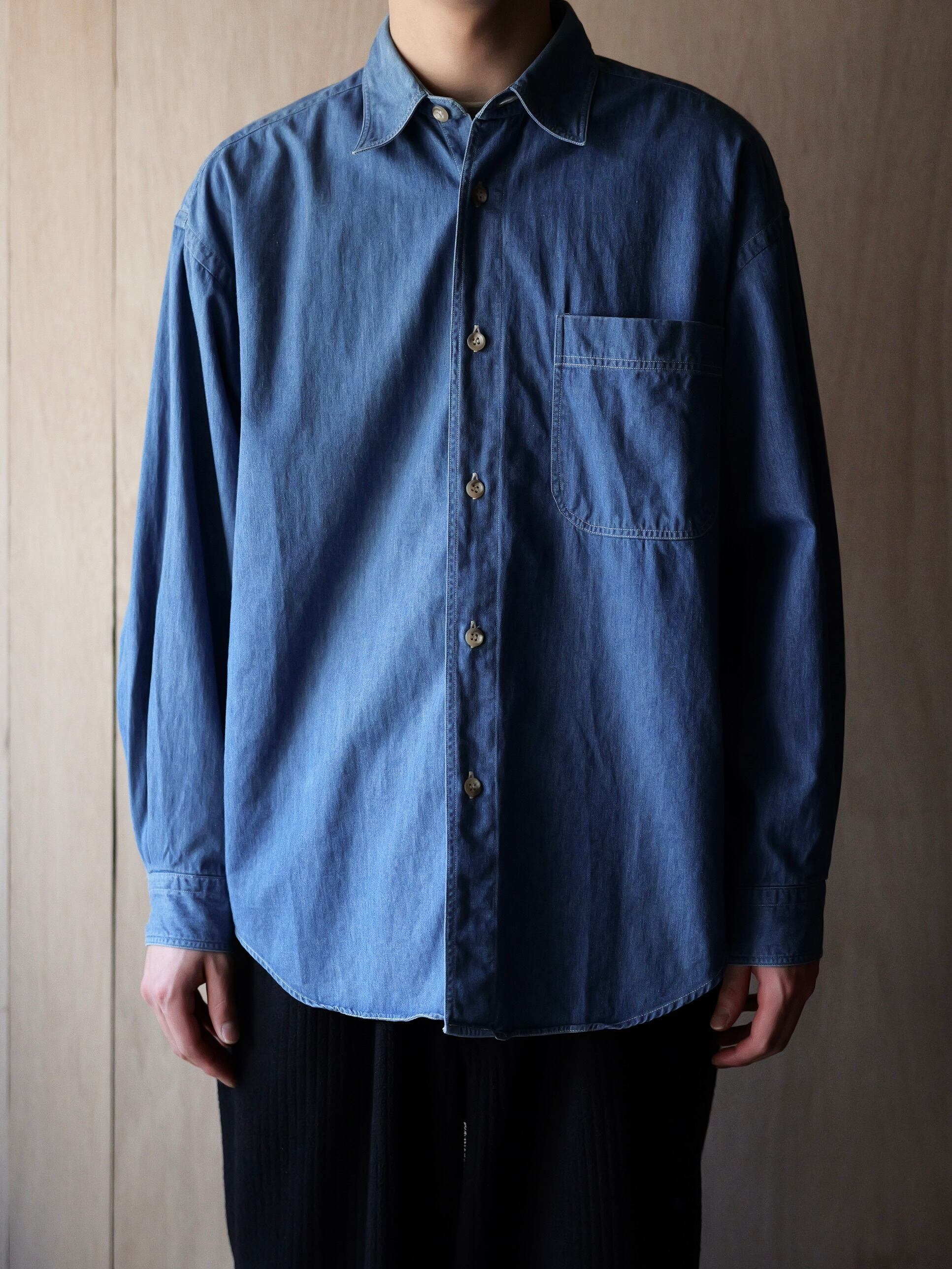 薄手でドレッシーな生地感のデニムシャツ