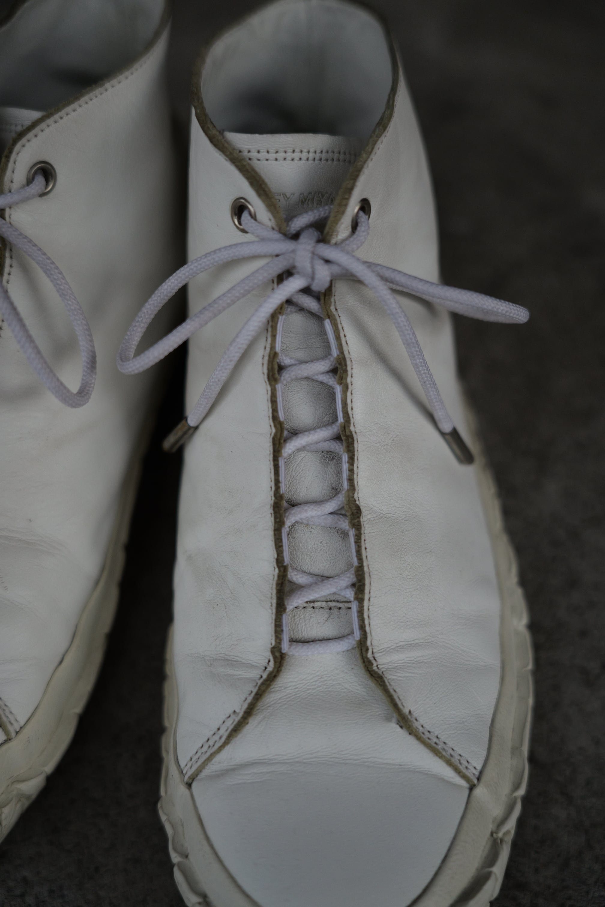 イッセイらしいデザインを感じる、ミニマルなシューレース周りのディテール