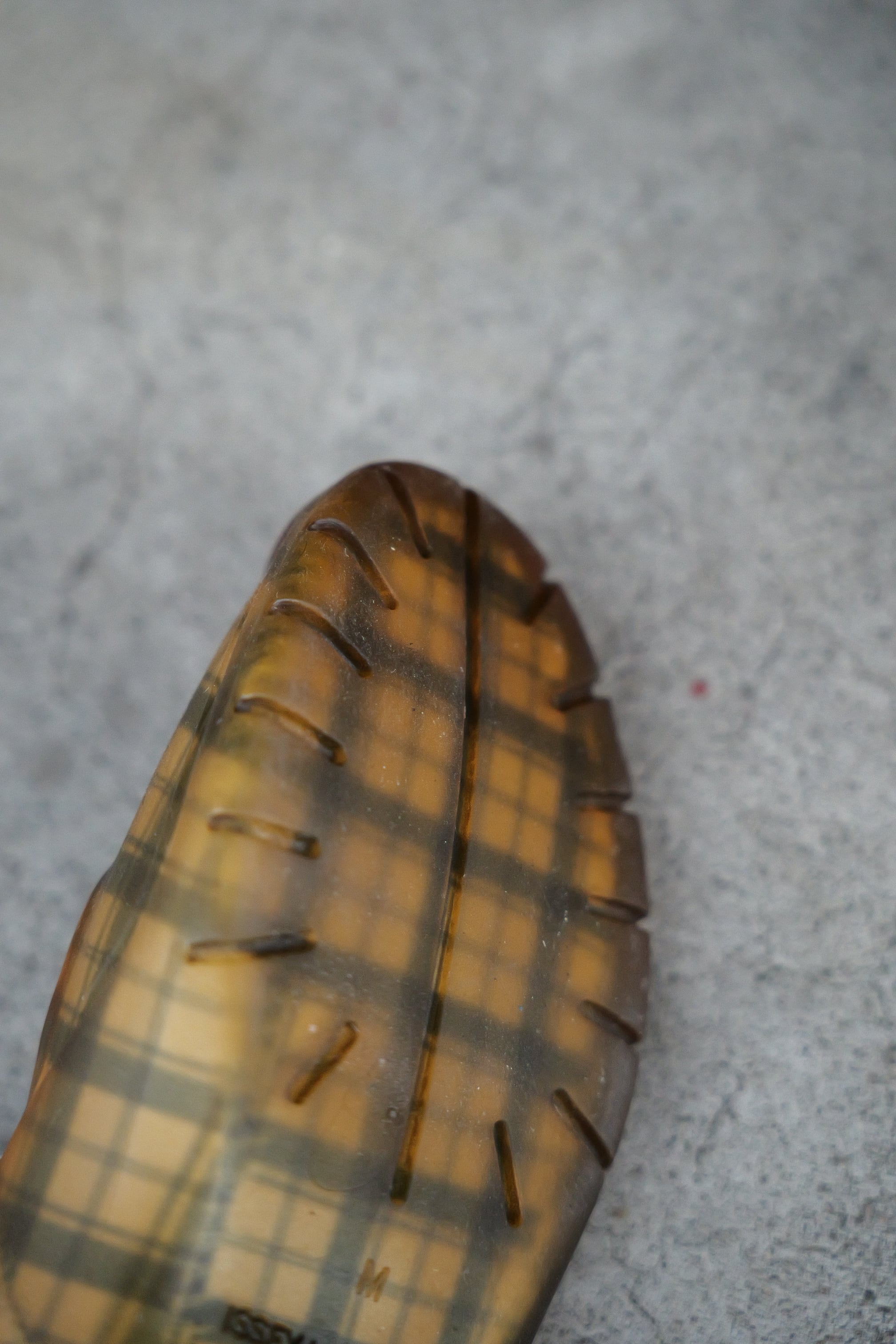 アウトソールによく触ると若干のベタつきがございますが、他に割れ等の劣化はなく比較的良好な状態かと