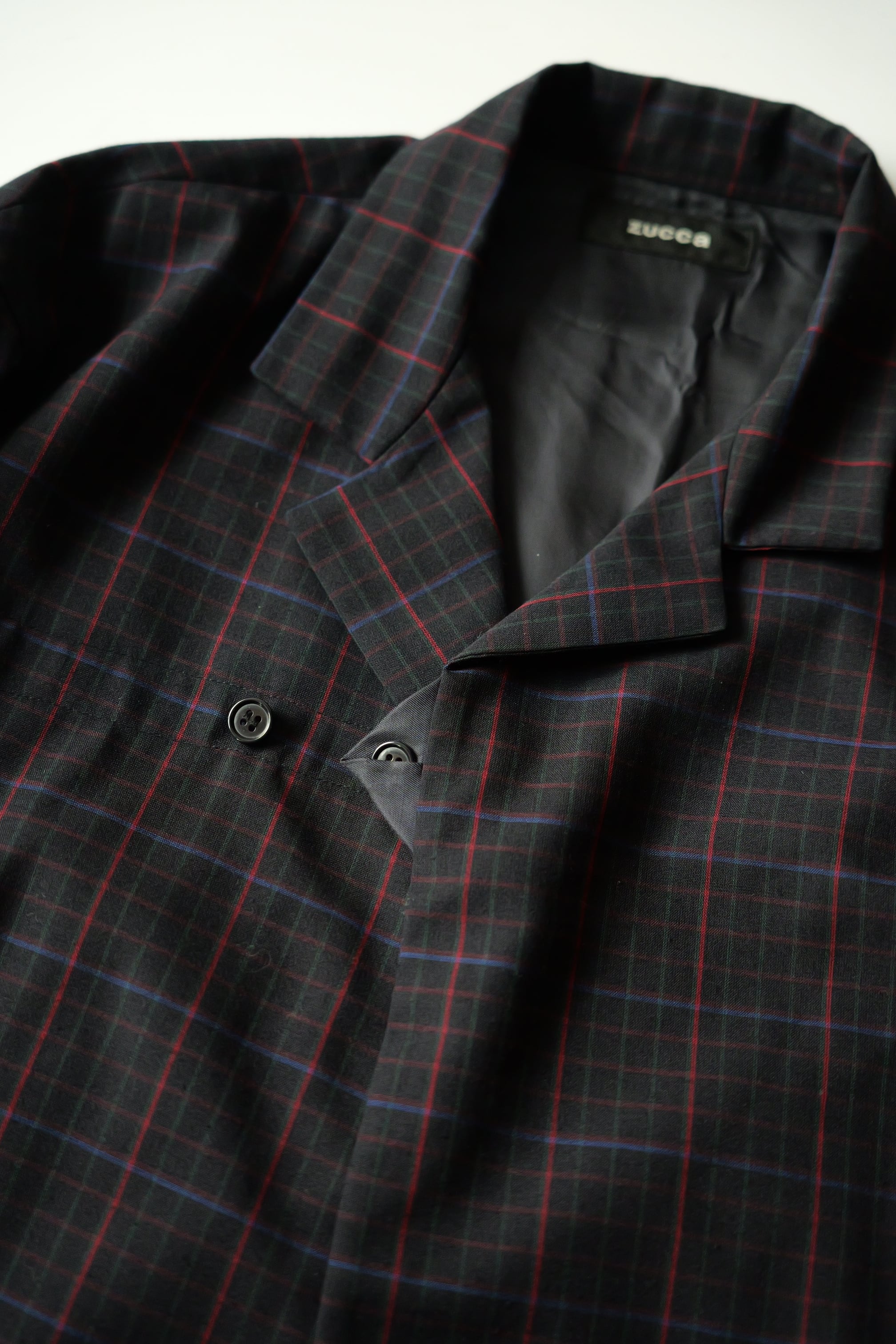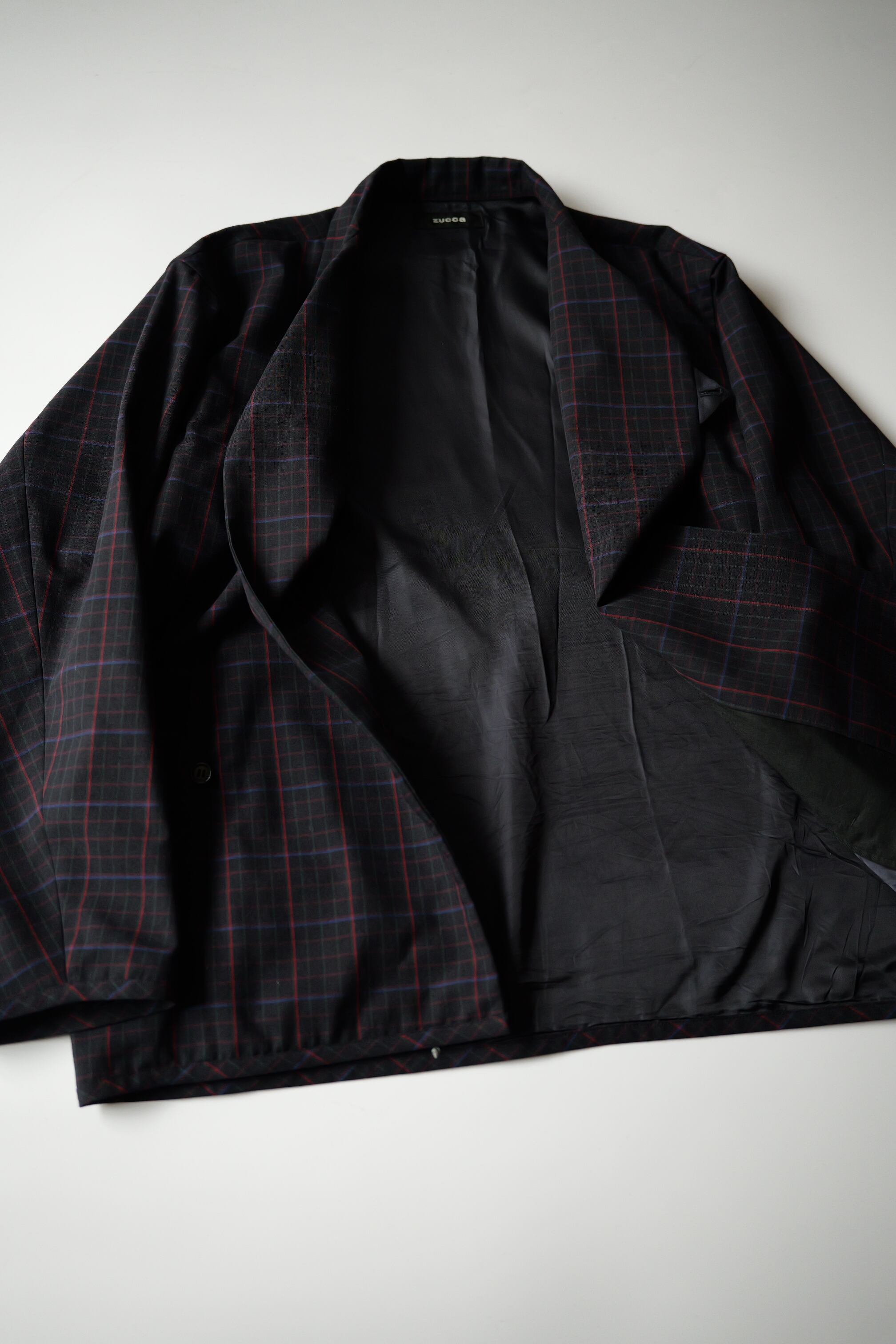 ブラックをベースに、レッドとパープルのチェック地