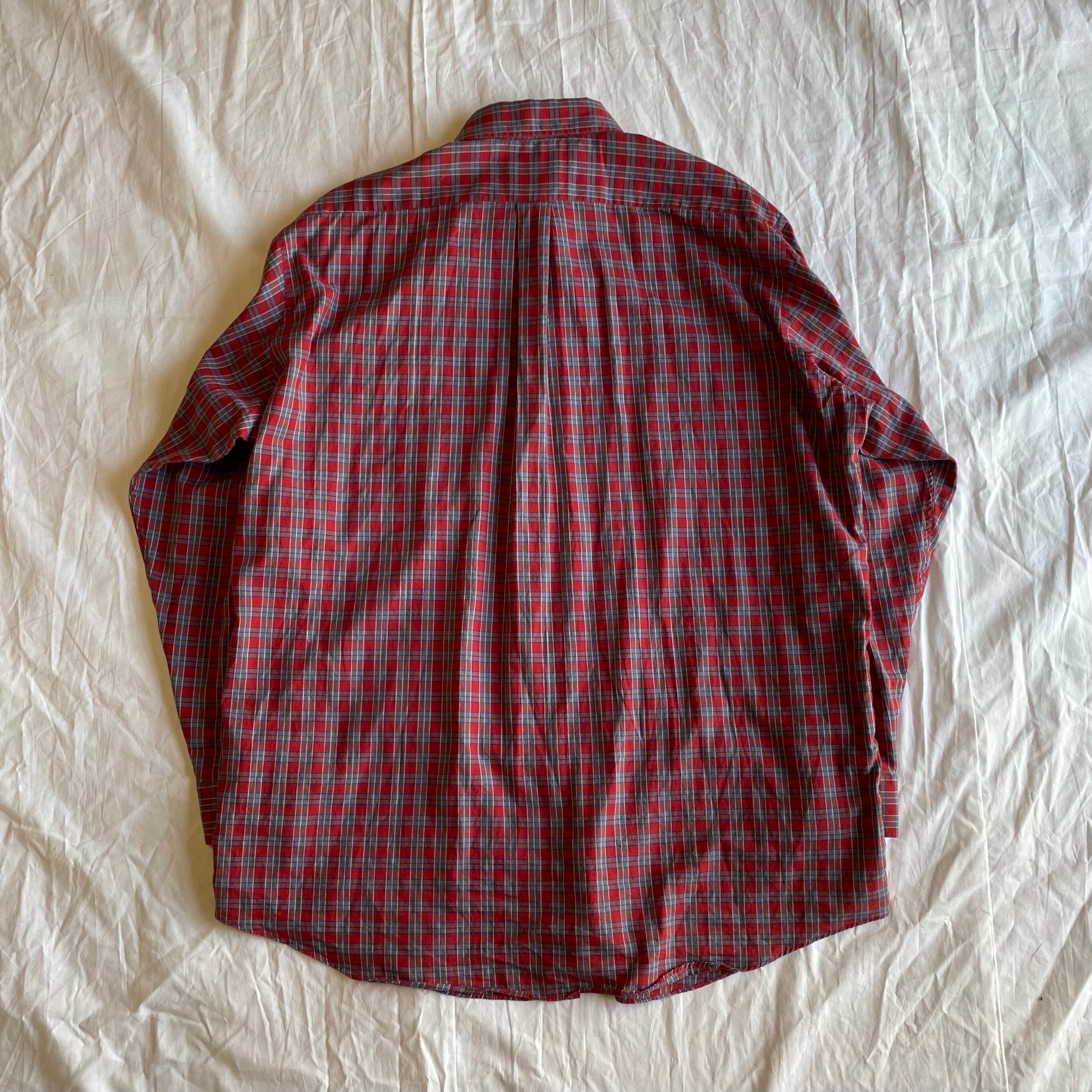 襟の形とチェックと着丈が長いシルエットでグランパシャツぽい