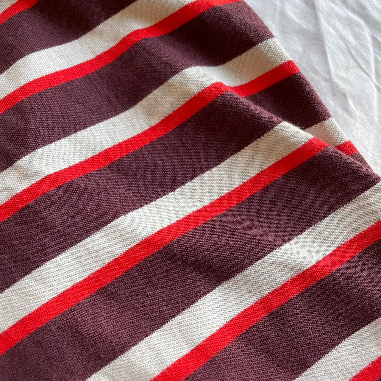 ブラウンと朱色と白の良い配色でオーバーサイズ