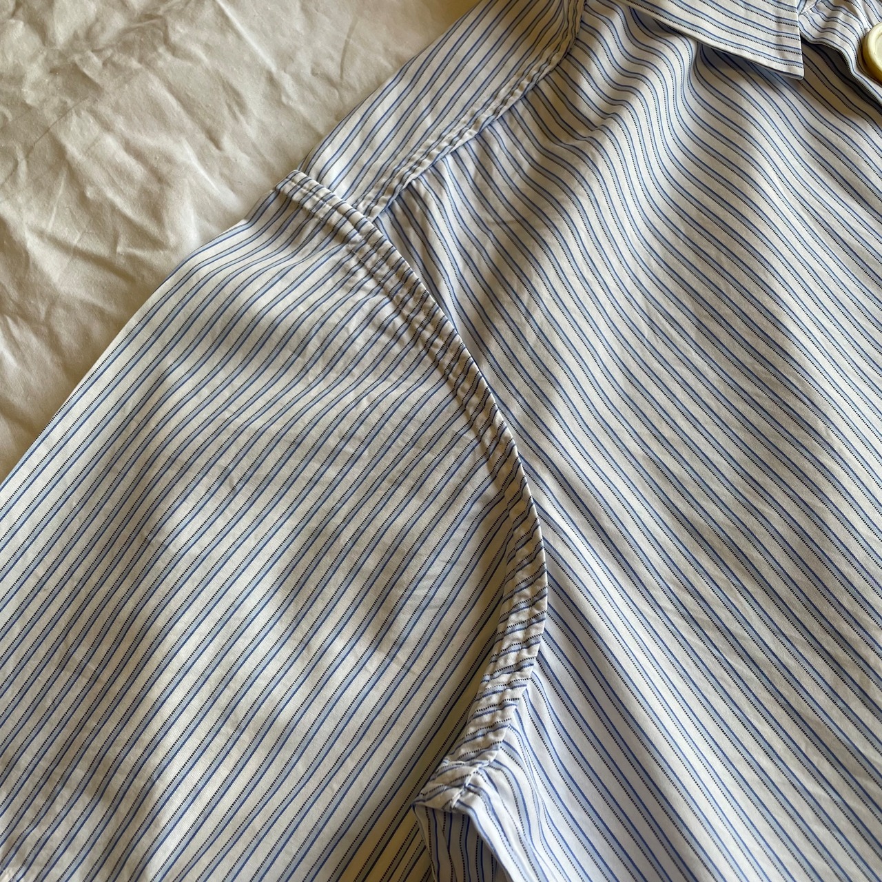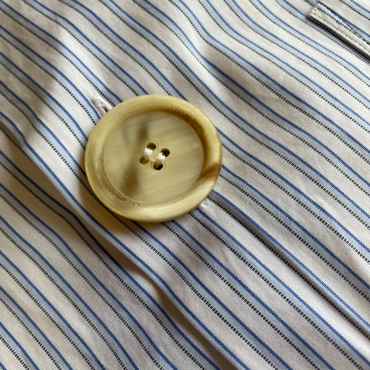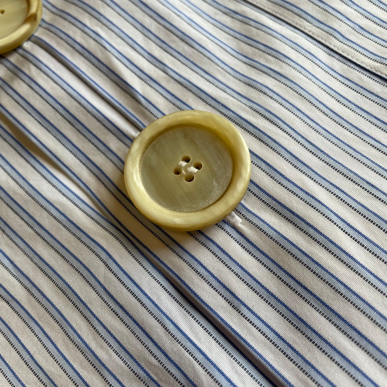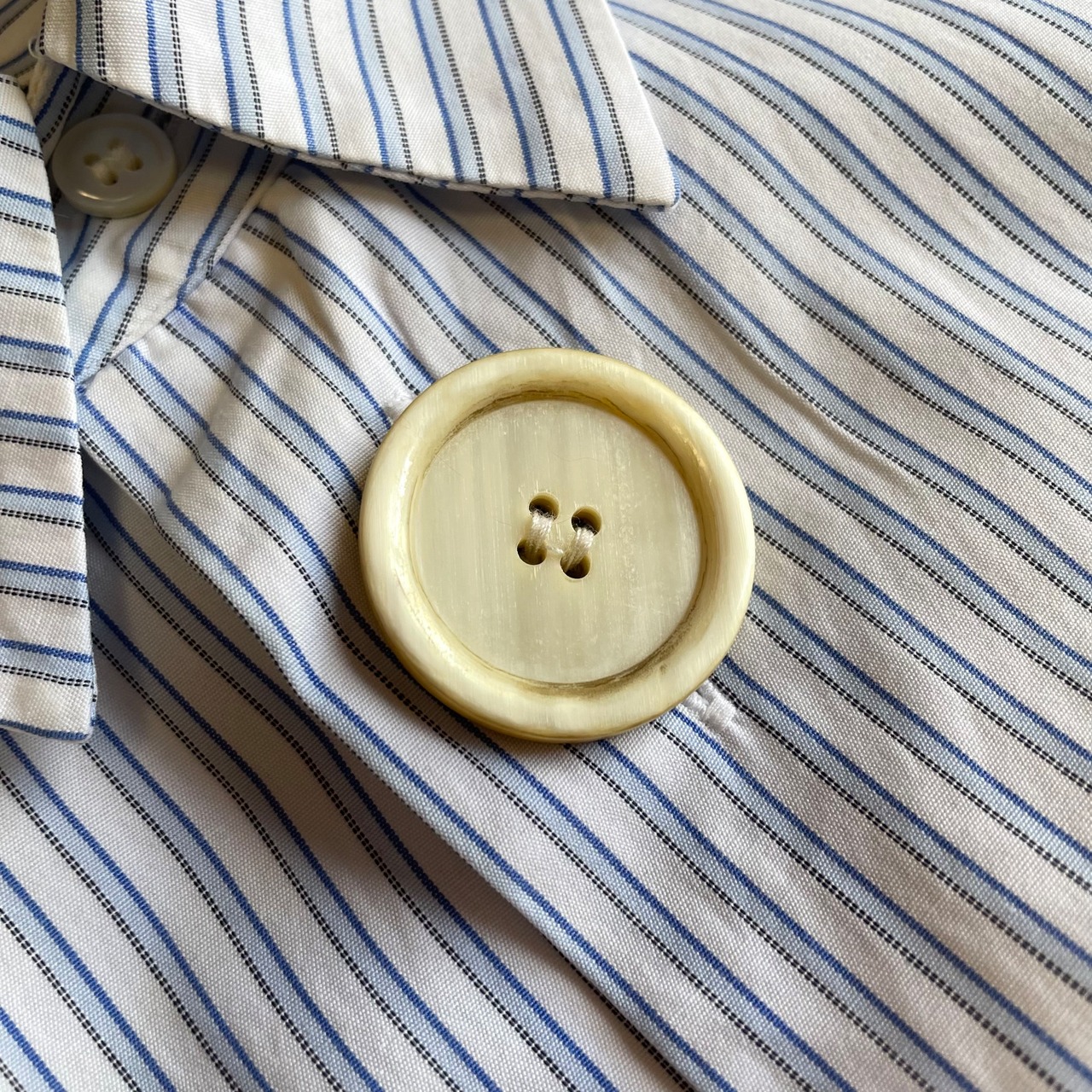 ボタンは天然素材で、均一ではない生成りやベージュの色味で高級感があります