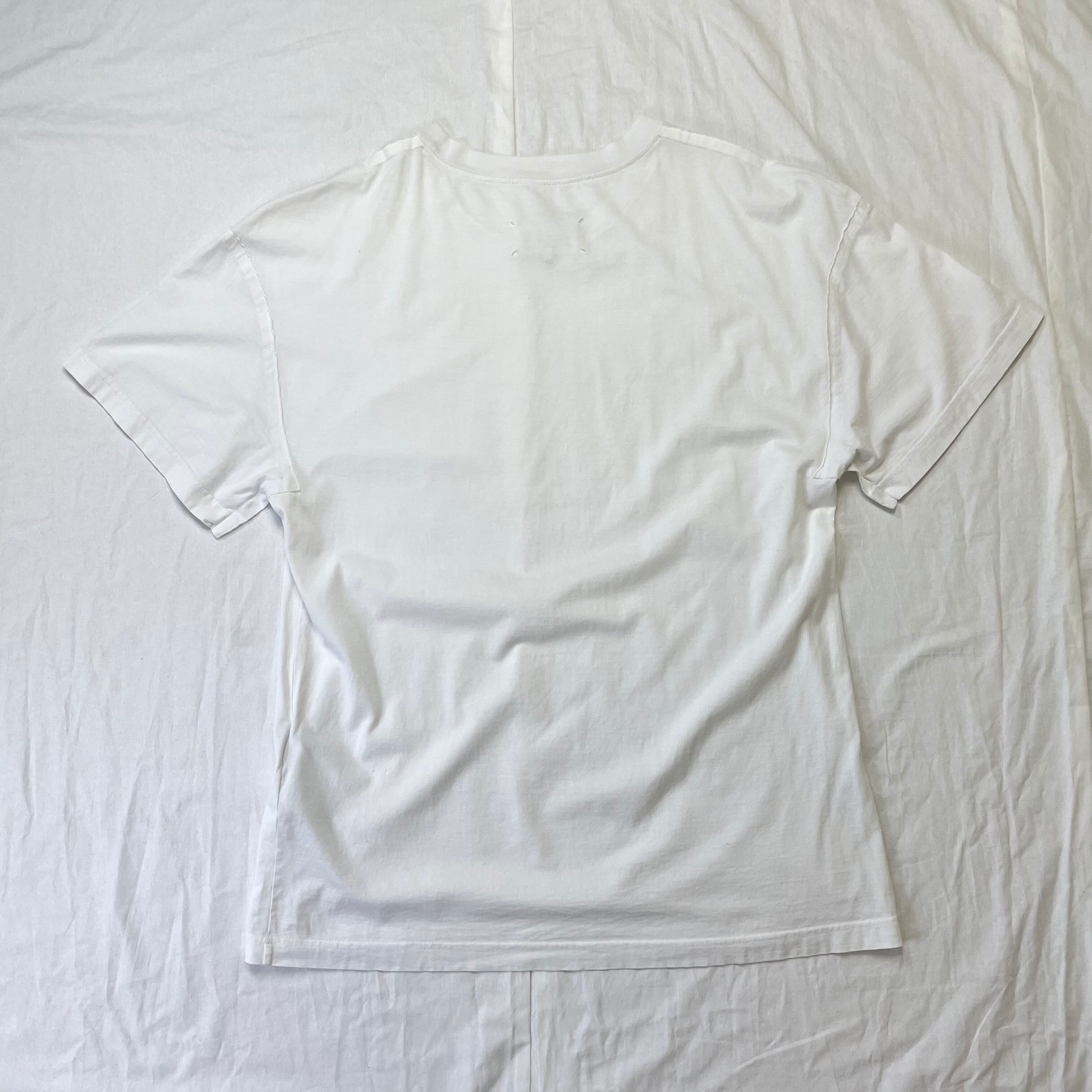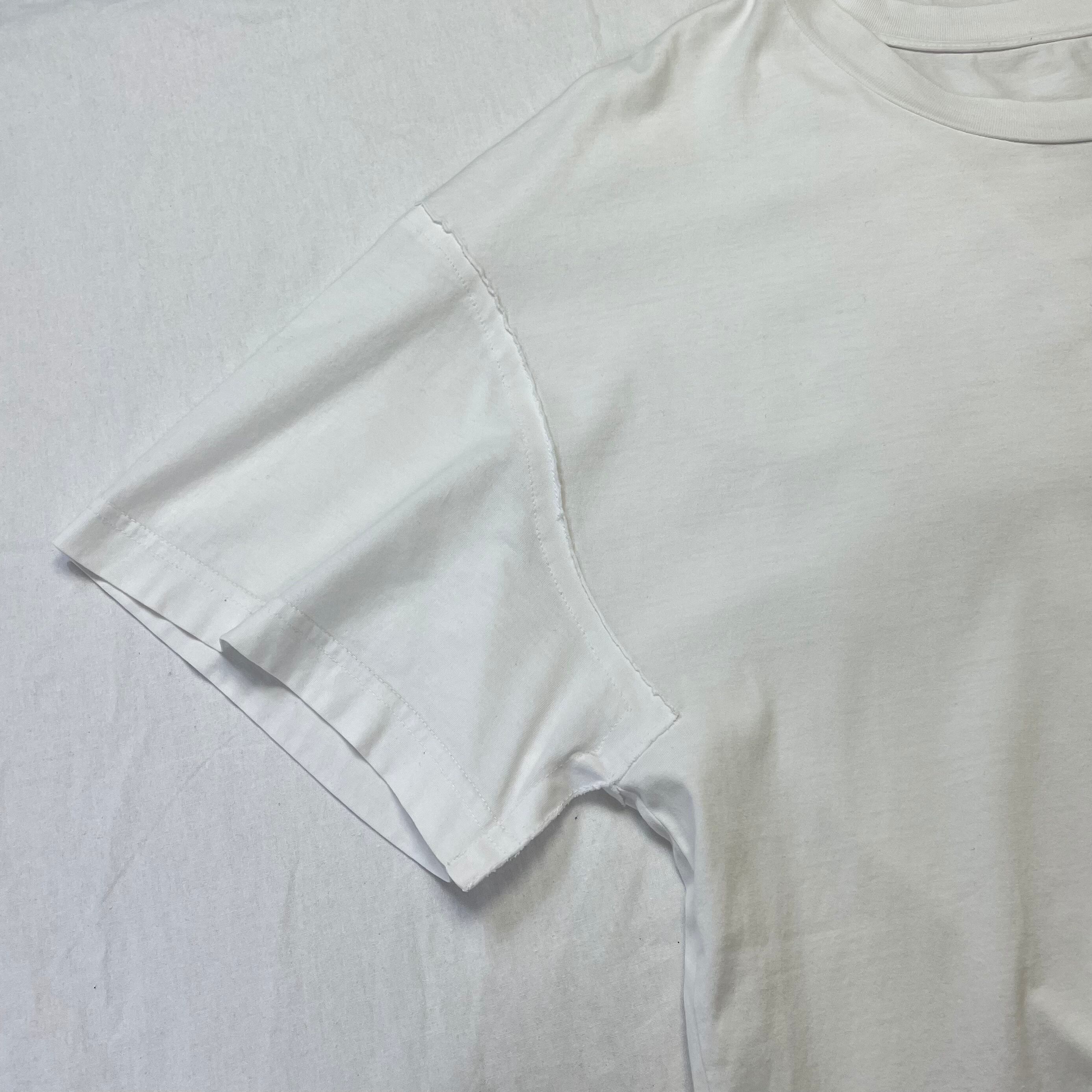 オーバーサイズなシンプルな白Tだけど袖がマルジェラらしく袖の生地が切りっぱなしで、見頃に覆い被さっているようなディテール