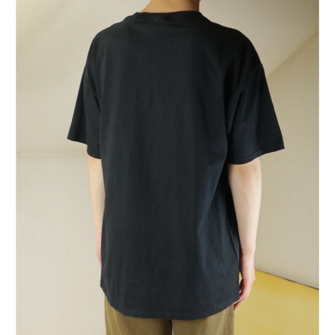 黒ボディにマルチカラーのプリントTシャツはこれからの季節にパンツや靴で色を拾えば、それだけで様になるのでおすすめ