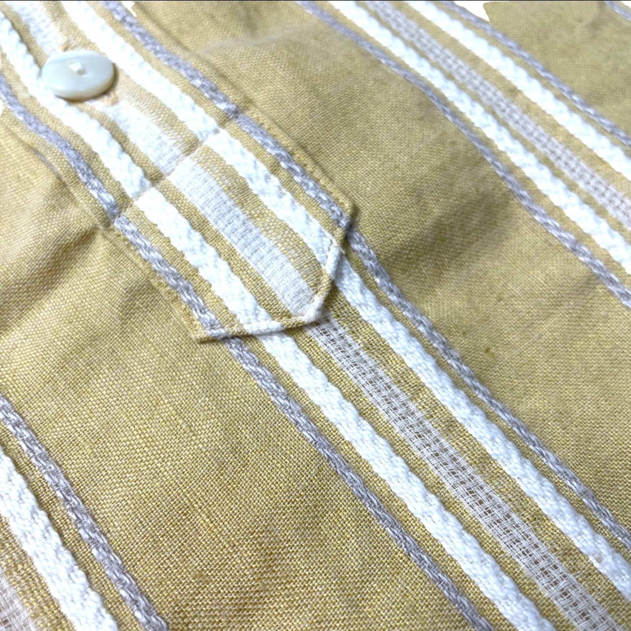 凹凸感のあるストライプのグランパシャツっぽい形