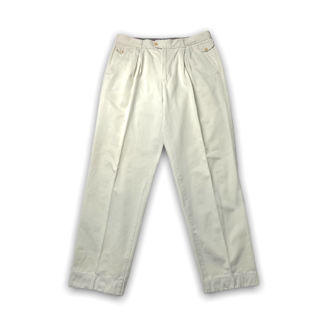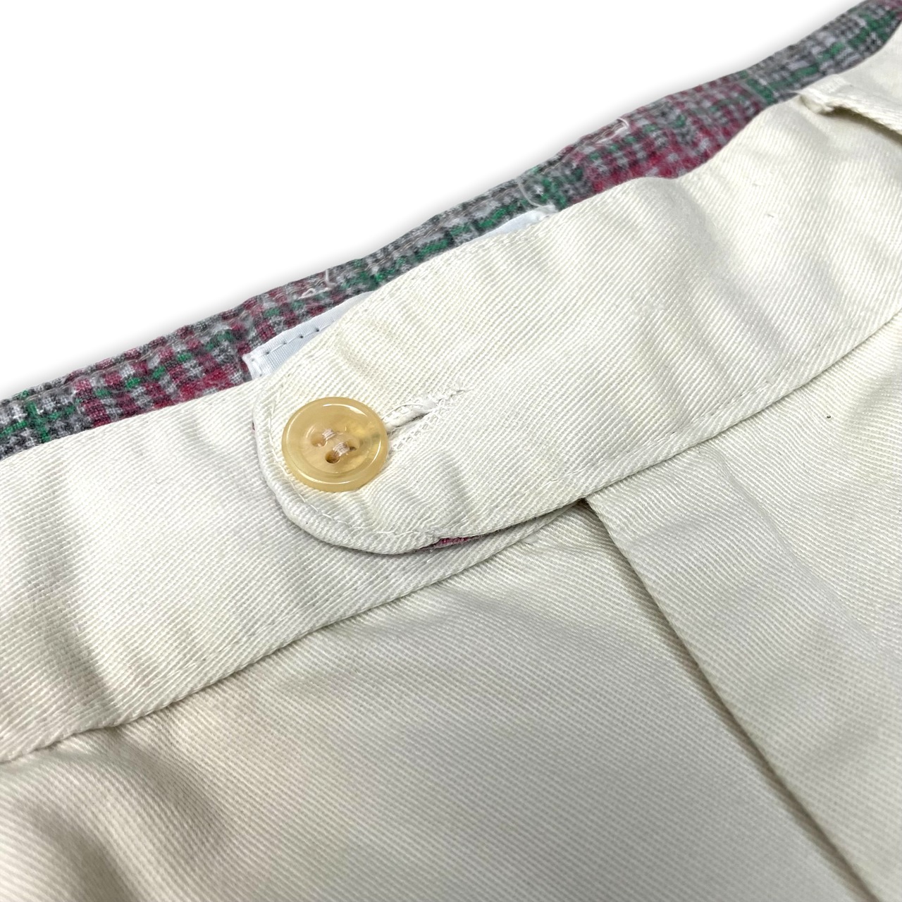 コインポケットにボタンで留められるフラップがついたチノスラックス