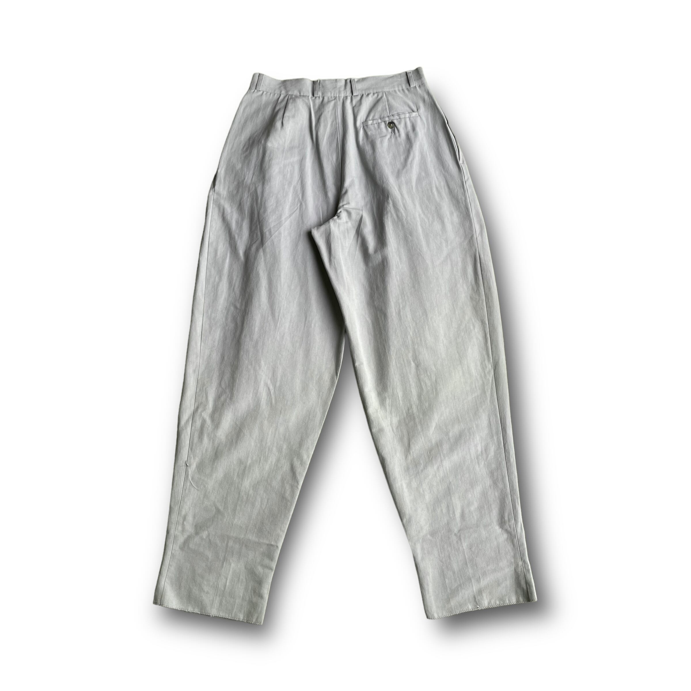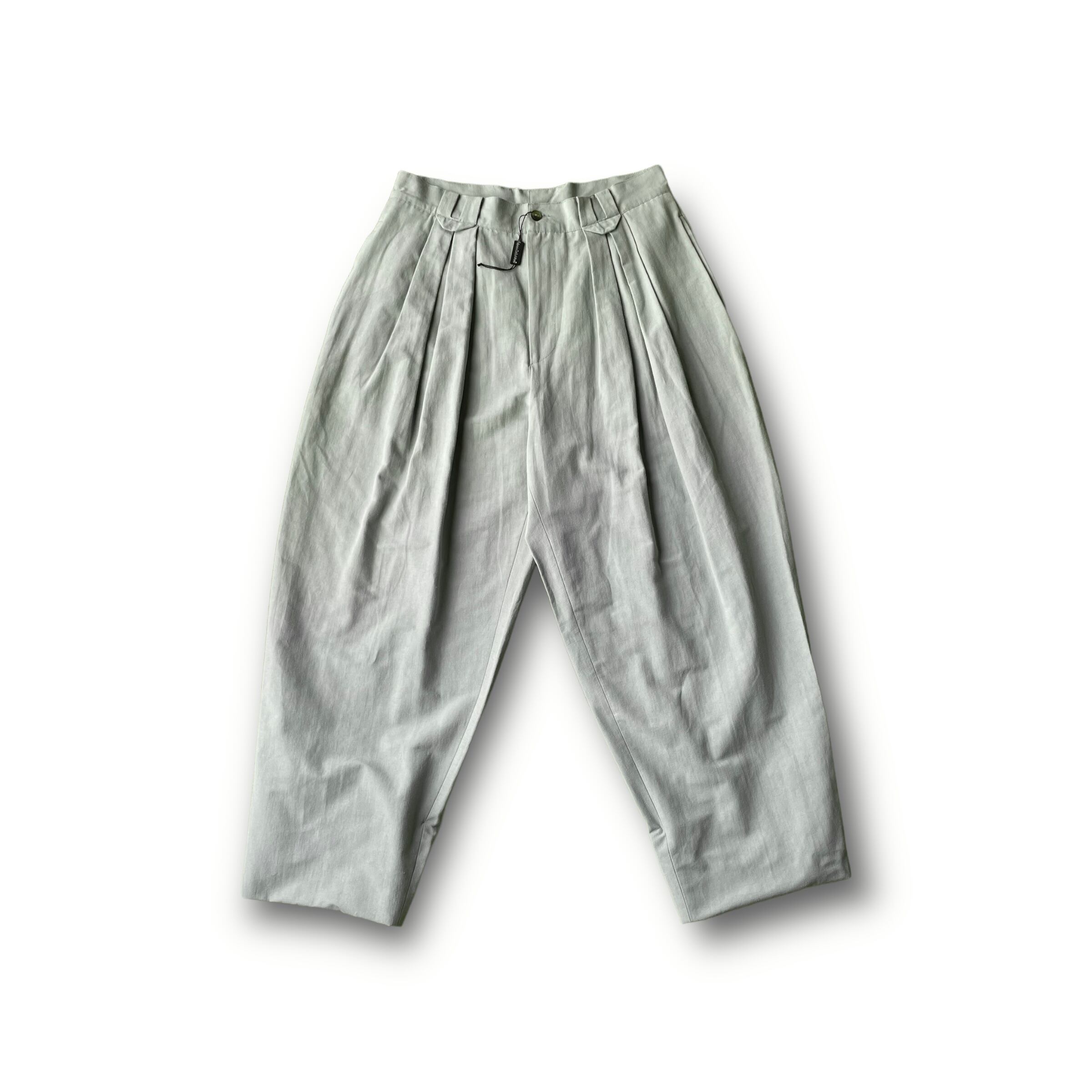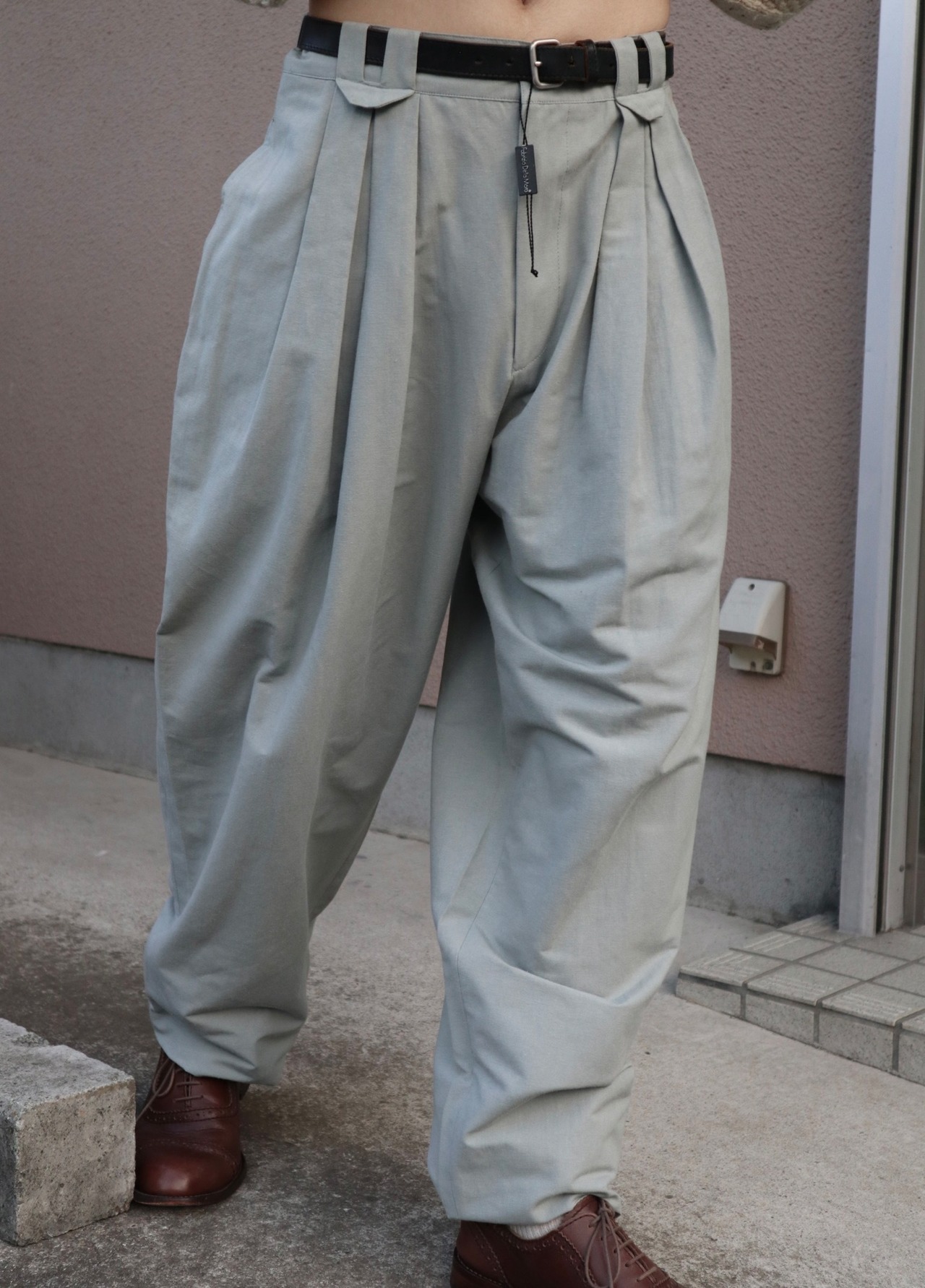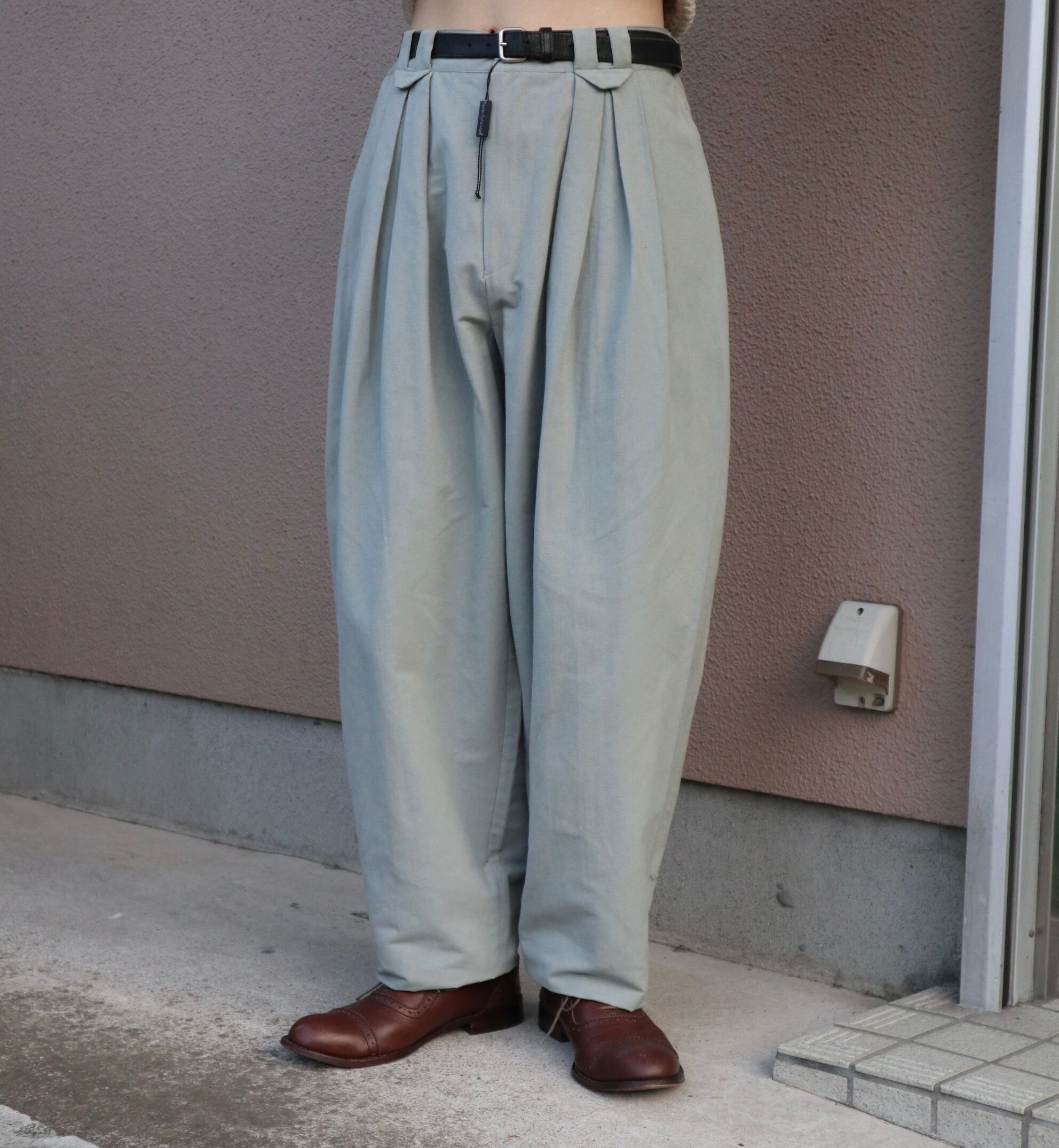 ウエストが大きめですが、わざとブカブカなウエストをベルトで縛って履くと、その分腰回りに生地があまり、ゆとりができて綺麗なシルエットになるんです