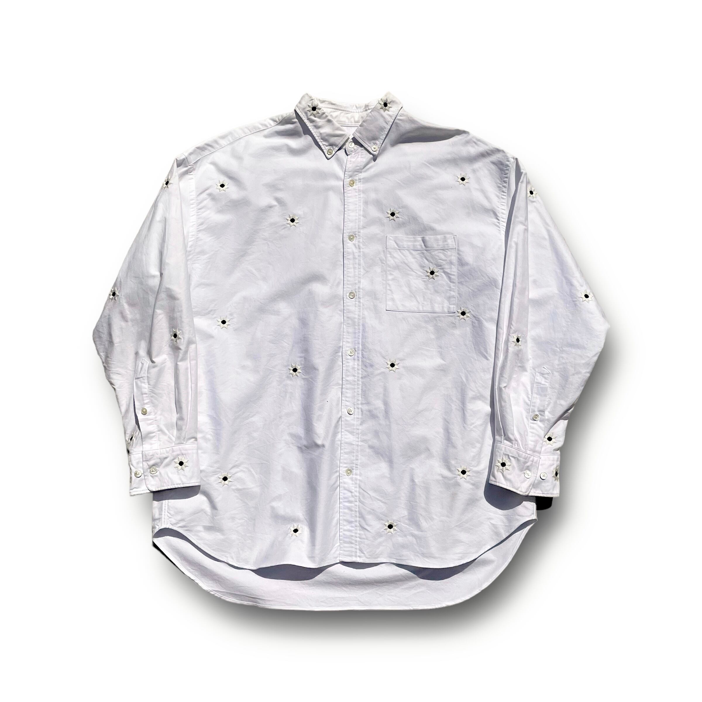 フラワー刺繍を生地に直接叩き込んだビッグシルエットのボタンダウンシャツ