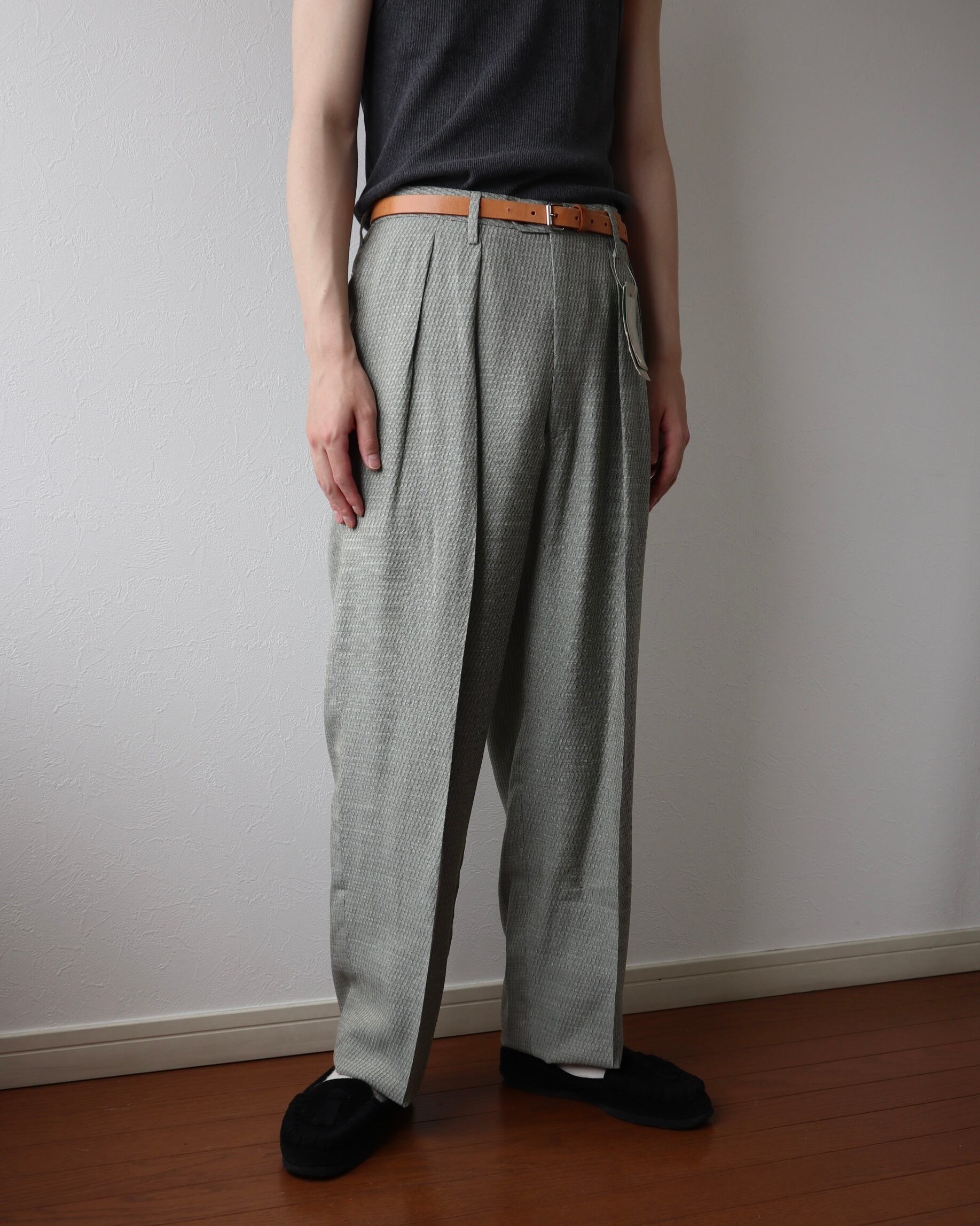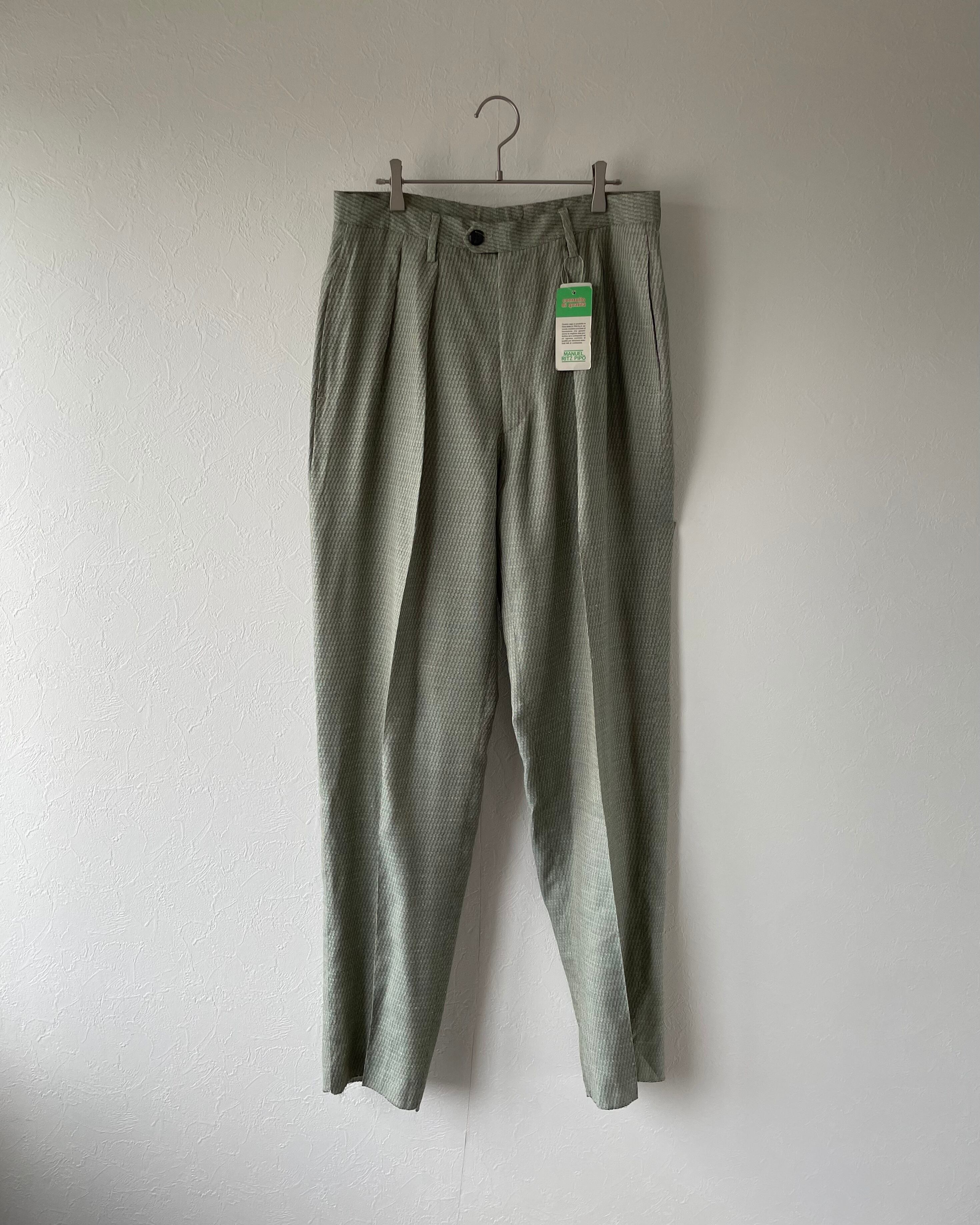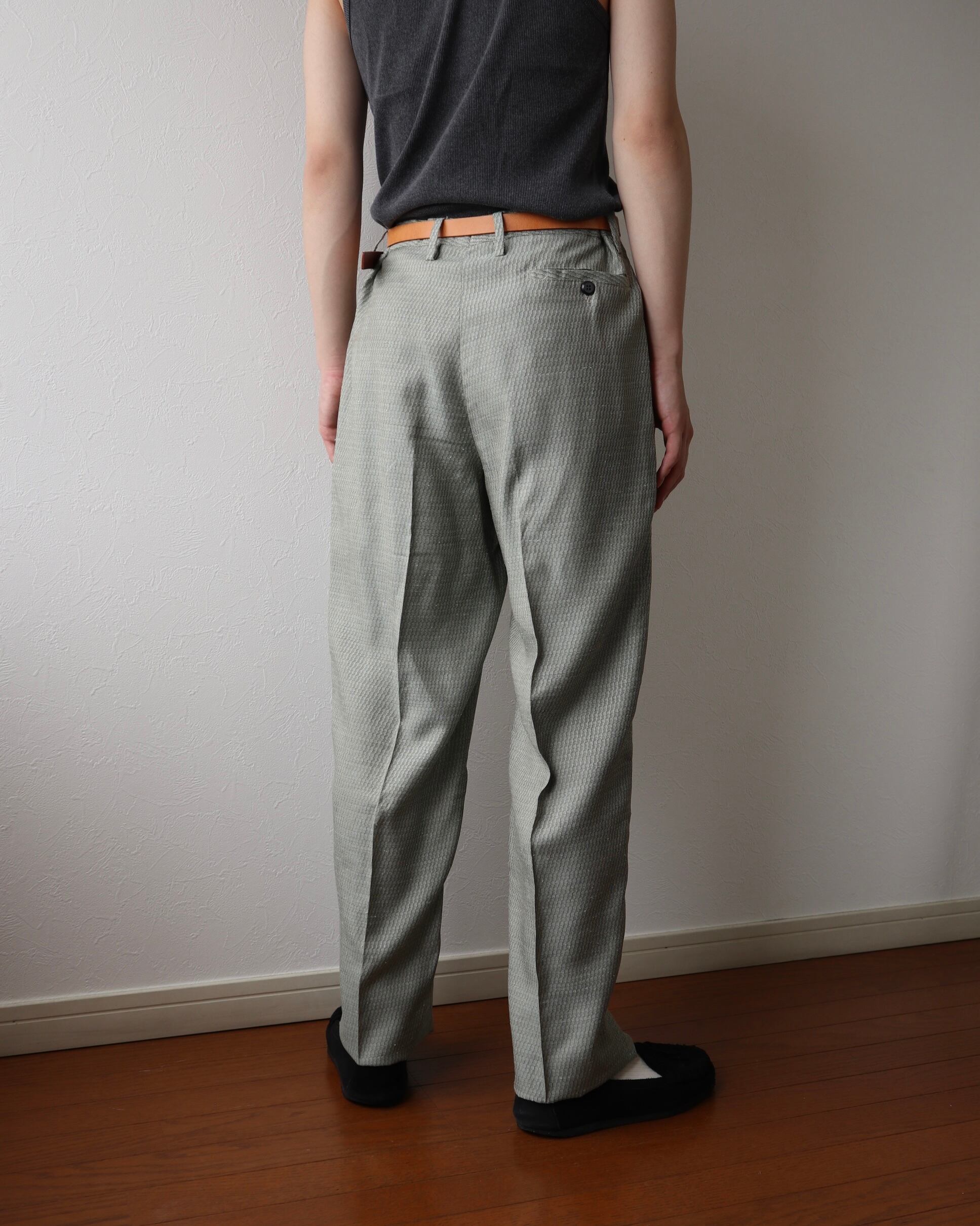 一見無地のスラックスですが、近くで見ると立体感のある柄が浮かび上がってくるような、いい生地してます