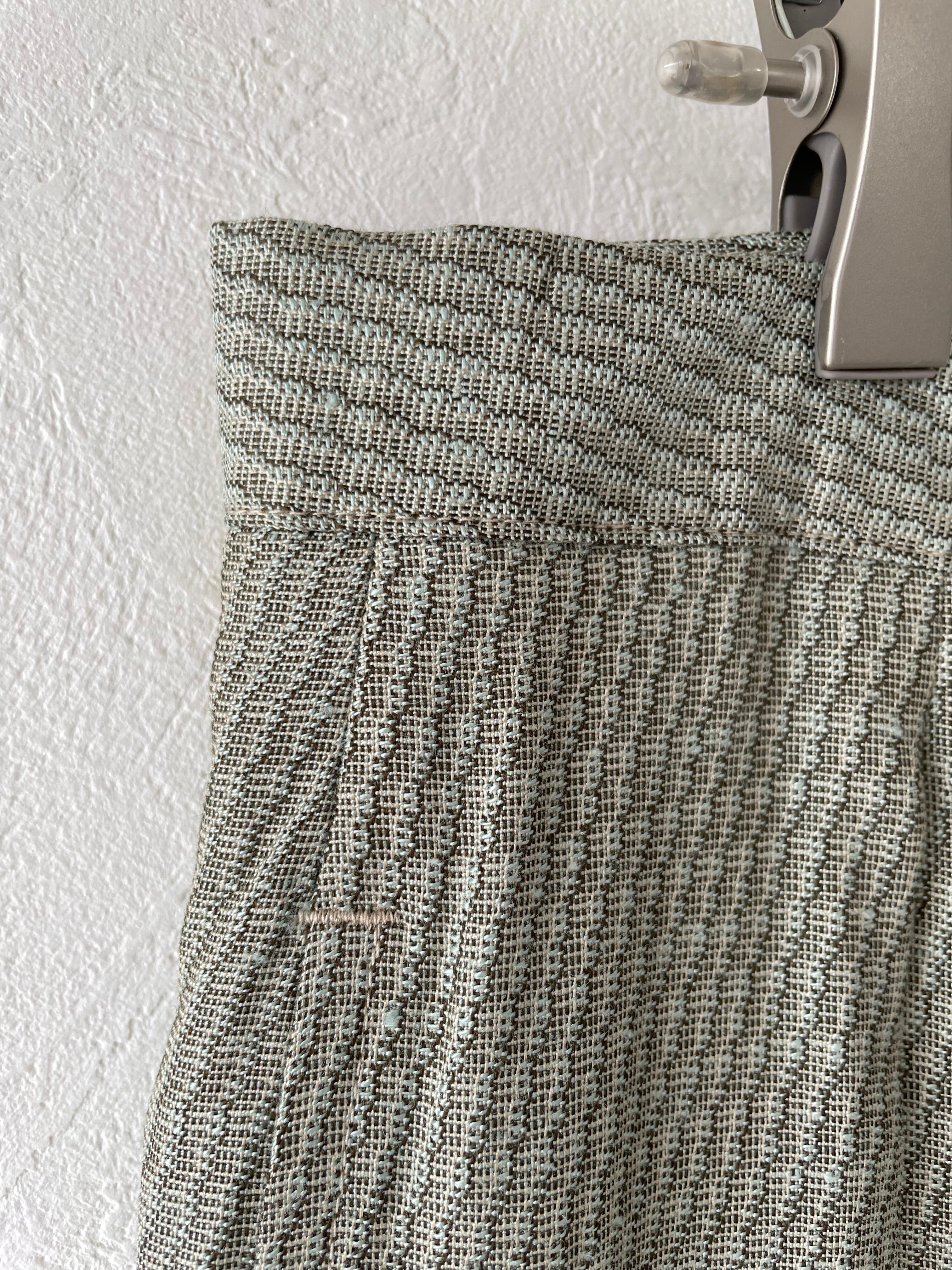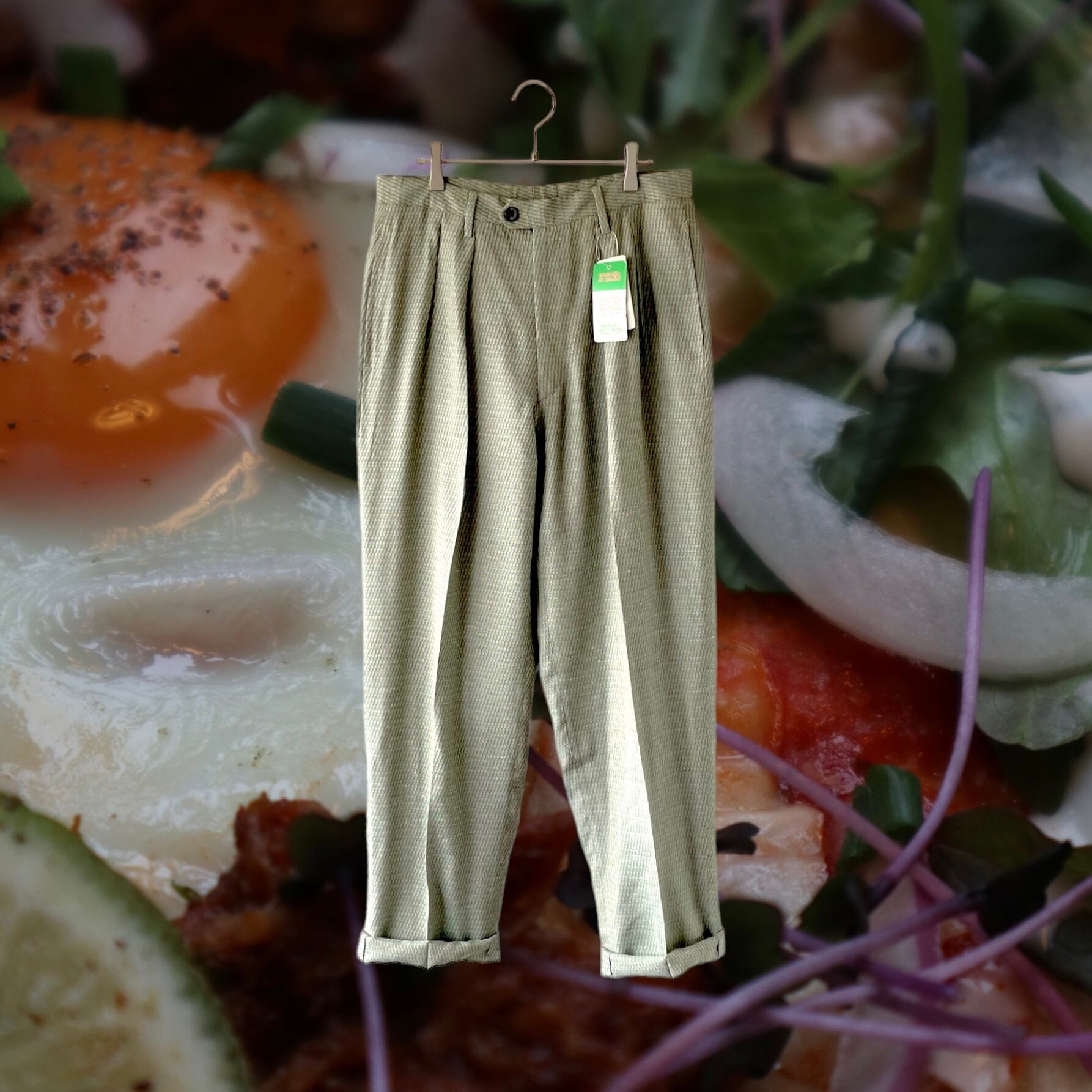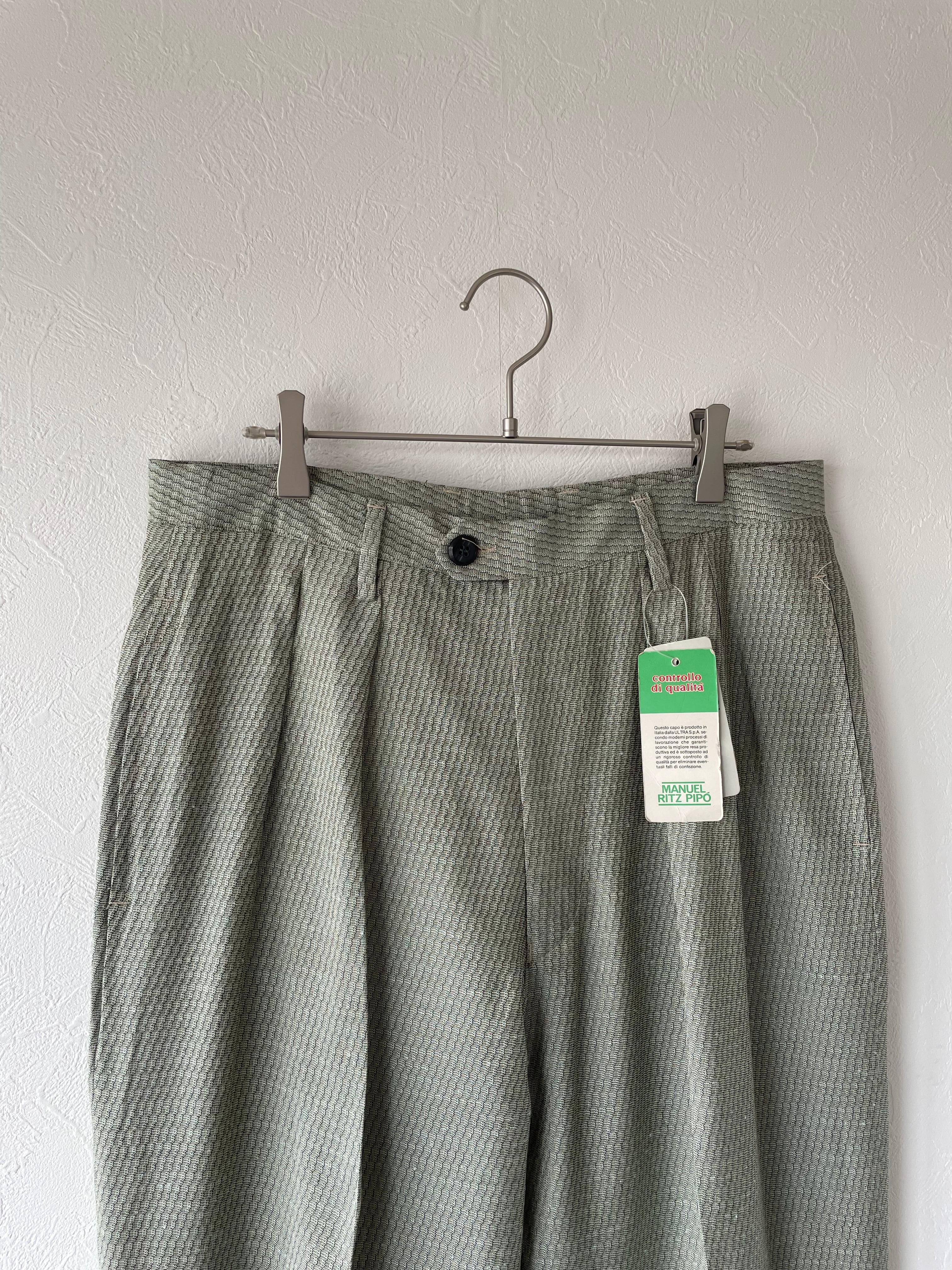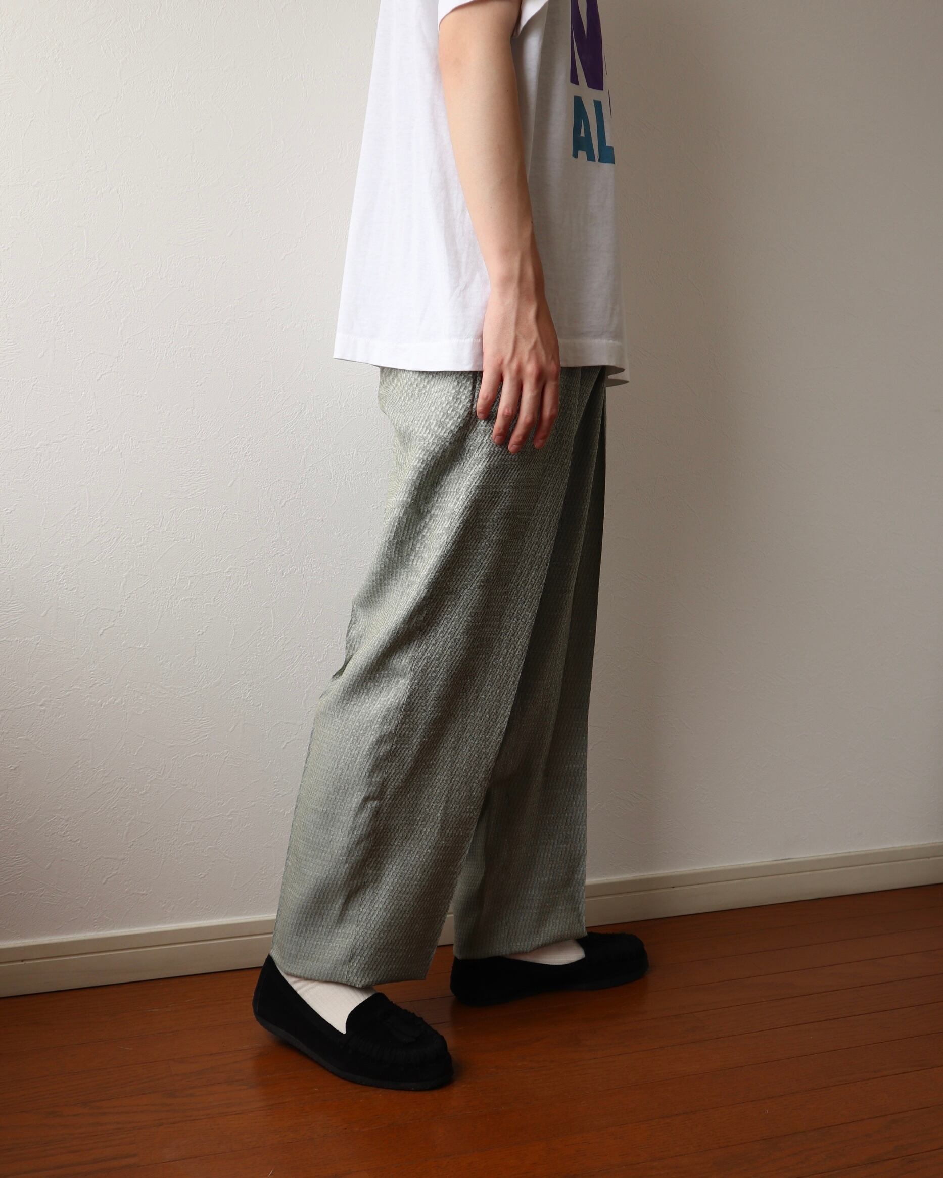 一見無地のスラックスですが、近くで見ると立体感のある柄が浮かび上がってくるような、いい生地してます