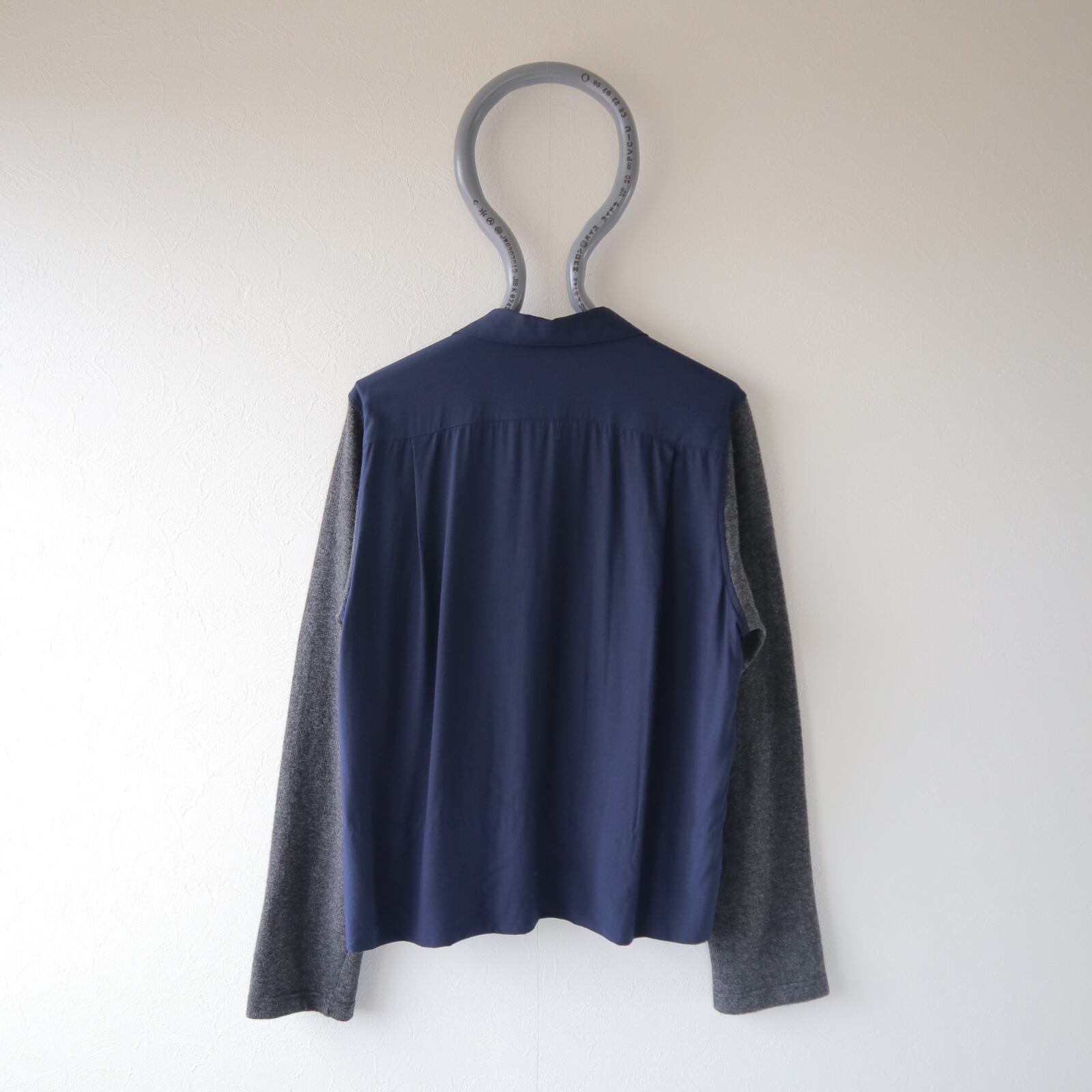 レーヨンとニットという、シャレ感たっぷりな素材での切り替えですが、色味がどこかいなたく真面目で、いいバランス感です