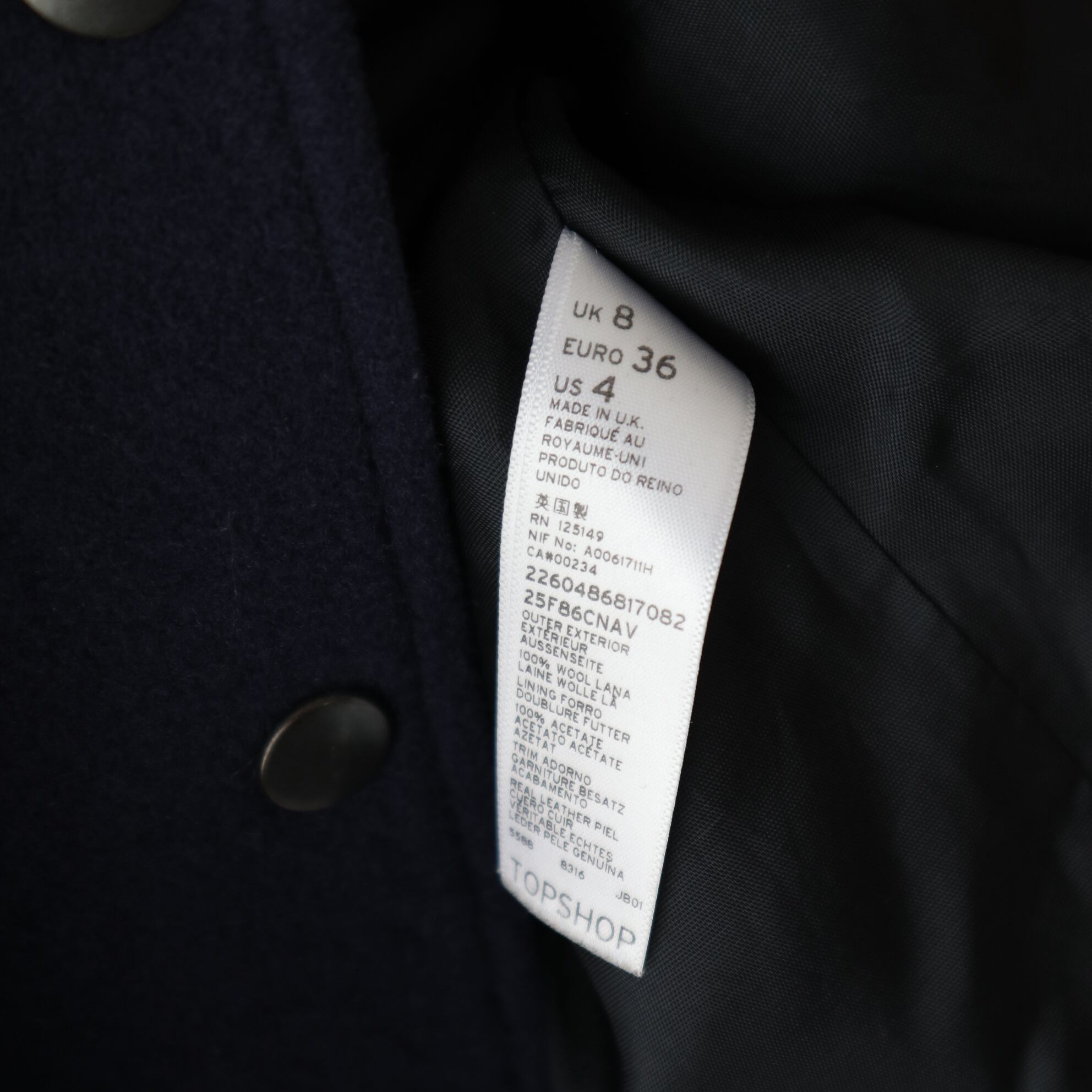 【素材】身頃:ウール100%、袖:レザー