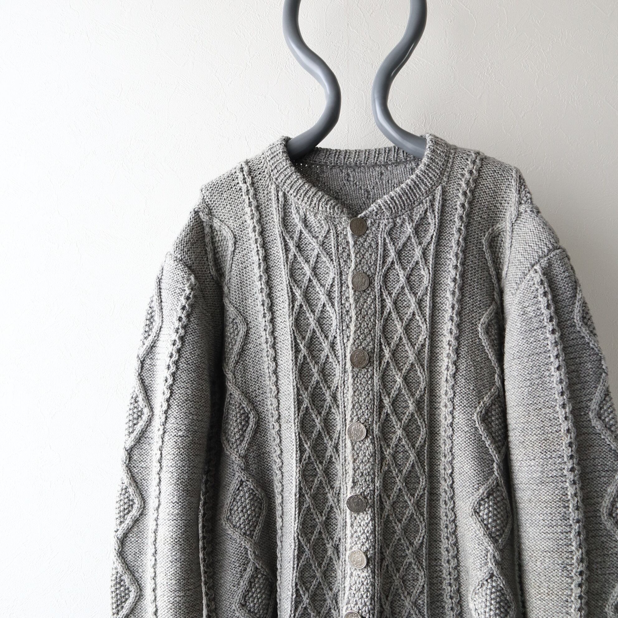 グレーカラーのチロリアン・カーディガン。チロリアン・カーディガンは、オーストリア付近のチロル地方で作られるカーディガンです。