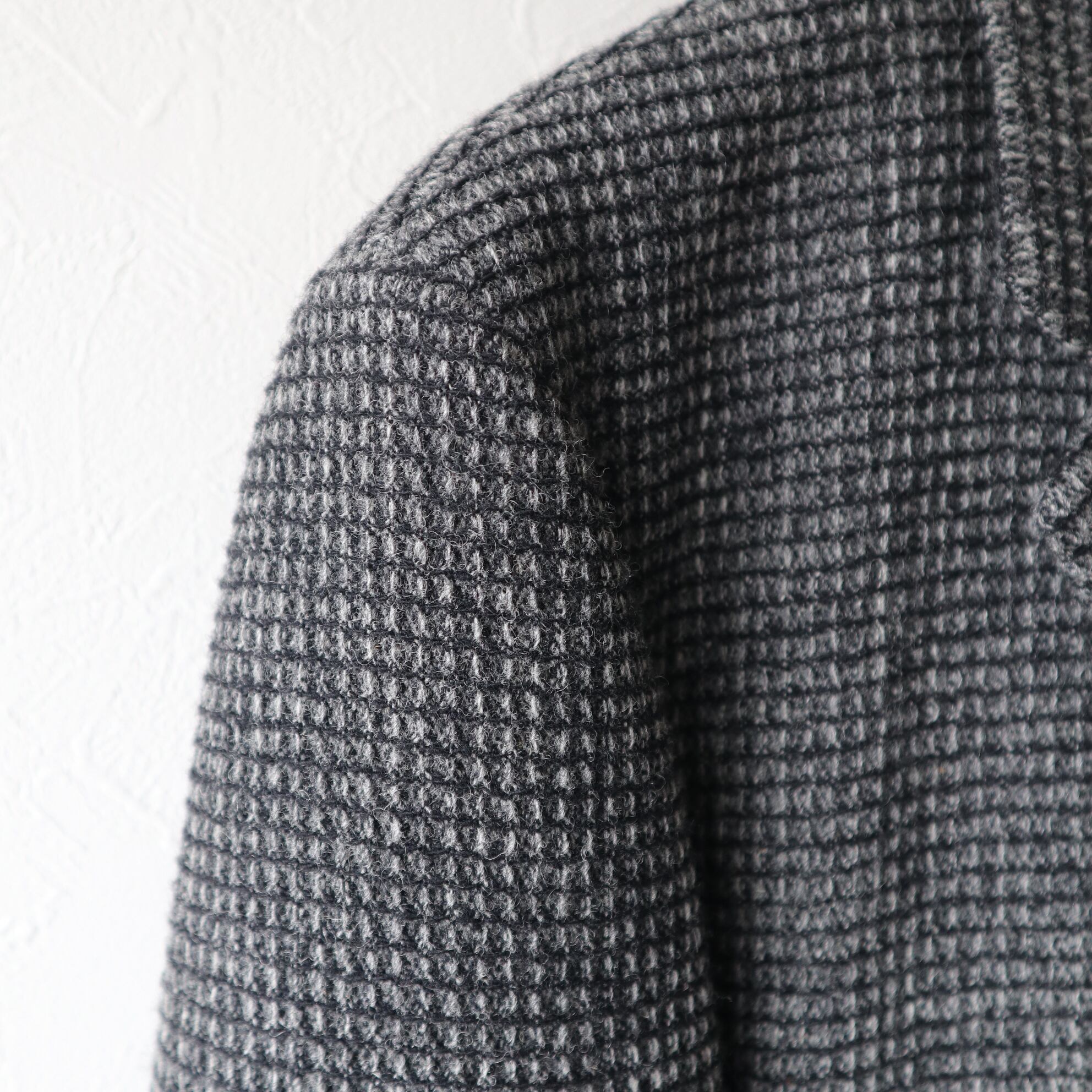 ダークグレー、グレー、ライトグレーといった、様々な種類のグレーの糸で凹凸が作られたワッフルツイード。