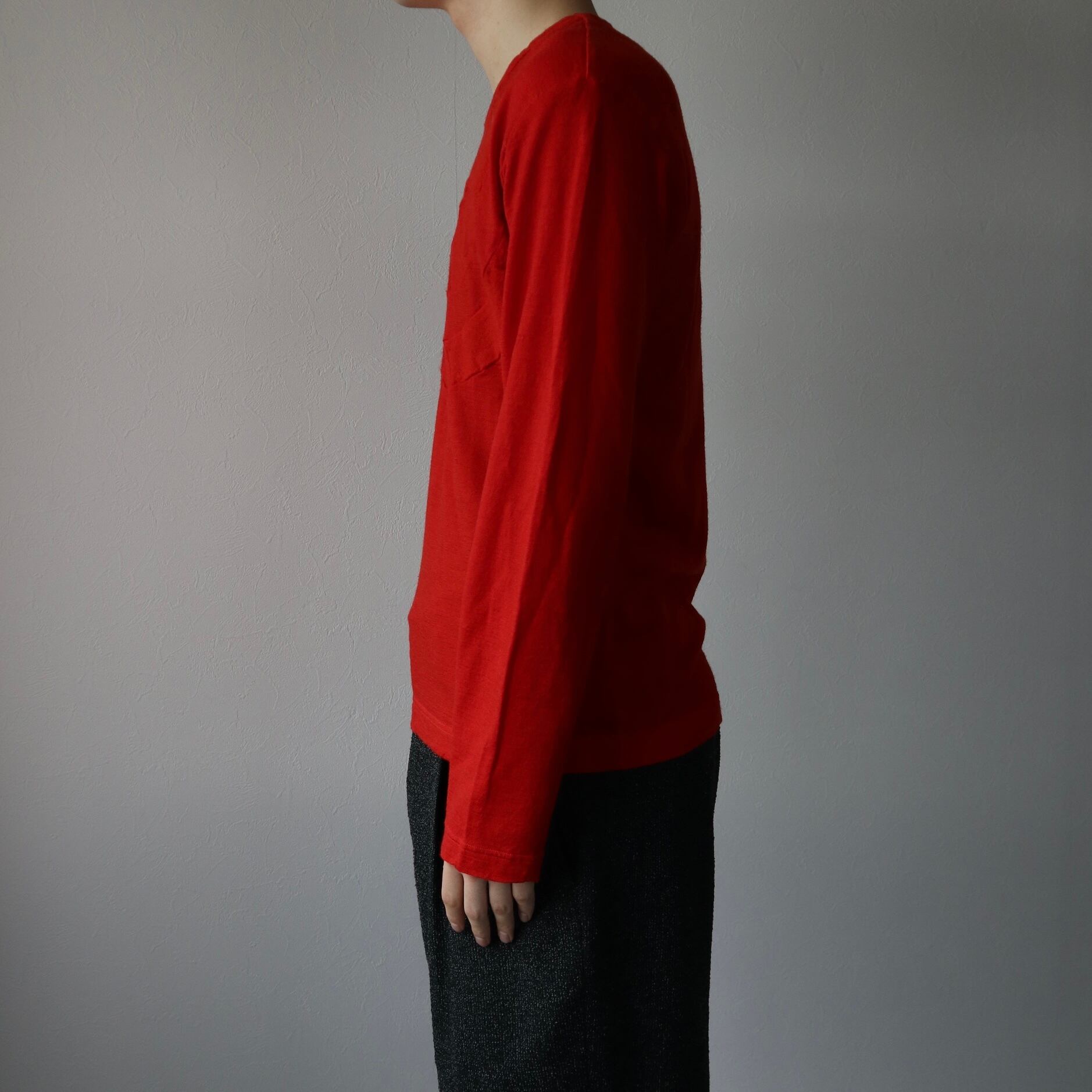 作りは、コットンのカットソーのような作りで、ニットとロンTの狭間のような、中途半端な感じが良い違和感を生んでます