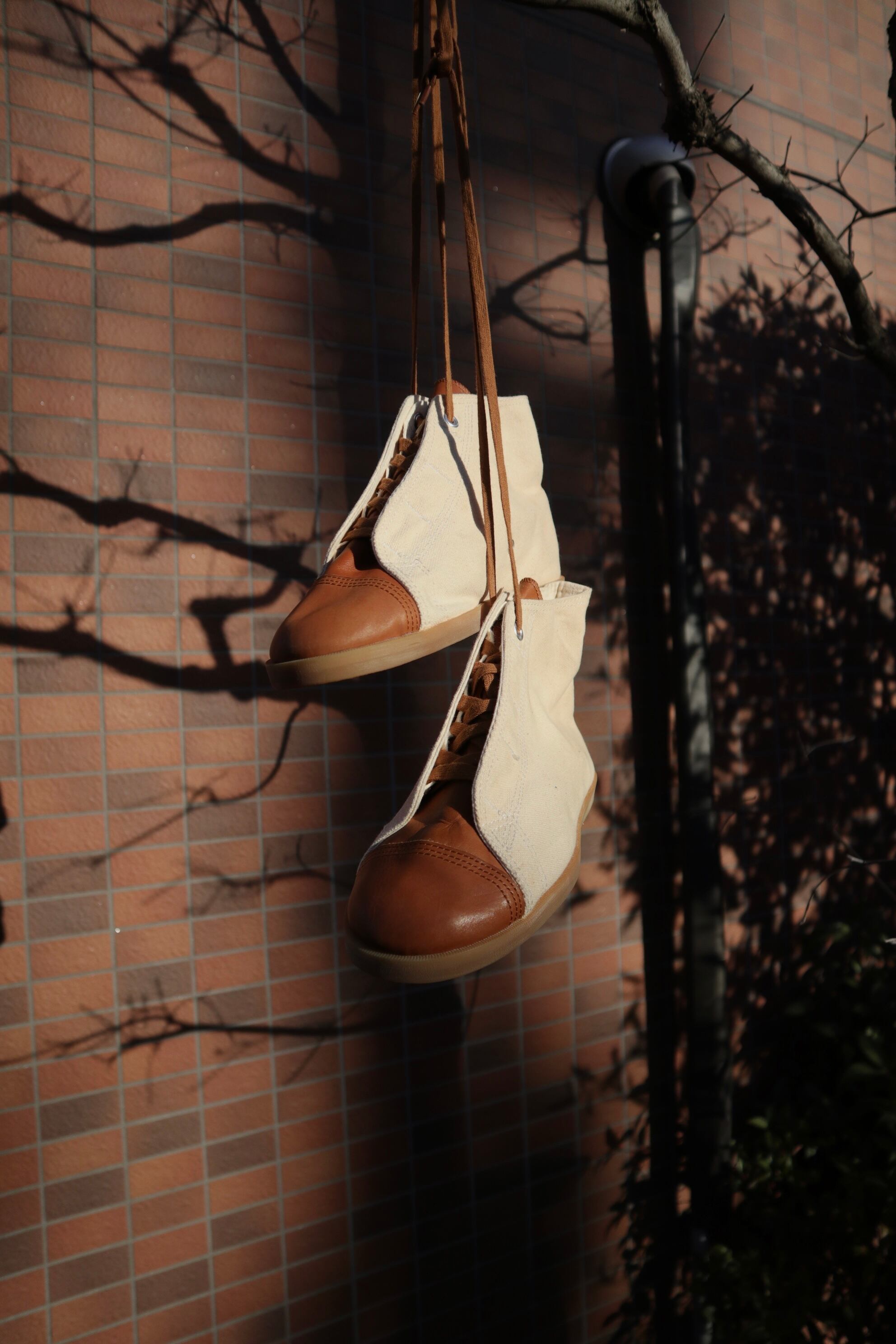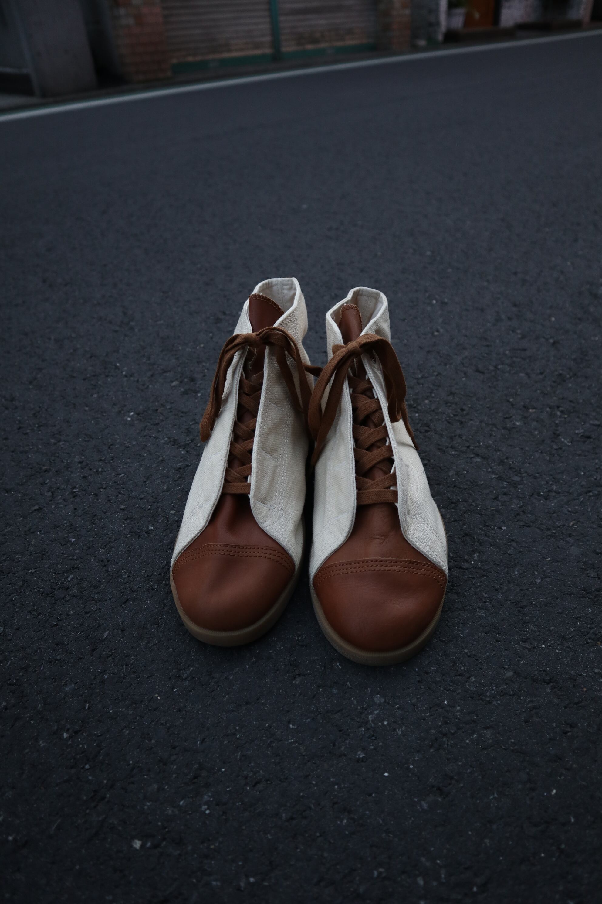 アッパーのつま先部分、ヒールのライン以外はキャンバス地、つま先部分はリアルレザー
