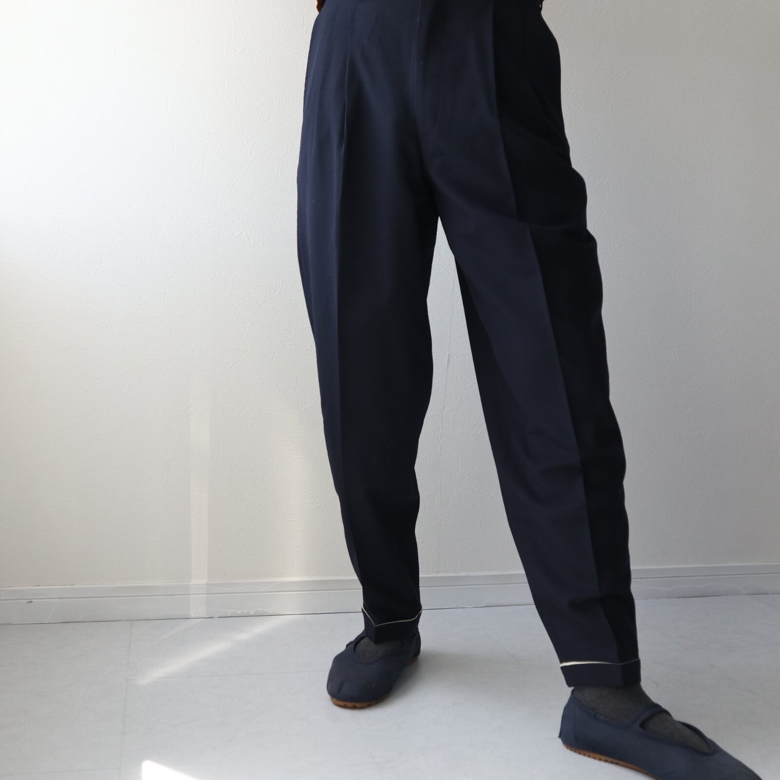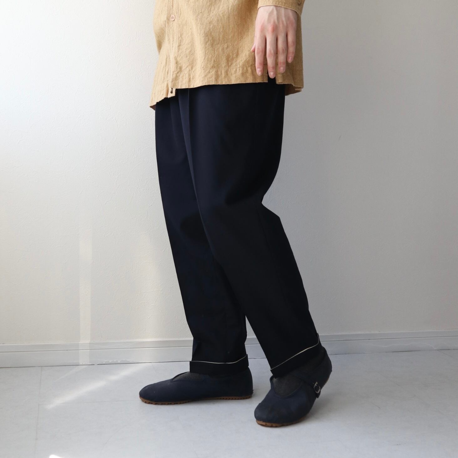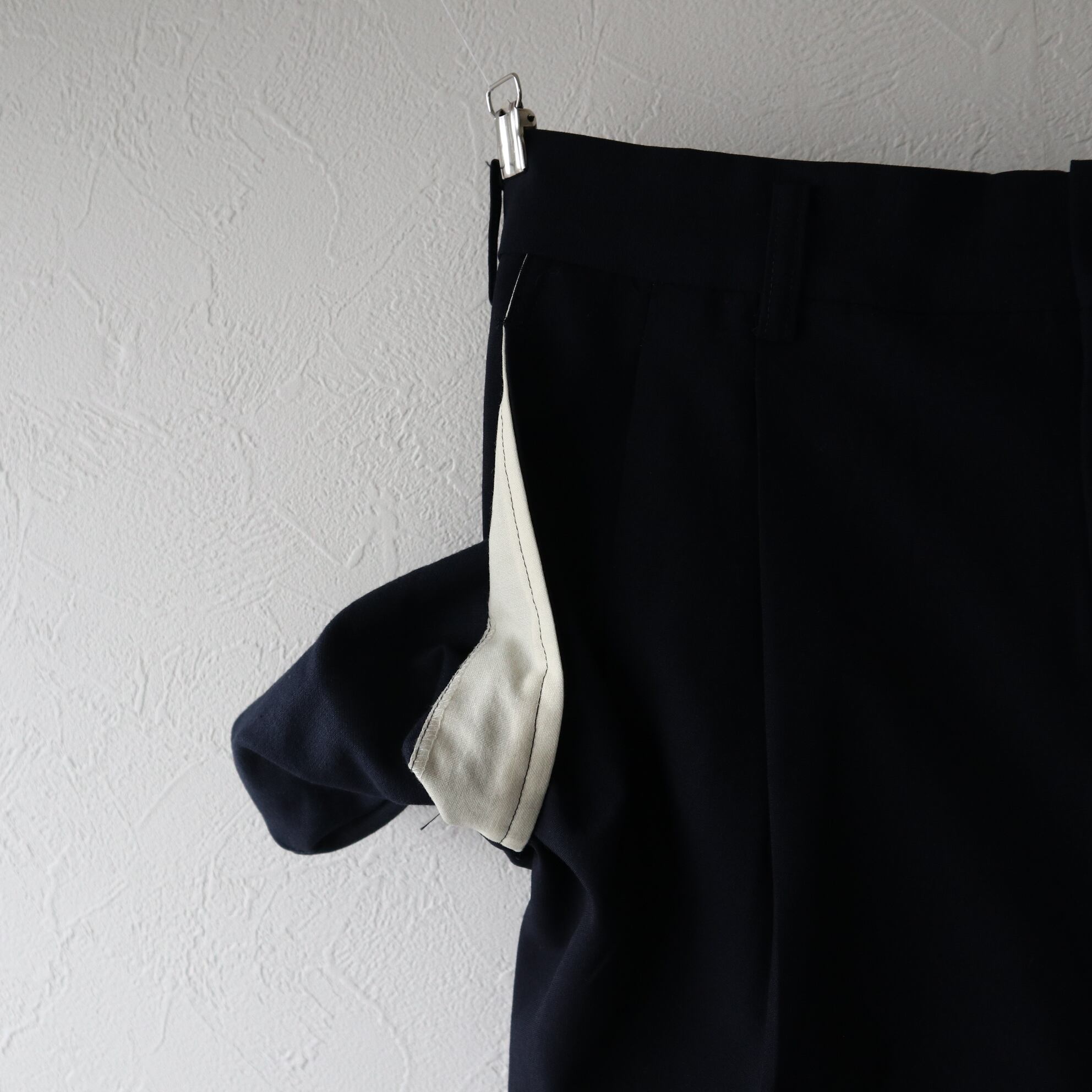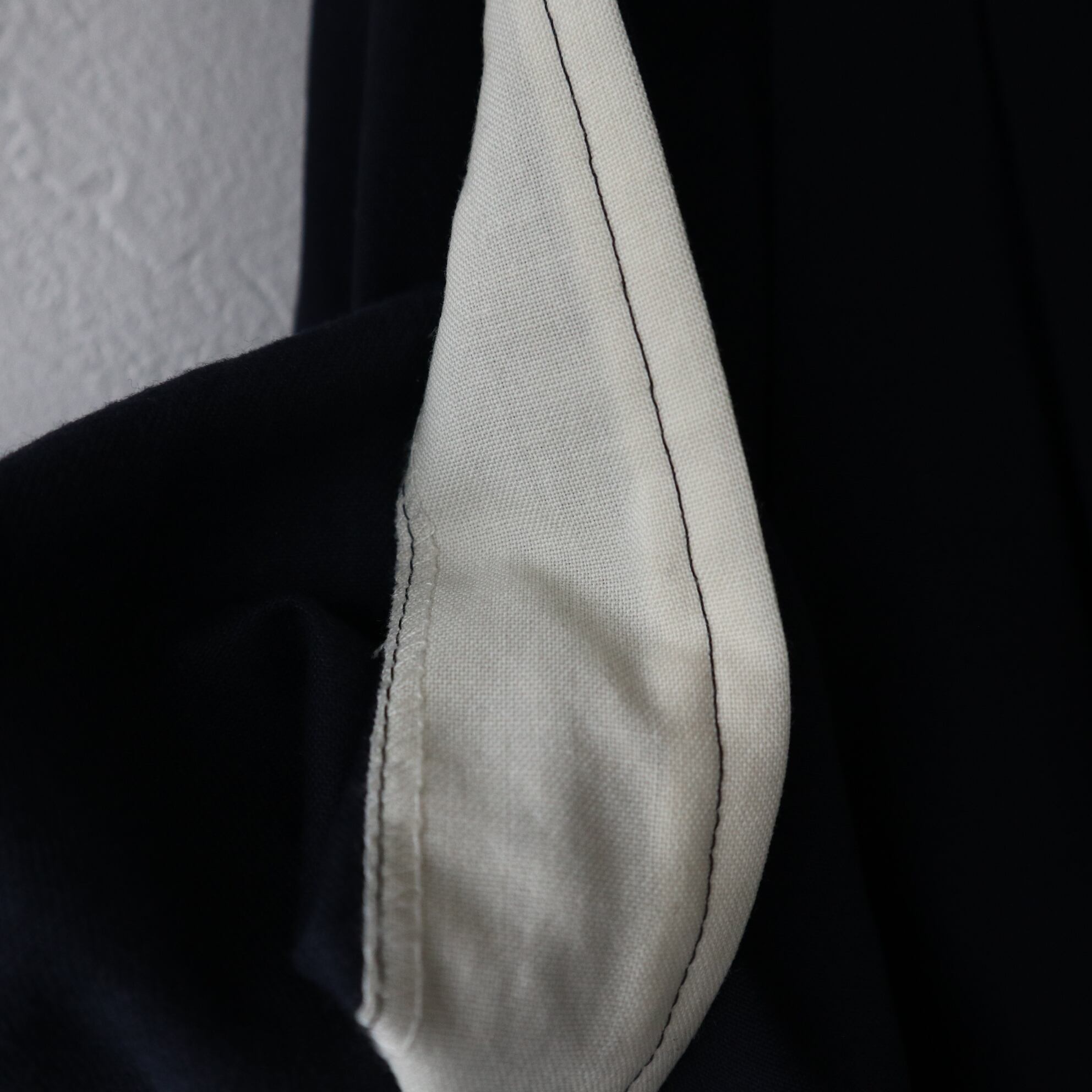 サイドのスラッシュポケット、裾のダブルの折り返し裏部分に、生成色の生地の切り替え