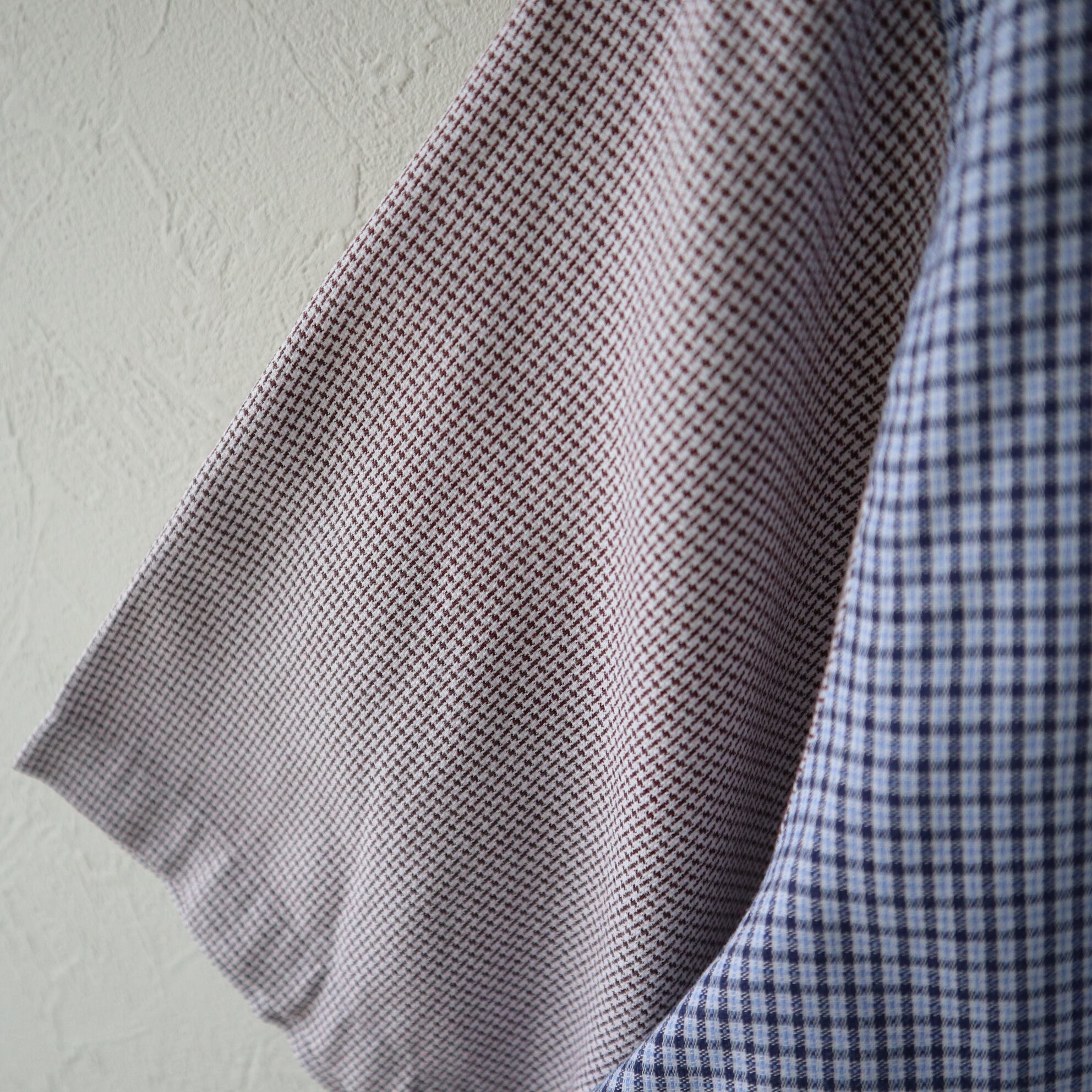 よく見る田中オムのブロードシャツと比べて、若干ハリがあって、若干ざらつきのある素材感です