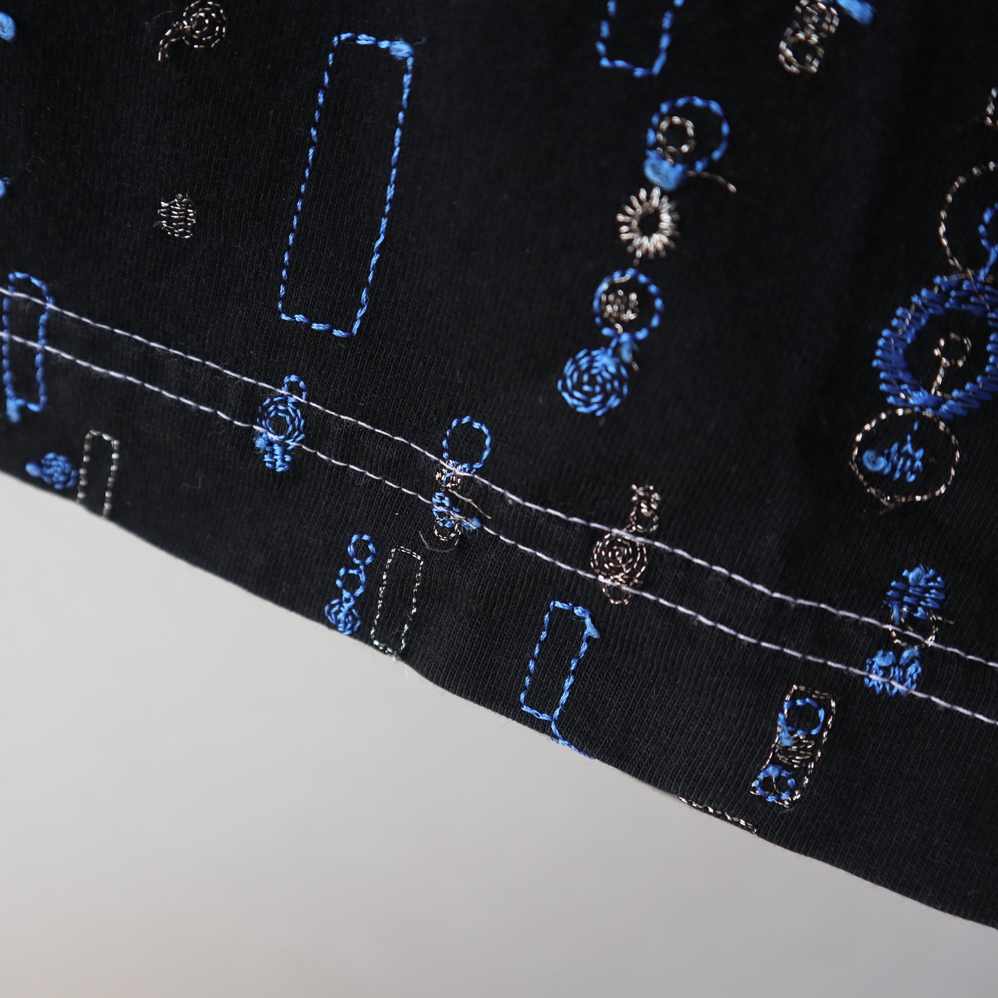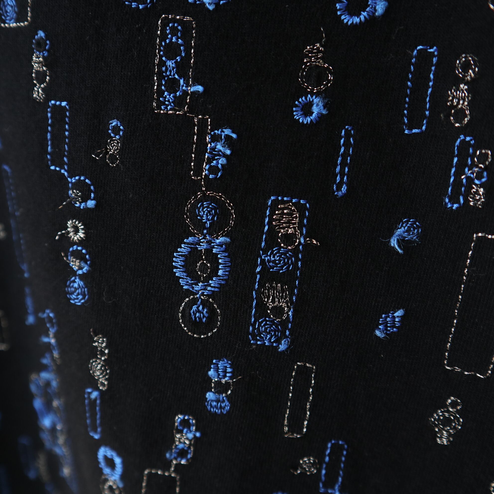 このTシャツの幾何学模様なメタリックな糸での刺繍は、そこからのモチーフでしょう