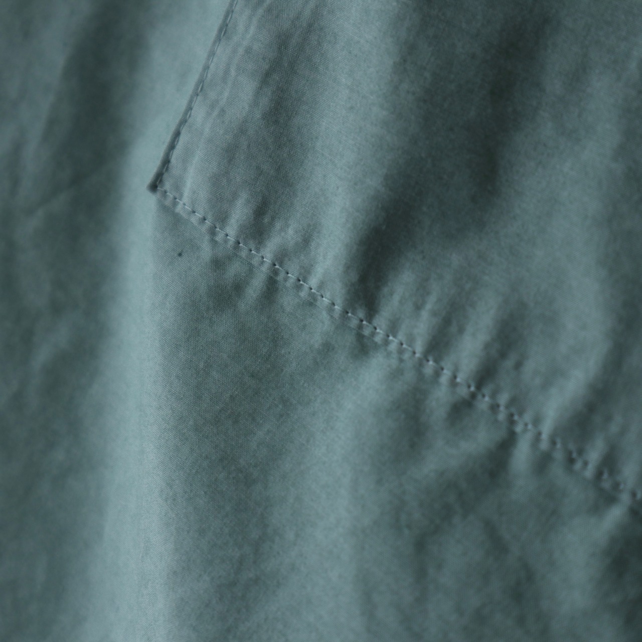 ポリエステル混の、薄手な、清涼感のある生地で、夏でもパンツに涼しい素材のフルレングスのパンツだったり、ショーツなどを合わせて、着用いただけそうです