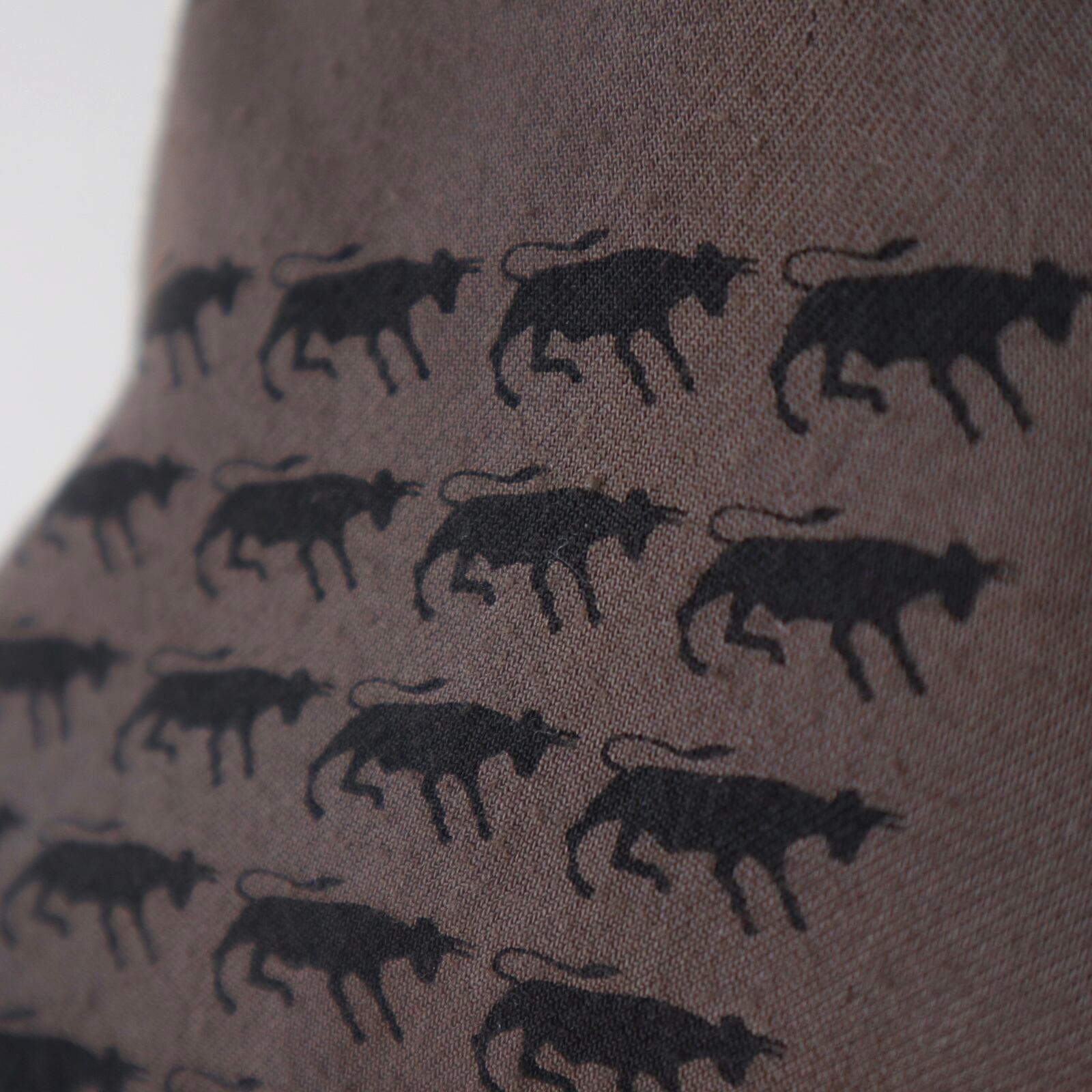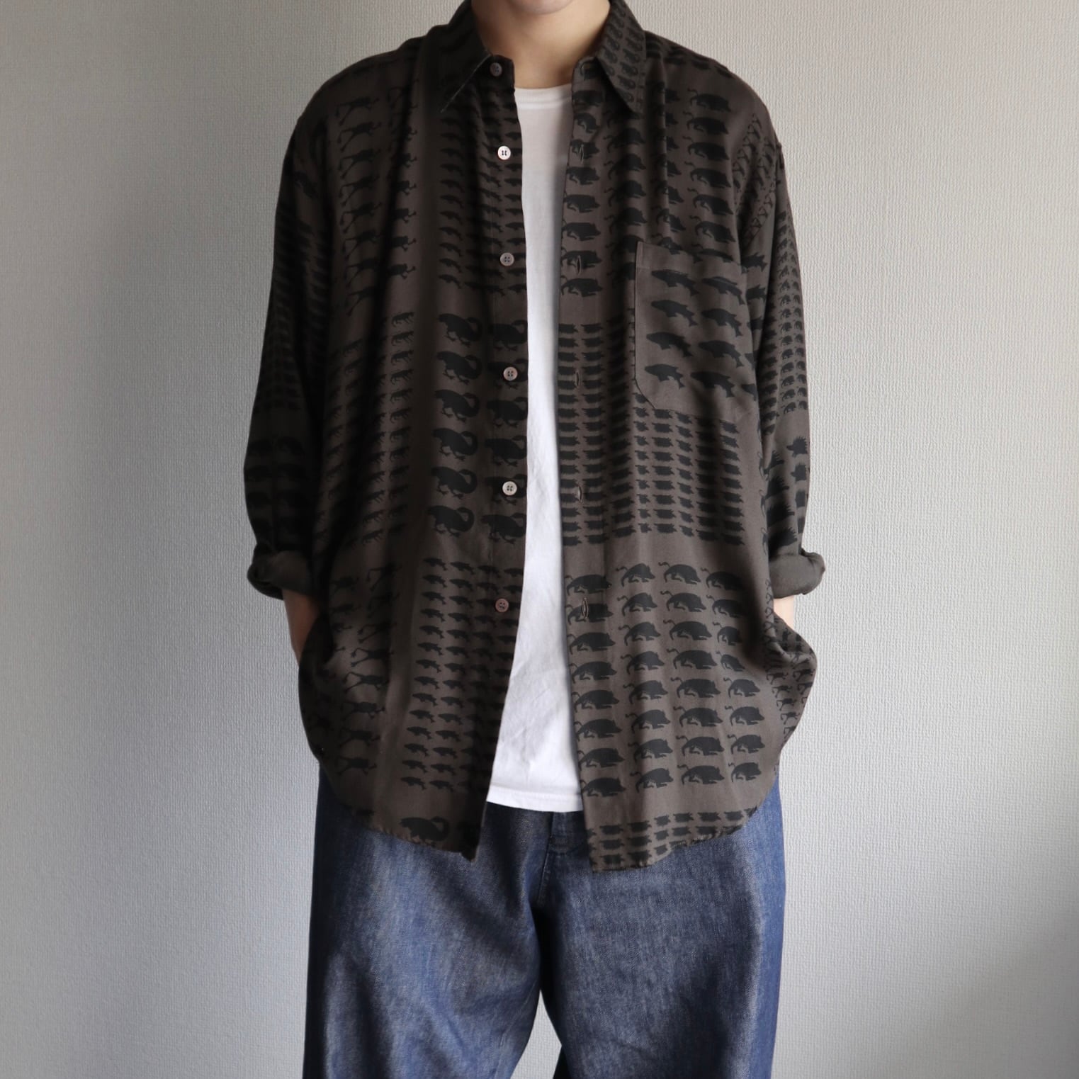ブラウンのレーヨン100%の生地にブラックの動物プリント