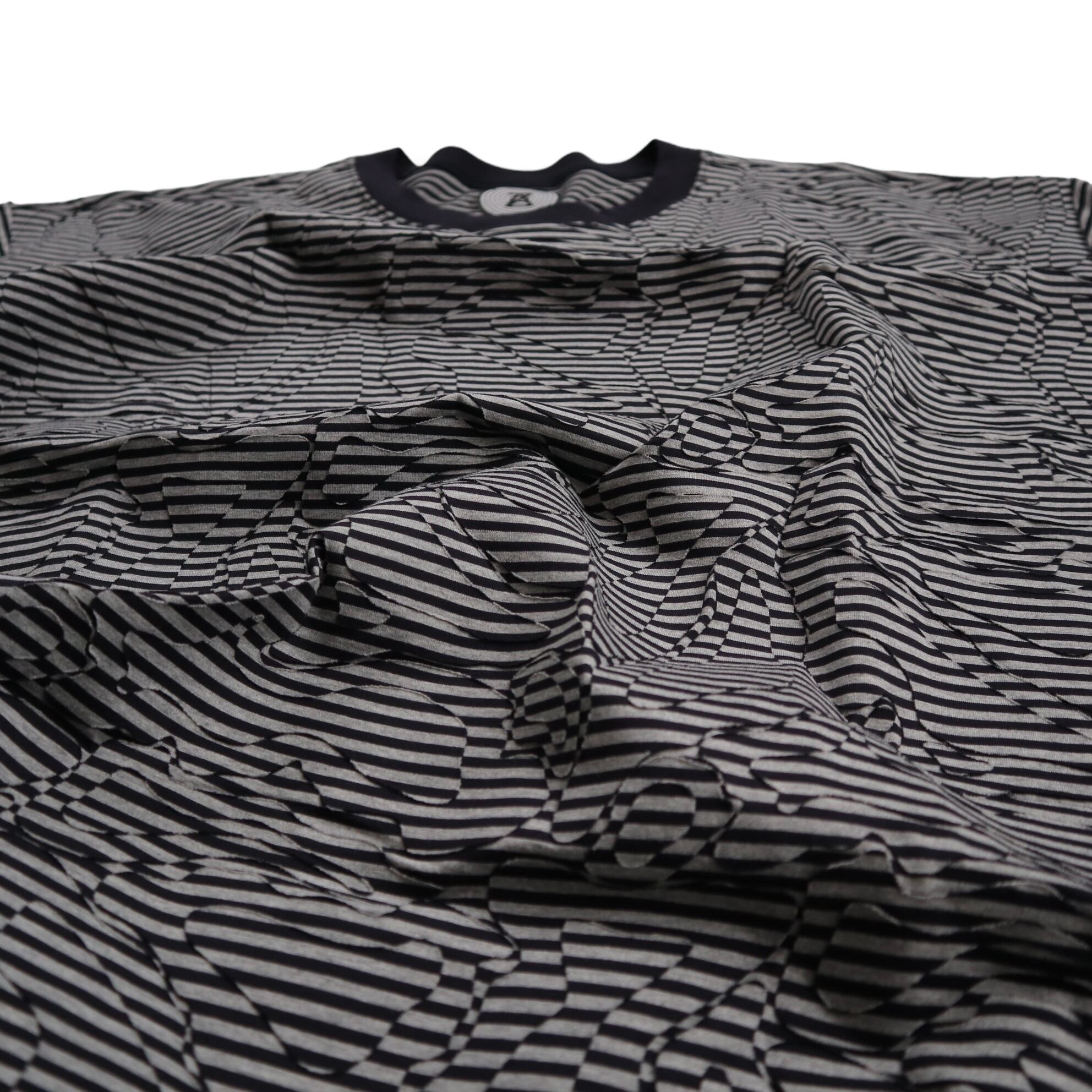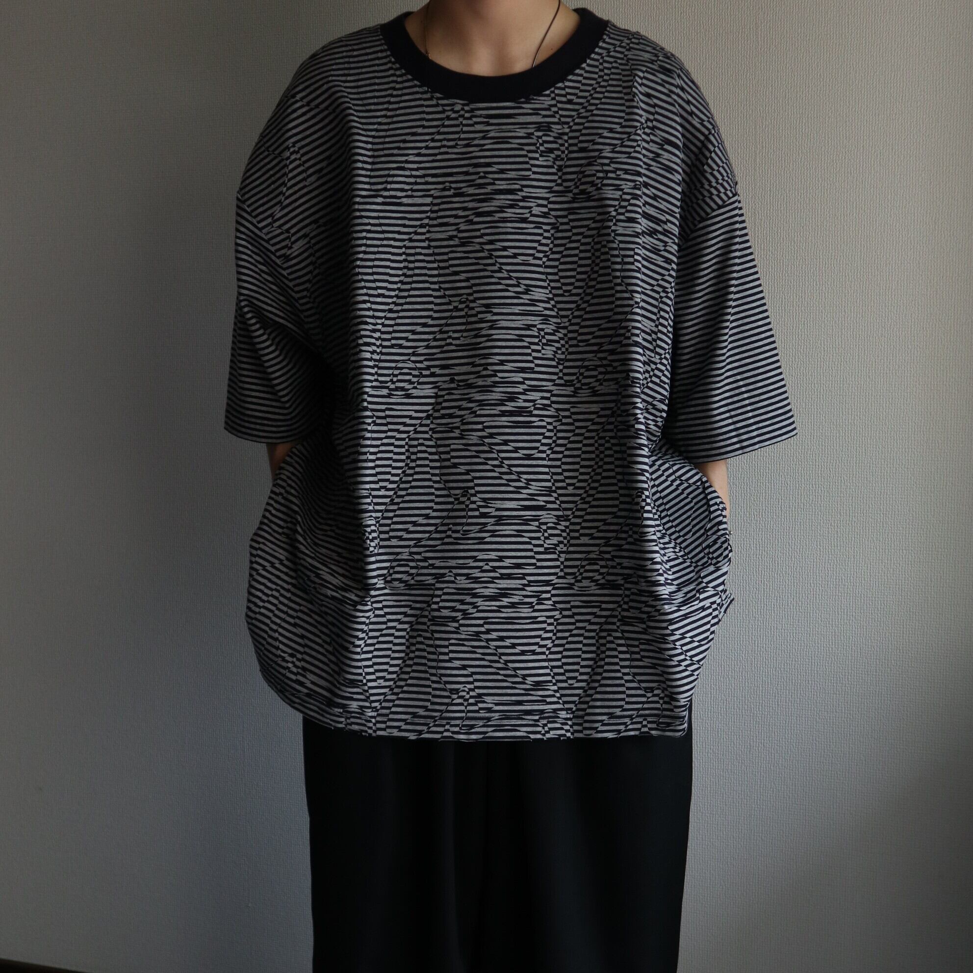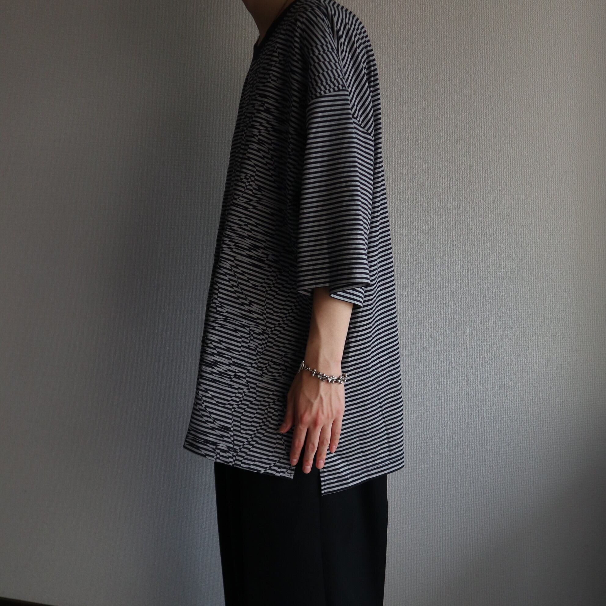 不規則で曲線的な形の同生地が、前見頃のみに接着されています