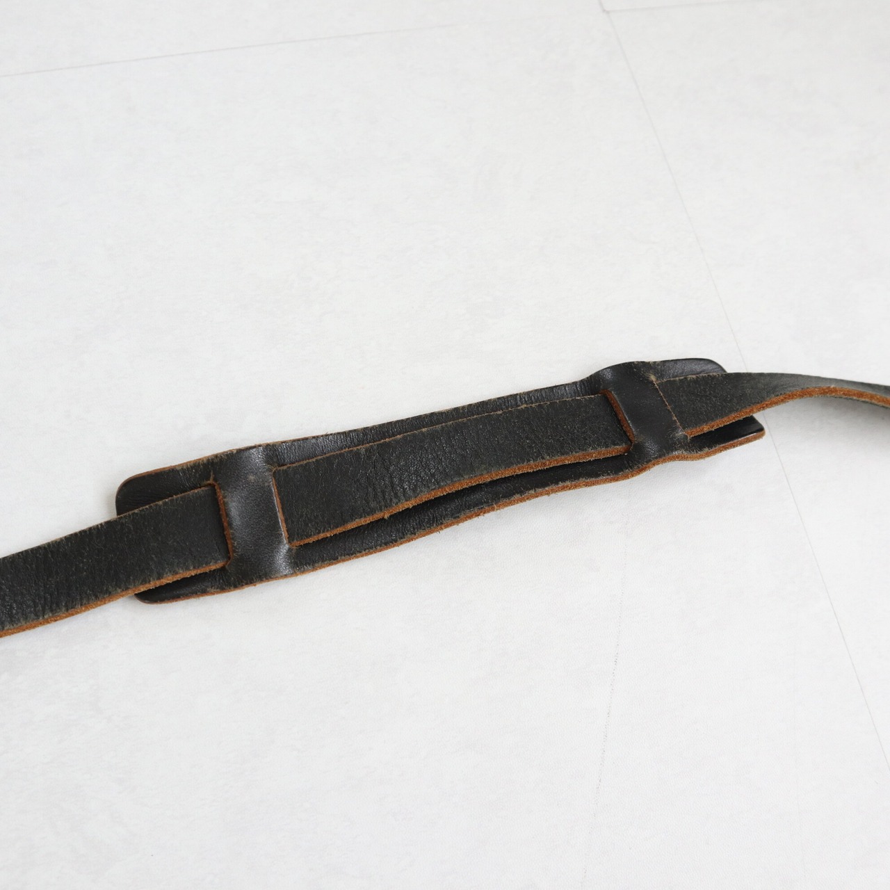 通常、スラックスのウエストを締める際に用いられるような、テーラーのクラシックベルトを、鞄のベルトに用いる違和