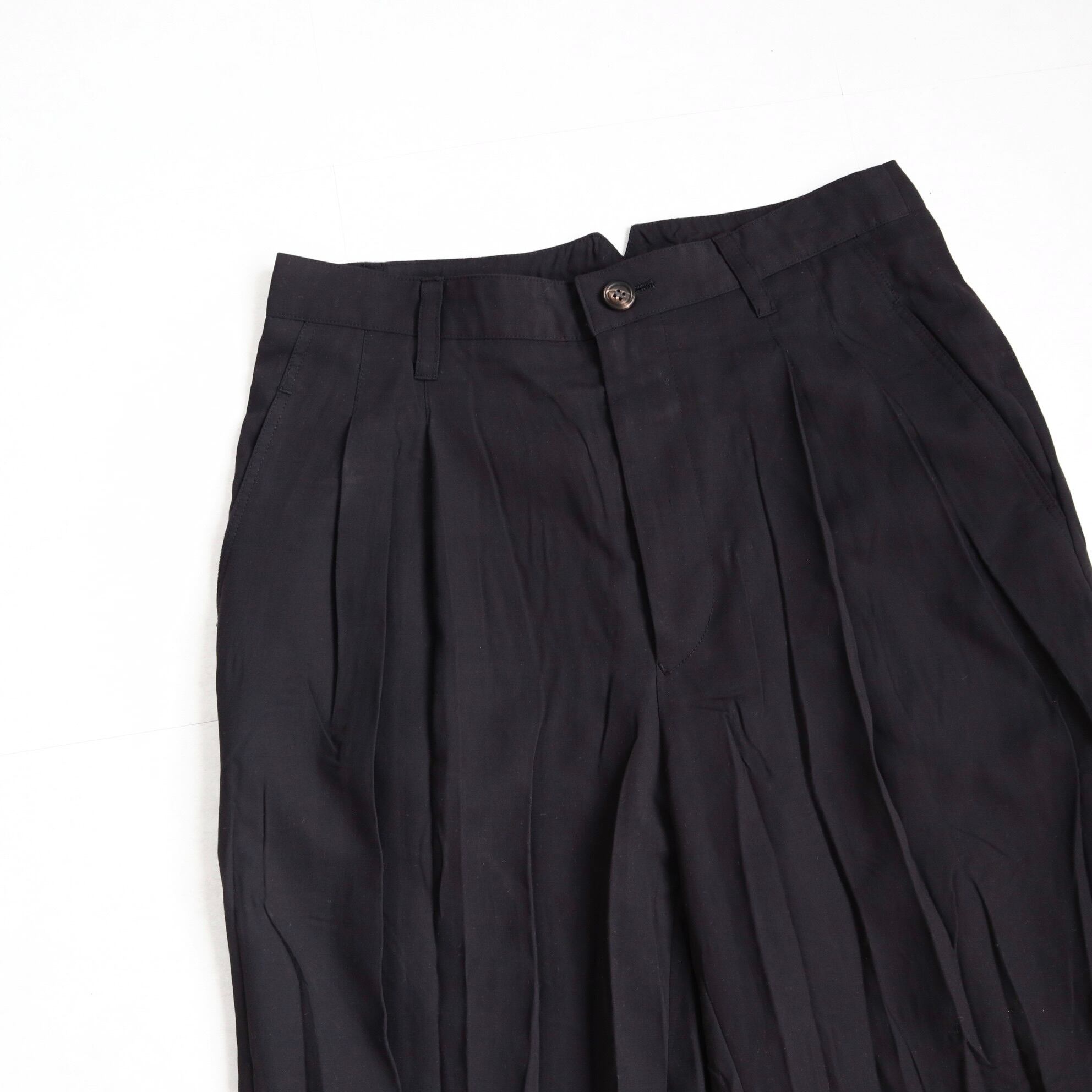 ウール100%だと、スラックスを全て仕立てた後に行う、イッセイミヤケの革新技術でもある「製品プリーツ」でのプリーツが作れないので、