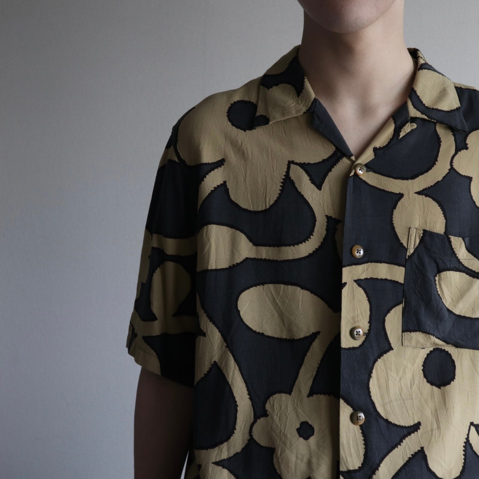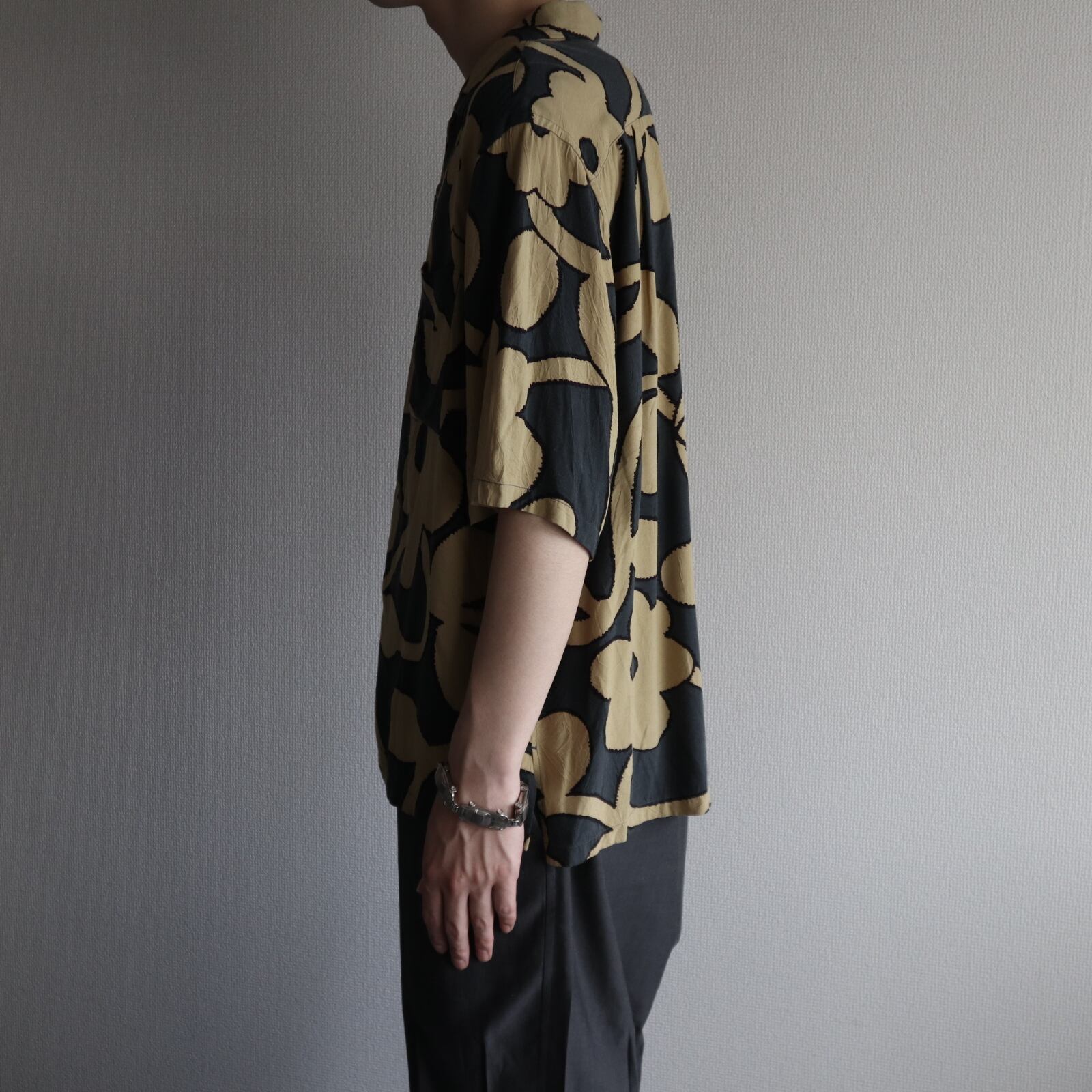 アロハシャツでは珍しい、落ち着いたトーンでアースカラーなのが◎
