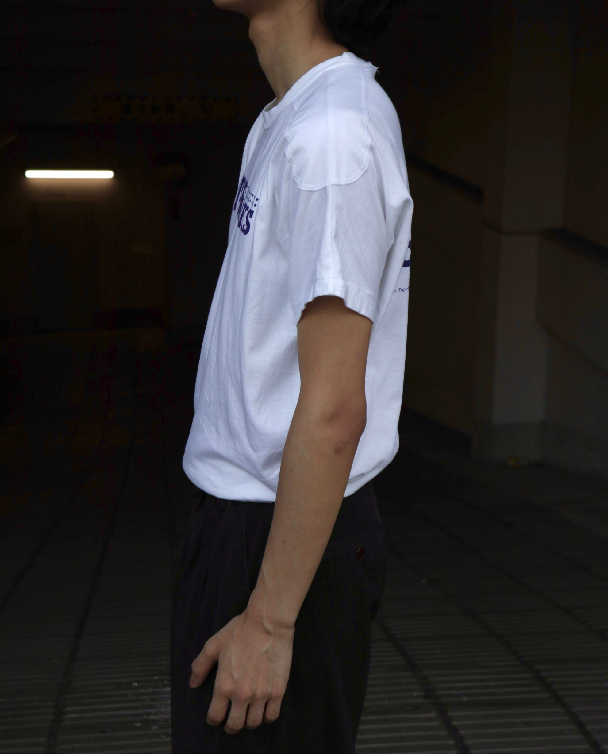 着てみると肩のラインでストンと落ち、一般的なTシャツのシルエットのように着られます