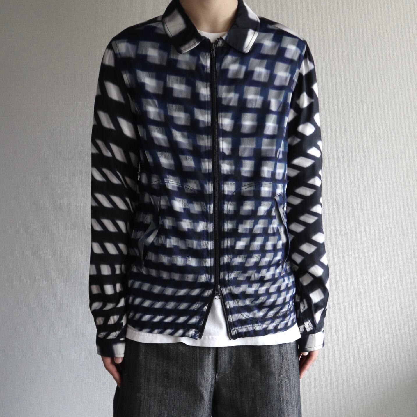 グラフィカルなプリントですが、ブラック、ホワイト、ブルーと使いやすい色味で構成されていて、形はクラシックなスイングトップをベースとしているので、インパクトのある見た目ながらも、意外と着やすい印象です