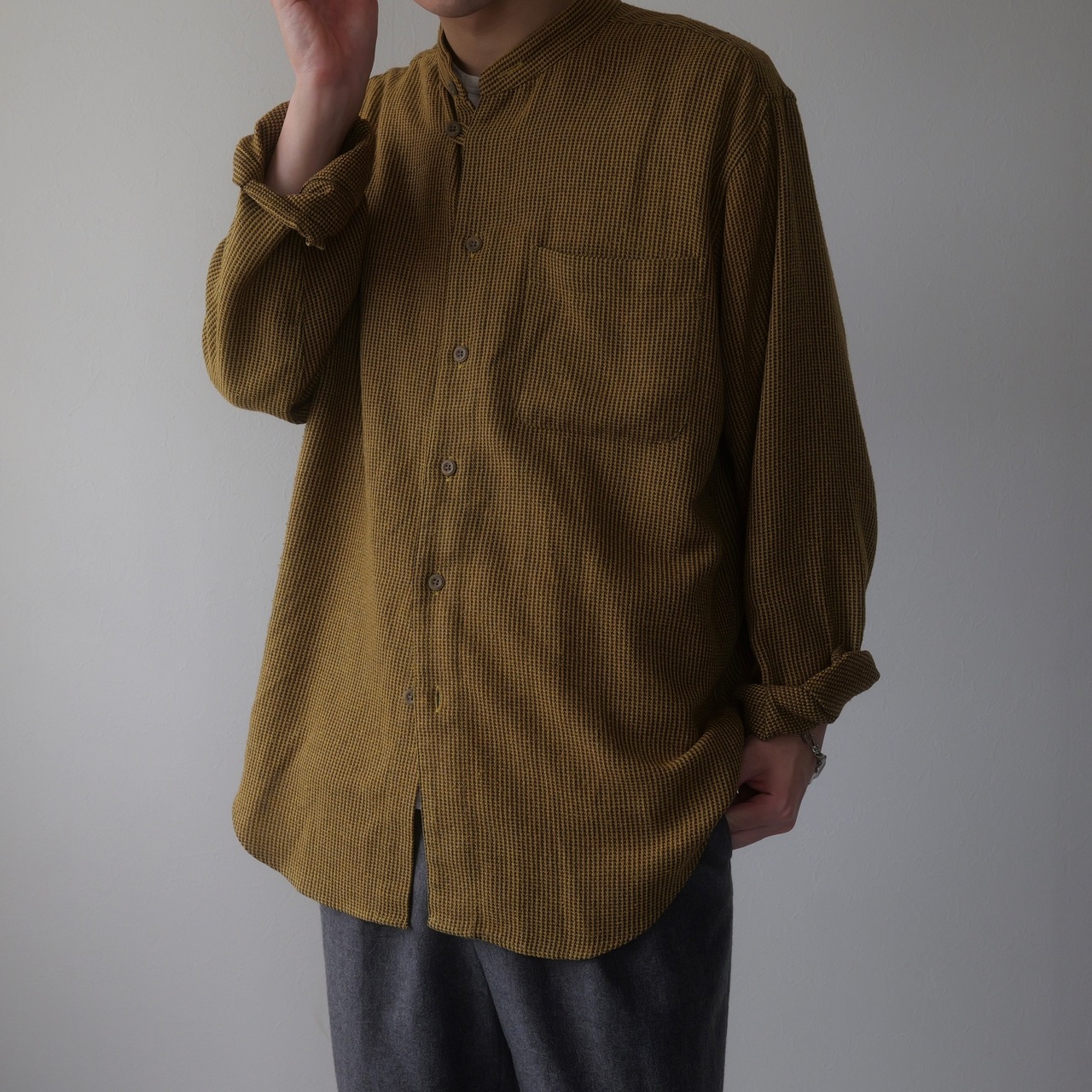 マスタードイエローと、ブラウンの軽いネルシャツのようなファブリック
