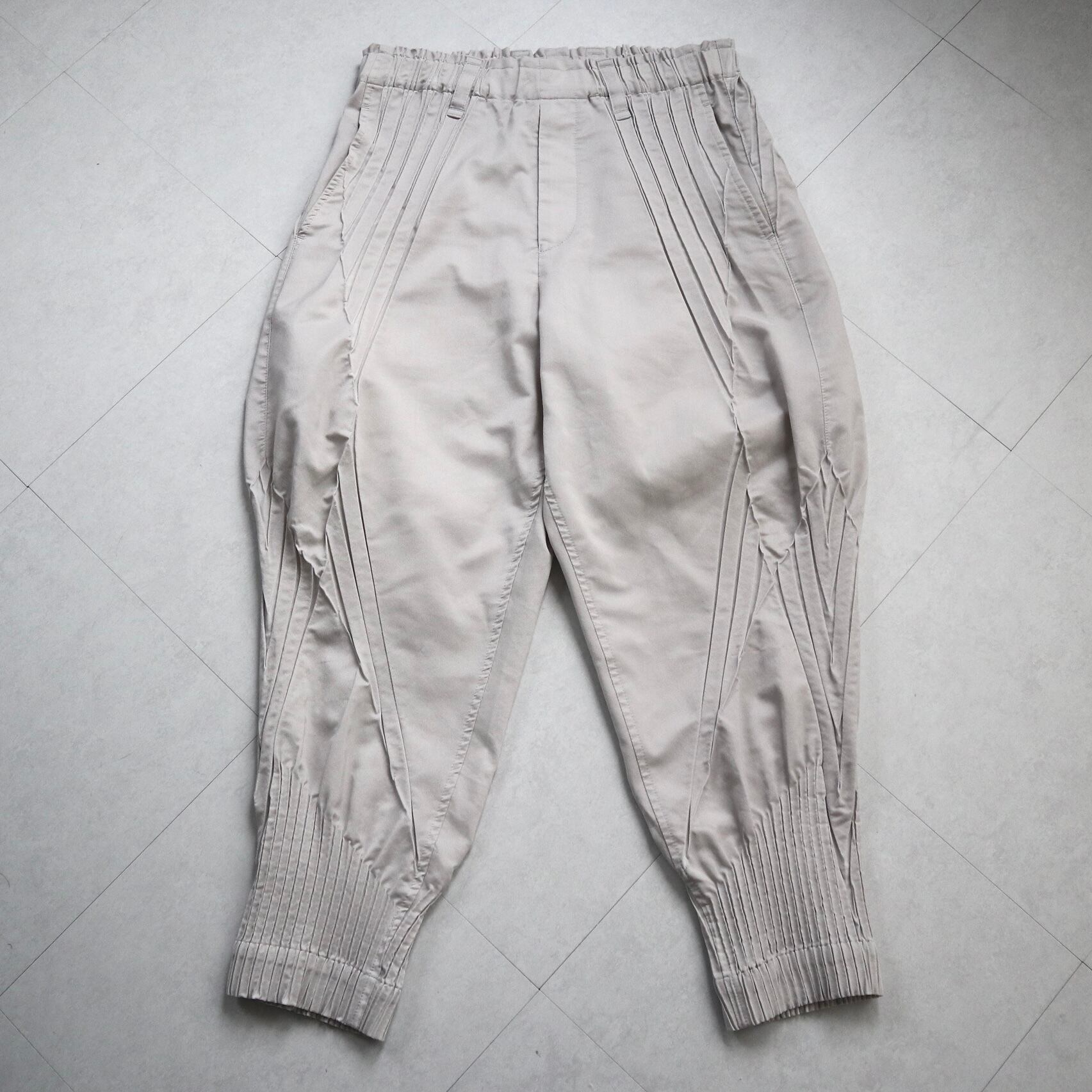 イッセイミヤケ独自技術のSteam Stretchにより、デザインされたクリースが特徴のパンツ